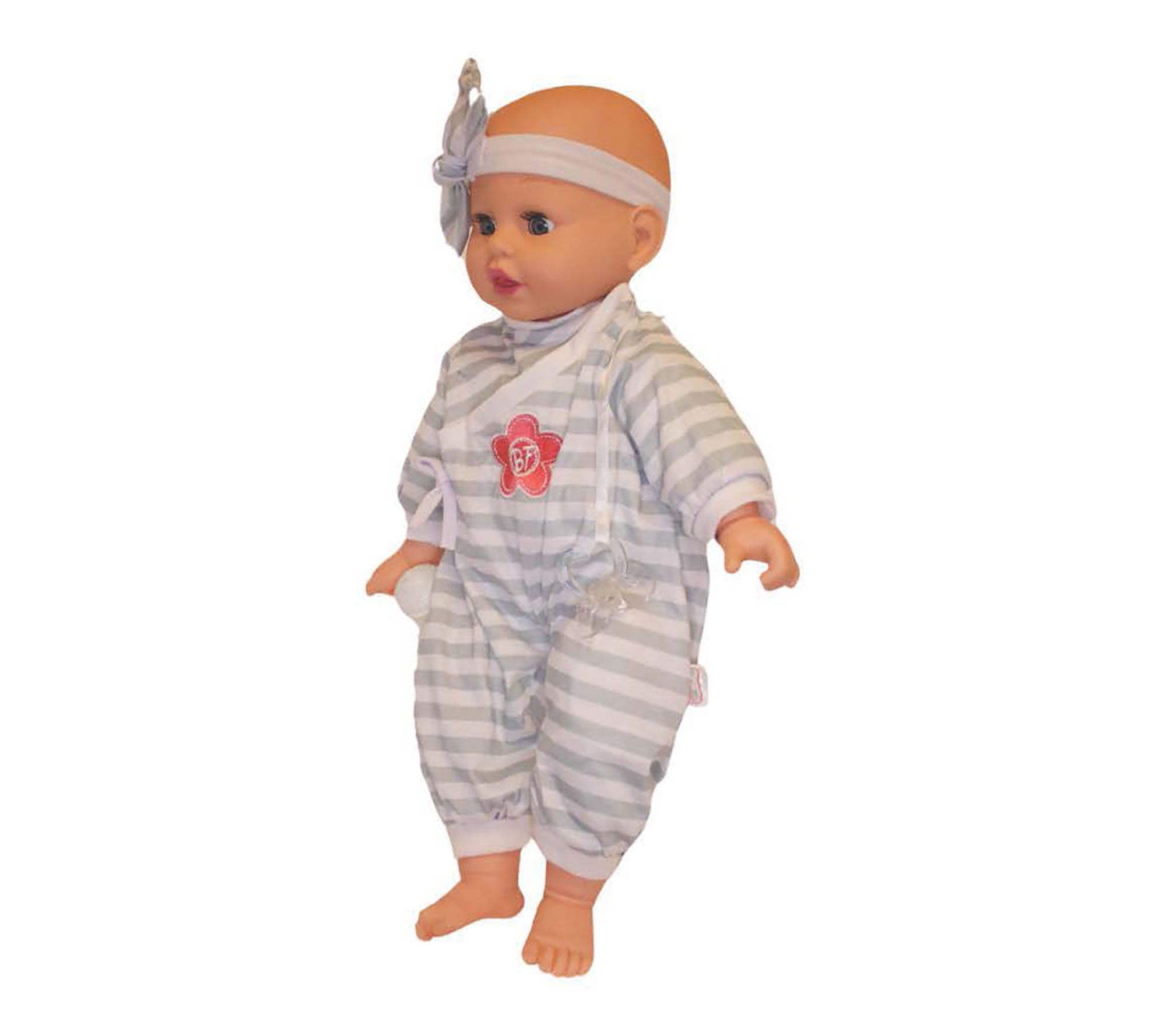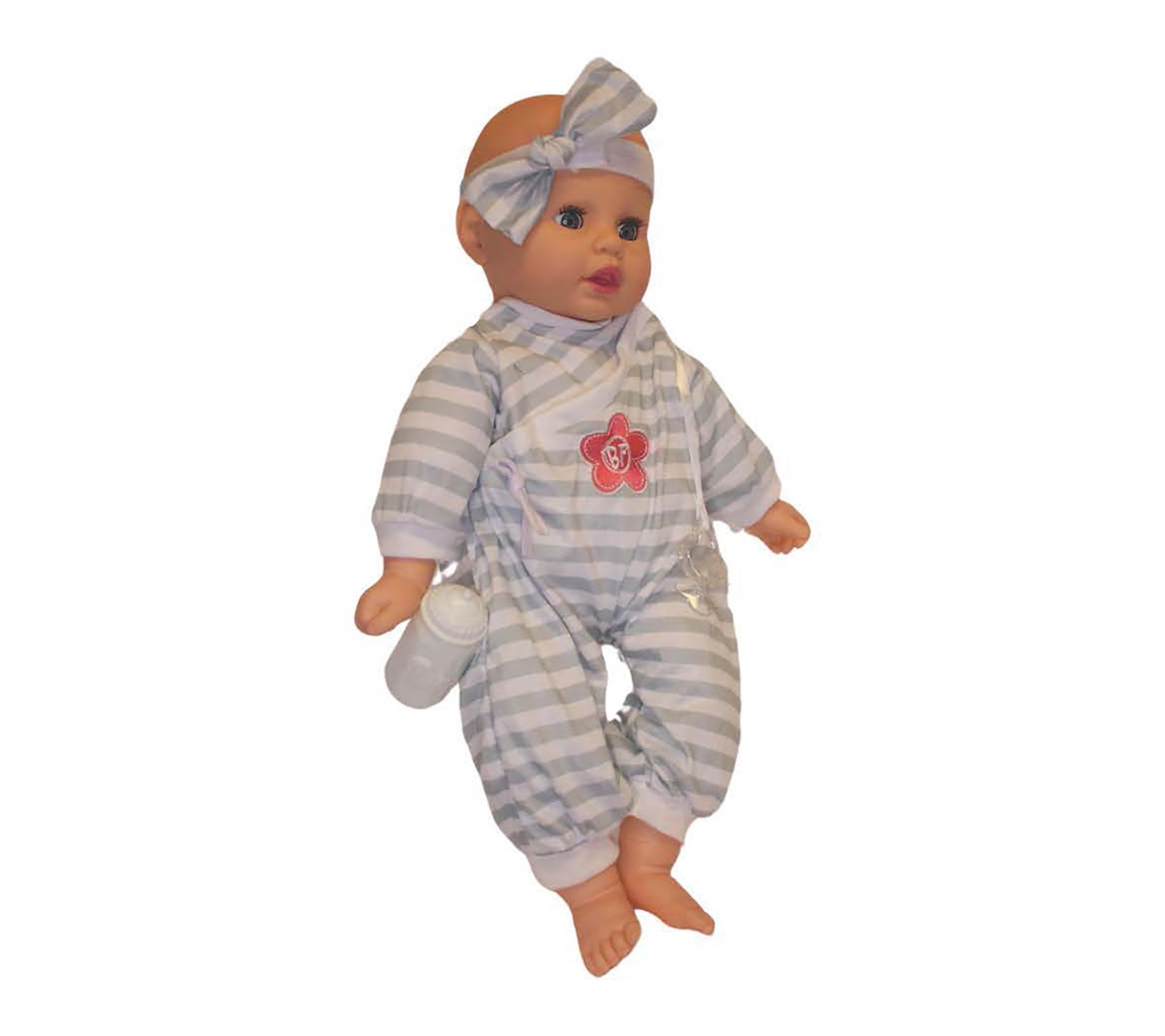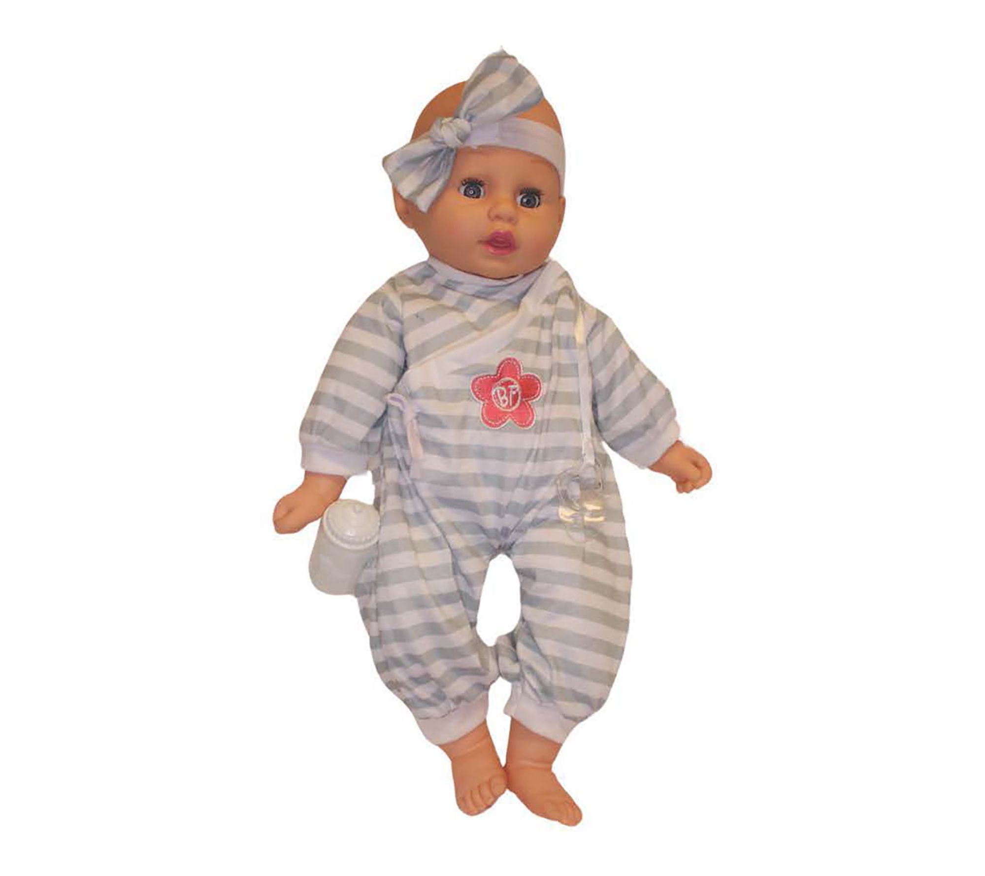 Goldberger Baby's First 19" Soft Baby Doll in Gray Striped PJs