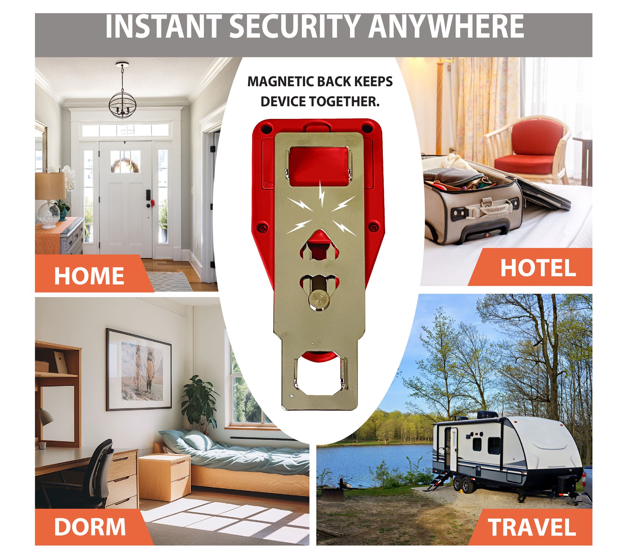 No budget for expensive security systems? Easily add an extra layer of protection wherever you go with this portable door lock set, designed with an integrated alarm system to help protect your space. Whether you're staying at a hotel, living in a dorm or vacay rental, or simply living alone, this set of portable locks provides simple setup and instant peace of mind -- no tools needed. The magnetized back keeps the device together for travel, and the alarm activates if the doorknob is disturbed. From Goldy Lock.