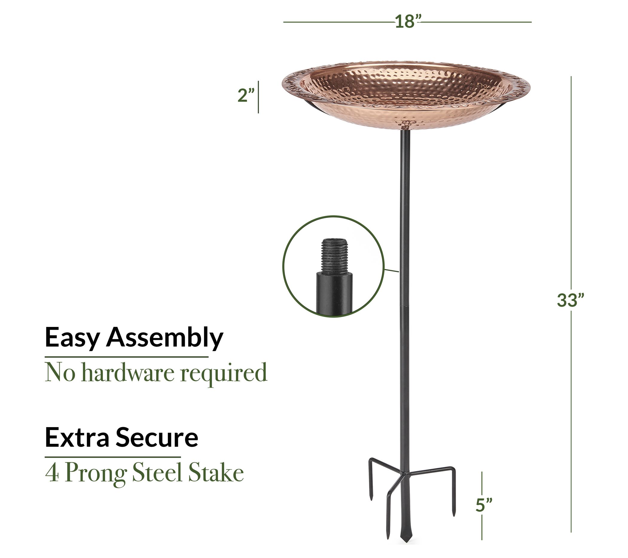 Good Directions 18" Pure Copper Bird Bath witharden Pole