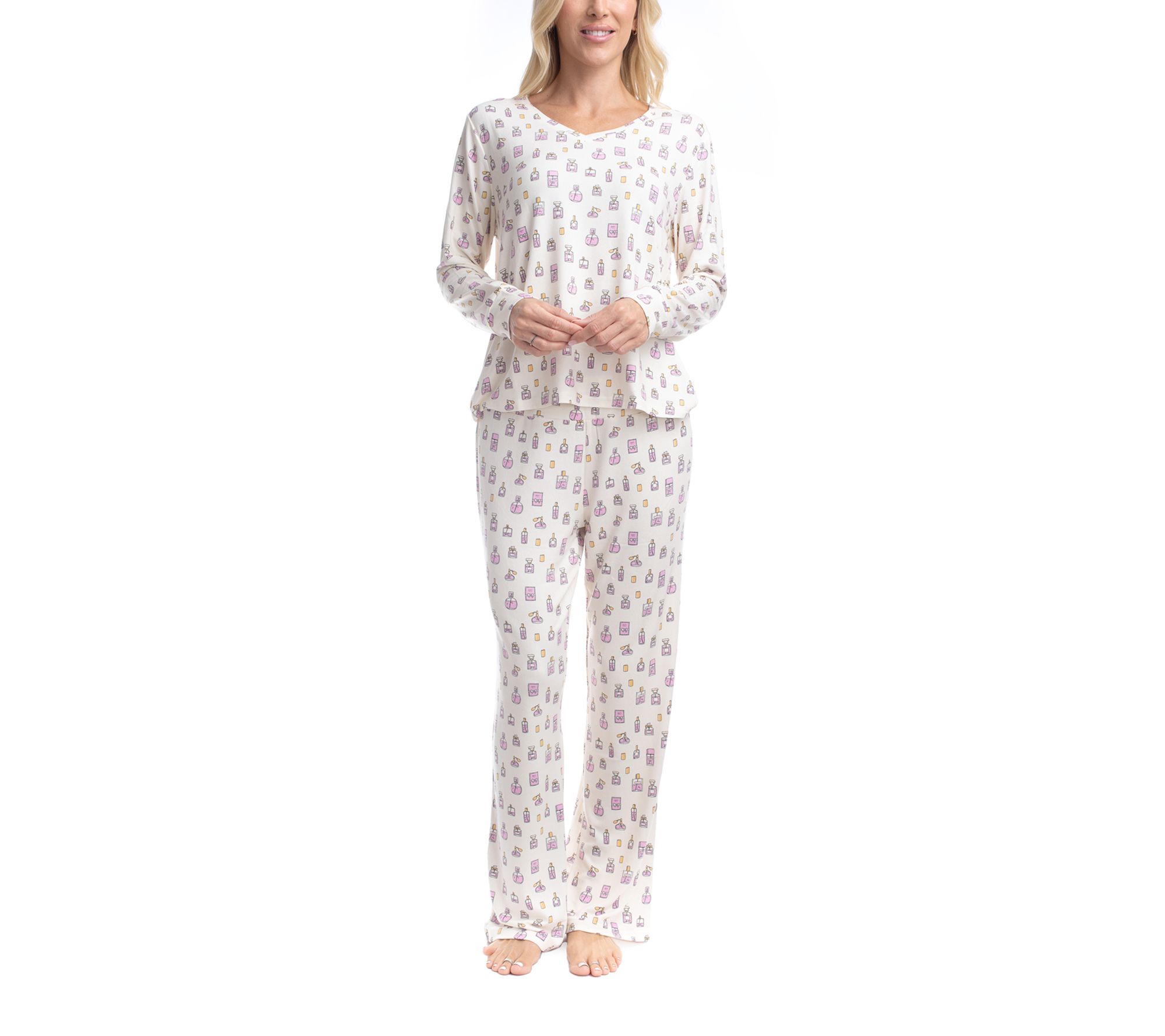 Ease into your nighttime routine with this pajama set, crafted in ultra-soft butter knit for a cozy feel from the moment you slip it on. A V-neck top pairs effortlessly with relaxed-fit pants featuring a covered elastic waistband and handy side pockets -- ideal for lounging with a book or winding down after a long day. From Goodnight Kiss.