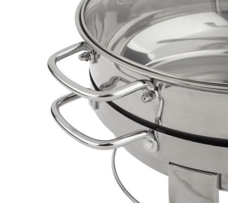 • Includes warming base, 5-qt chafing dish, and tempered glass lid