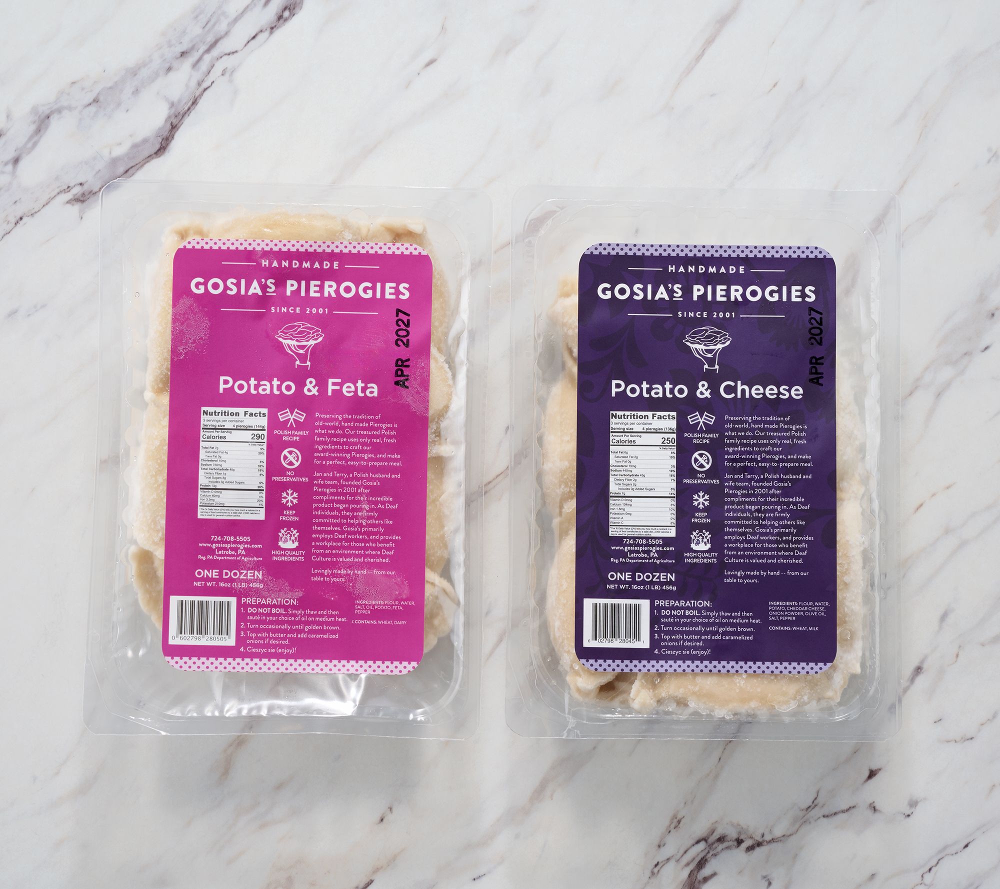 Authentically Polish and perfectly delish, these carefully crafted Gosia's Pierogies are made from a cherished family recipe passed down from generation to generation. Each bite reveals a delightful blend of fresh dough and real cheese, offering the simple joy of browning them from frozen in a skillet in butter or oil and adding your fave flavors (like sauteed onions!). Perfect for a cozy dinner or a tantalizing app, these pierogies bring authentic flavors to your table. From Gosia's Pierogies.