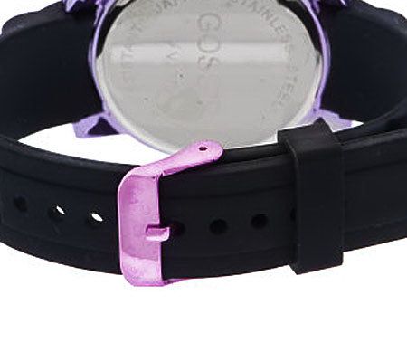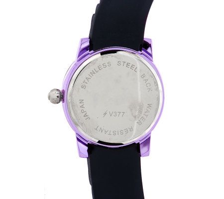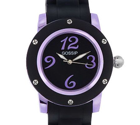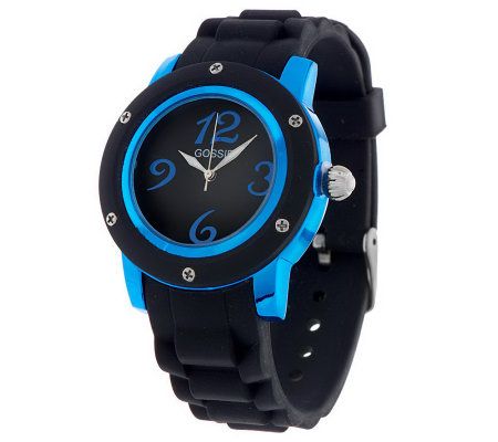 Look fabulous in no time. Bold, fashionable, and perfect with everyday attire, this watch sports a metallic case with color-coordinating number markers. A black bezel and silicone strap provide the perfect amount of contrast. From Gossip(R) Fashion Watches.