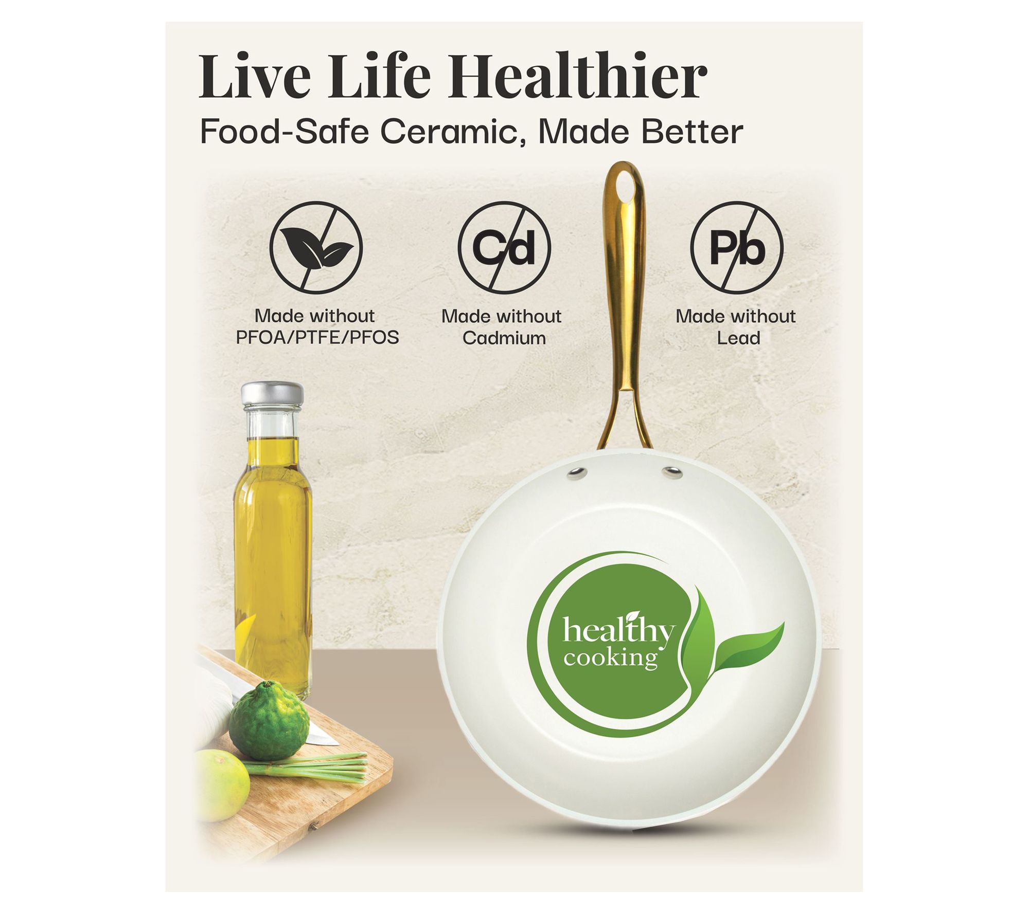 Enhance your culinary skills with the Gotham Steel Cream 10" nonstick fry pan with gold handles. The elegant design and ultra-durable Ultra-Ceramic coating ensure a nonstick surface for easy cooking and cleaning. From Gotham Steel.
