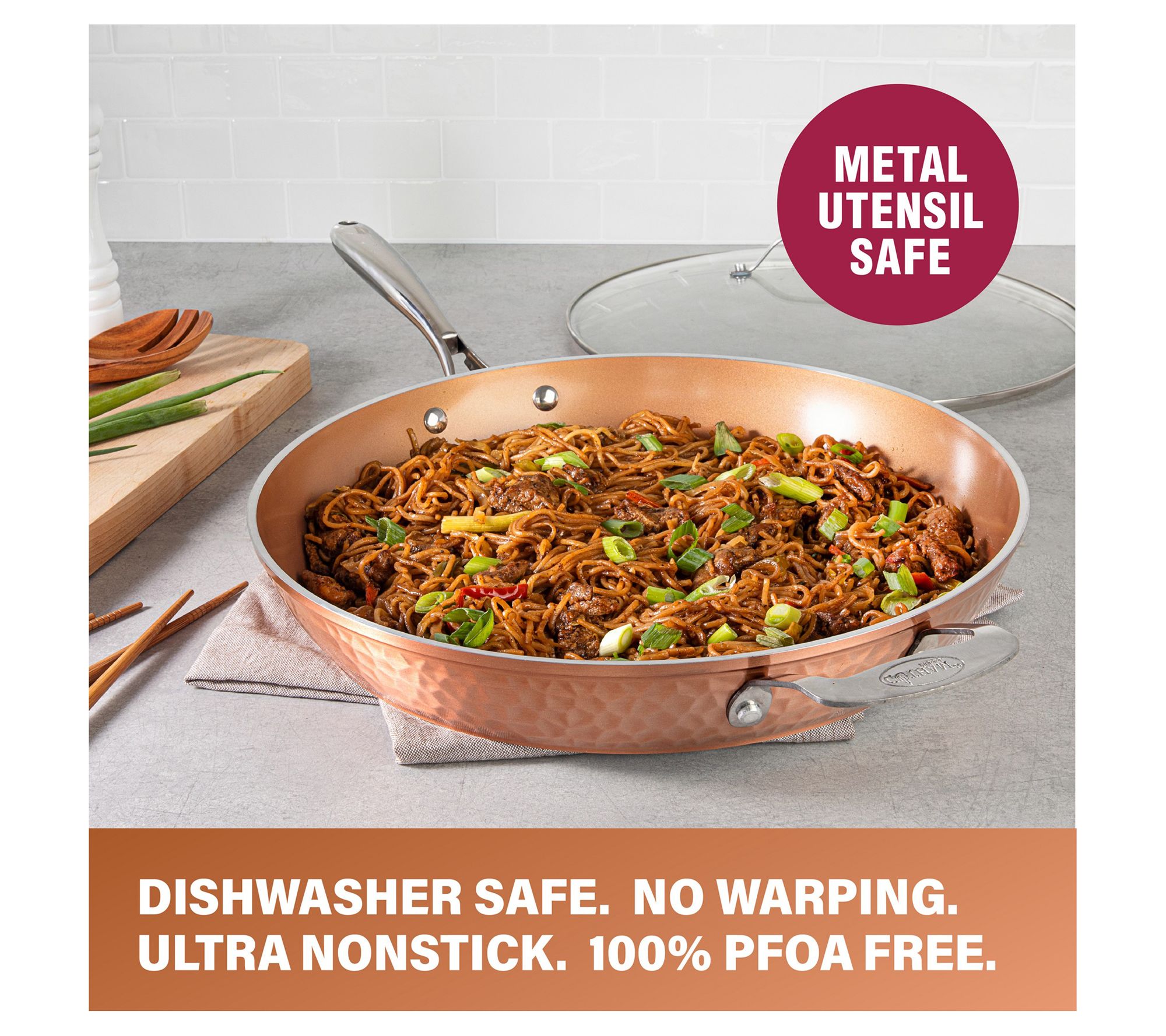 Gotham Steel Hammered 14" Nonstick Family Fry Pan with Lid