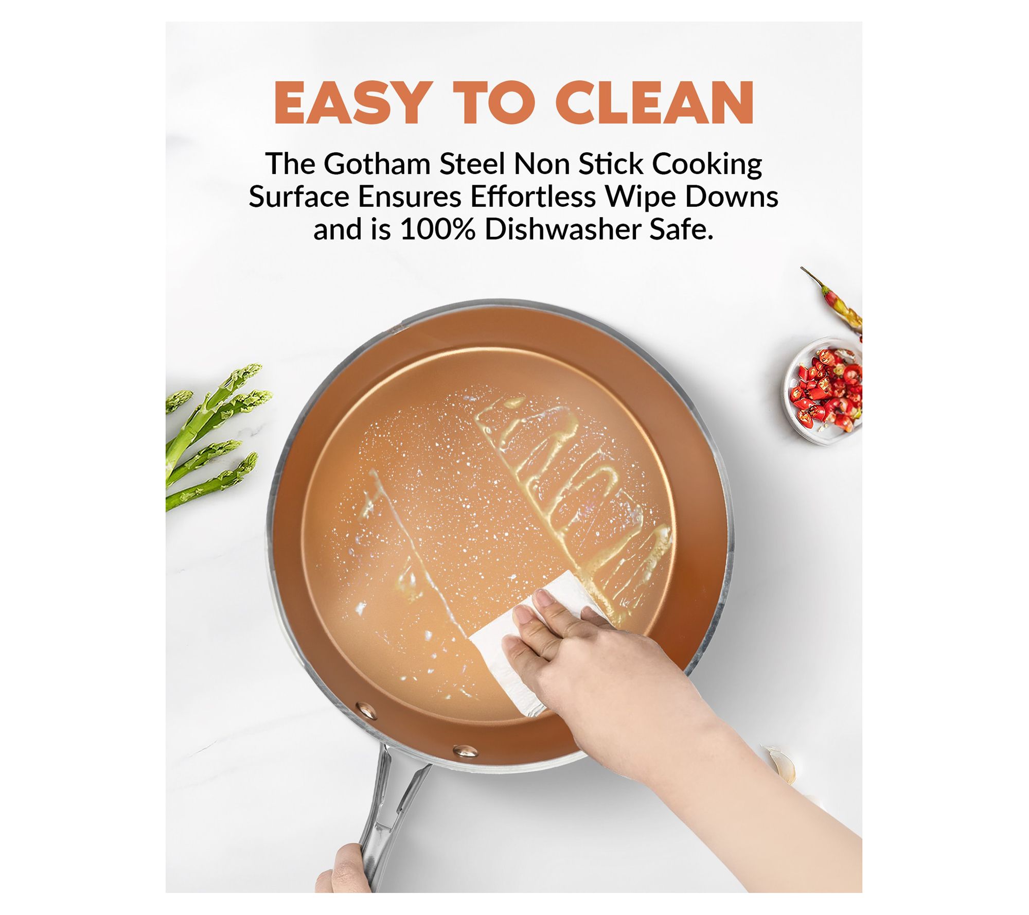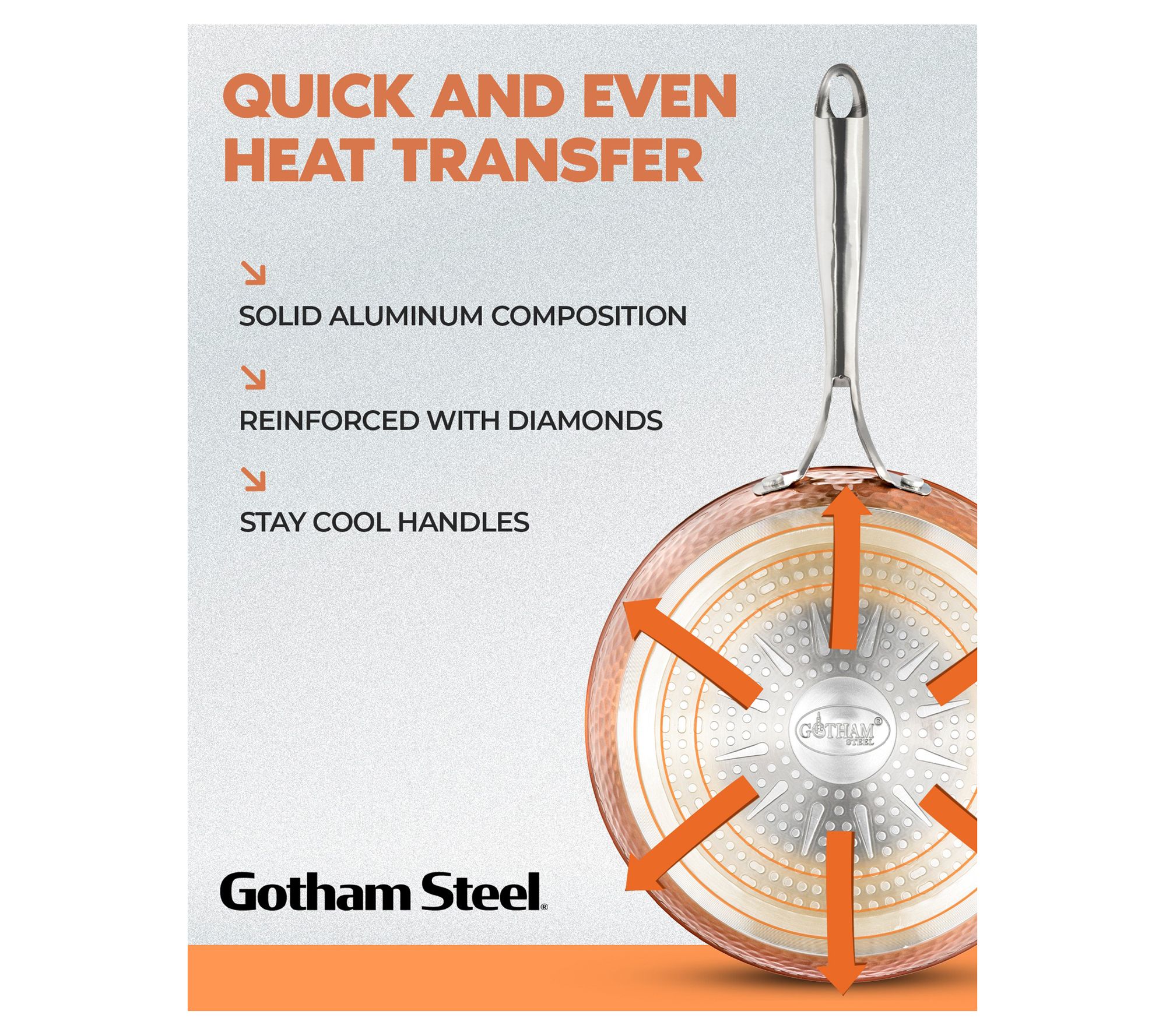 Cooking for a crowd or just whipping up a quick meal for one, this Gotham Steel Hammered 20-Piece Nonstick Cookware and Bakeware Set have you covered. The ultra-nonstick coating means easy food release and speedy cleanup, while the elegant copper tone adds a touch of style to your kitchen. From Gotham Steel.