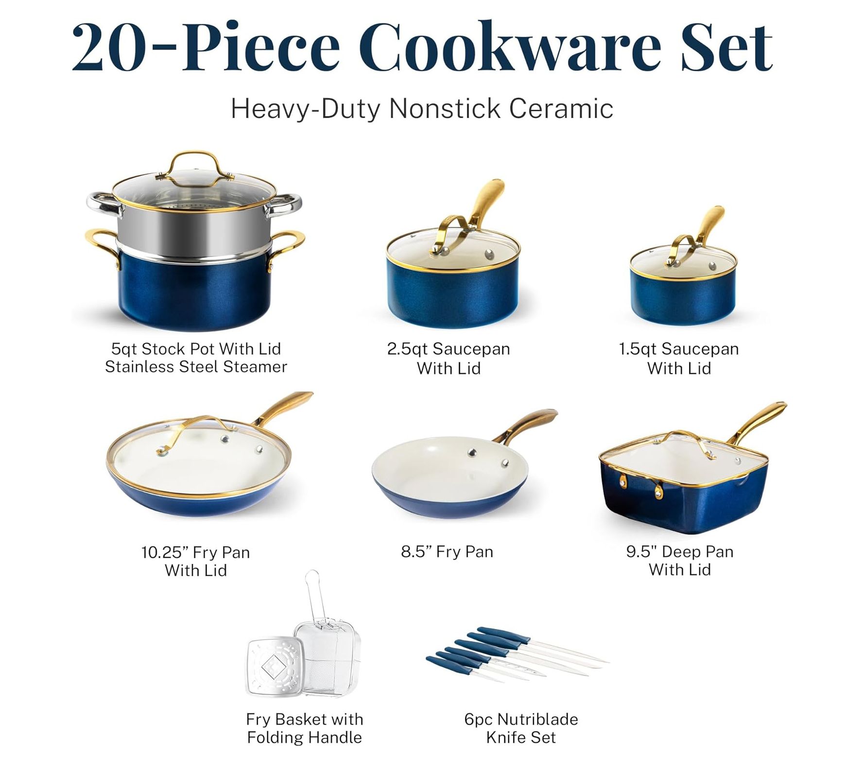 Gotham Steel Navy 20 Piece Nonstick Knife & Cooware Set
