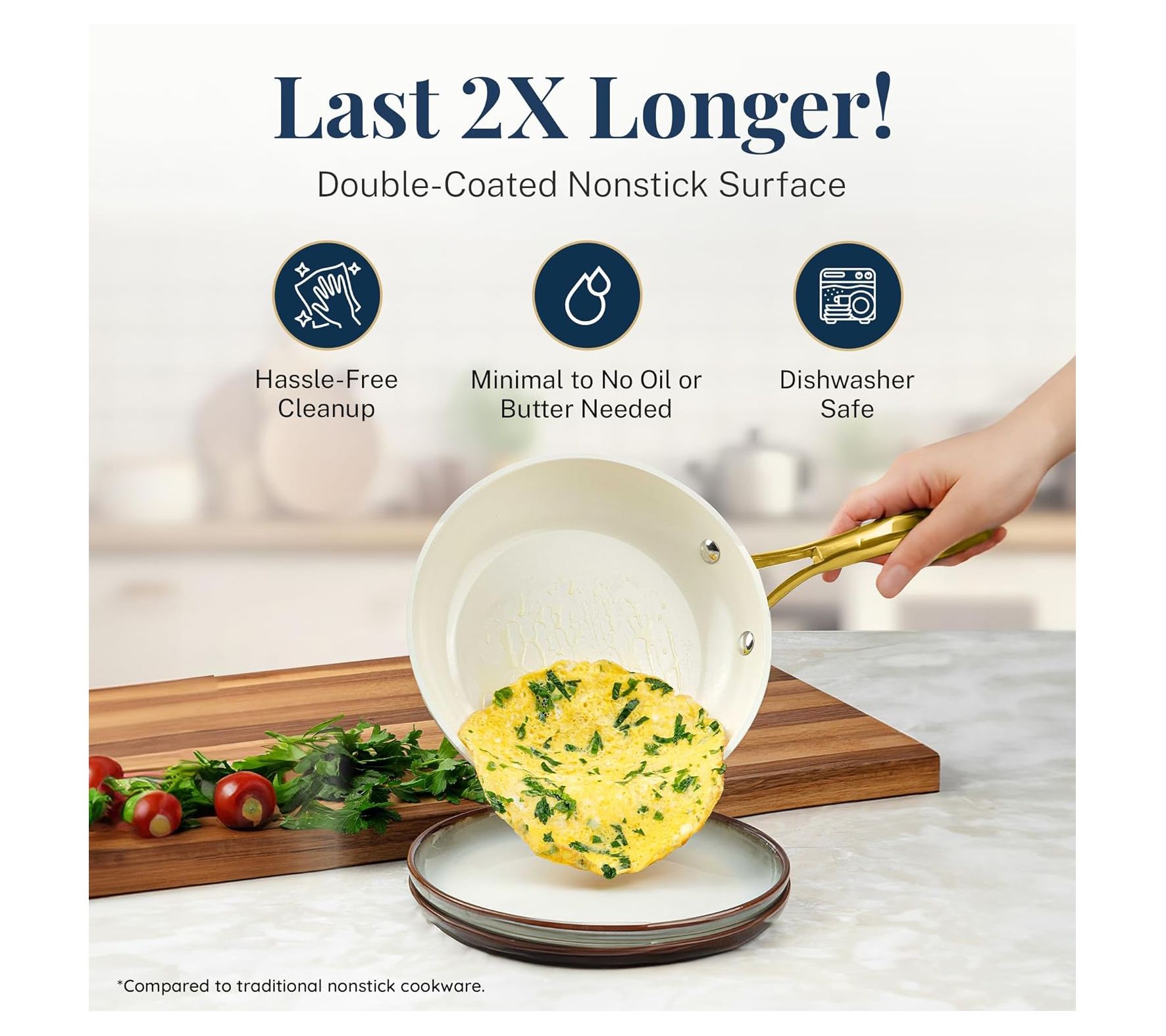 Imagine effortlessly creating delicious meals for your family with the Gotham Steel 20-Piece Ultra Nonstick Ceramic Cookware Set. With its sleek design and durable construction, this set ensures even heating and easy cleanup. Whether simmering sauces, frying veggies, or boiling pasta, each piece handles it all with ease. From Gotham Steel.