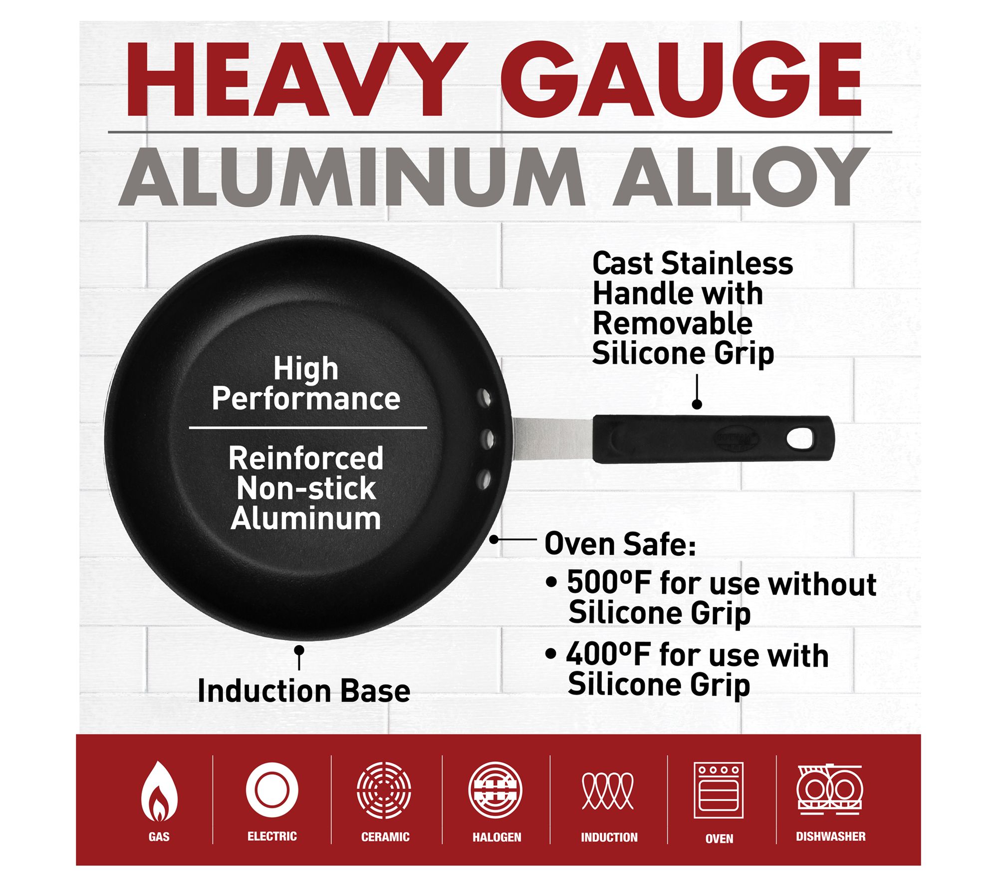 • Oven-safe up to 500F (silicone handle up to 400F)