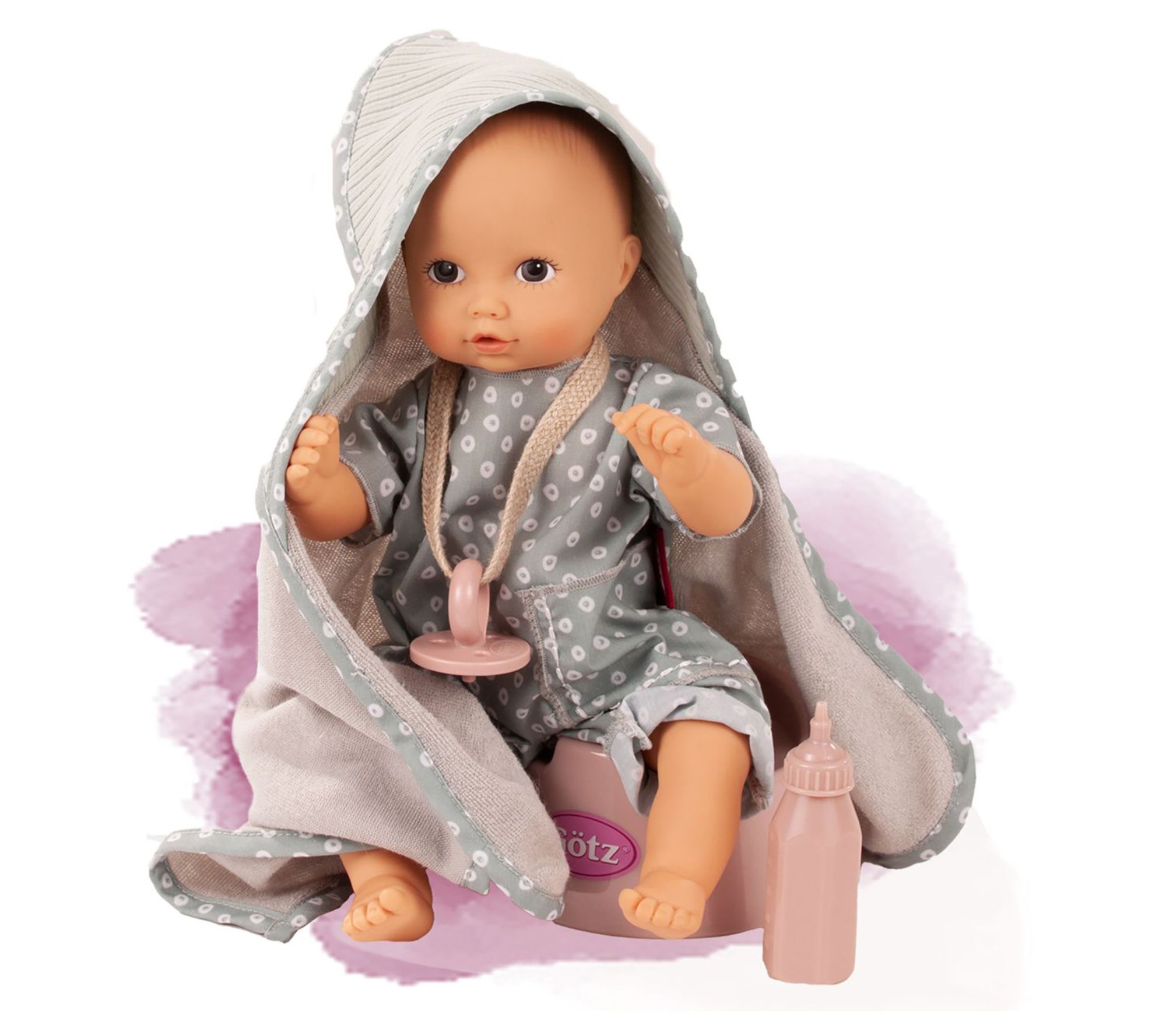A cuddly companion for your little one, the Aquini Avacado doll can drink and use the potty. Just hold the bottle into the water upside down and press it slightly. It will fill up with water and you can feed your baby. From Gotz.