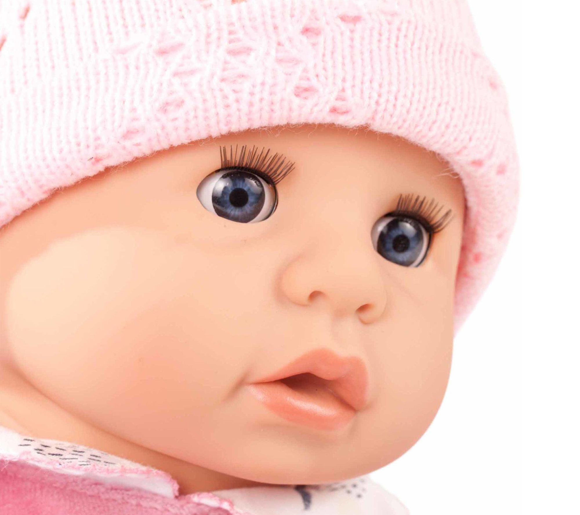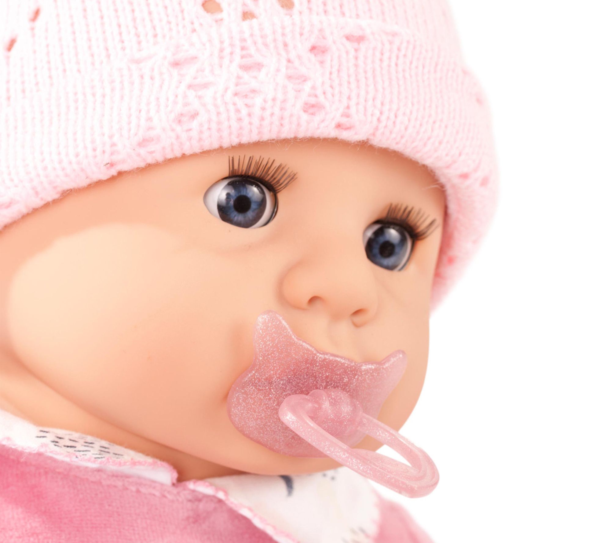 • Includes soft doll, pacifier, hat, stuffed toy, and blanket