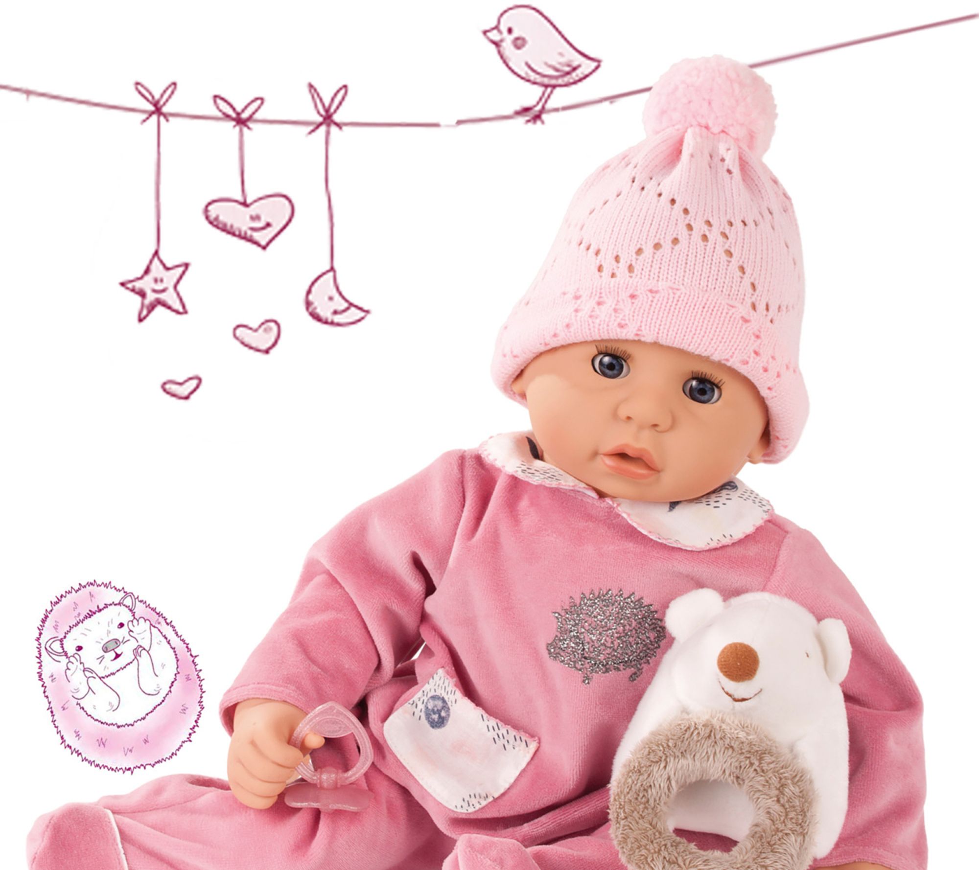 Gotz Cookie Hedgehog 19" Soft Baby Doll in Pink
