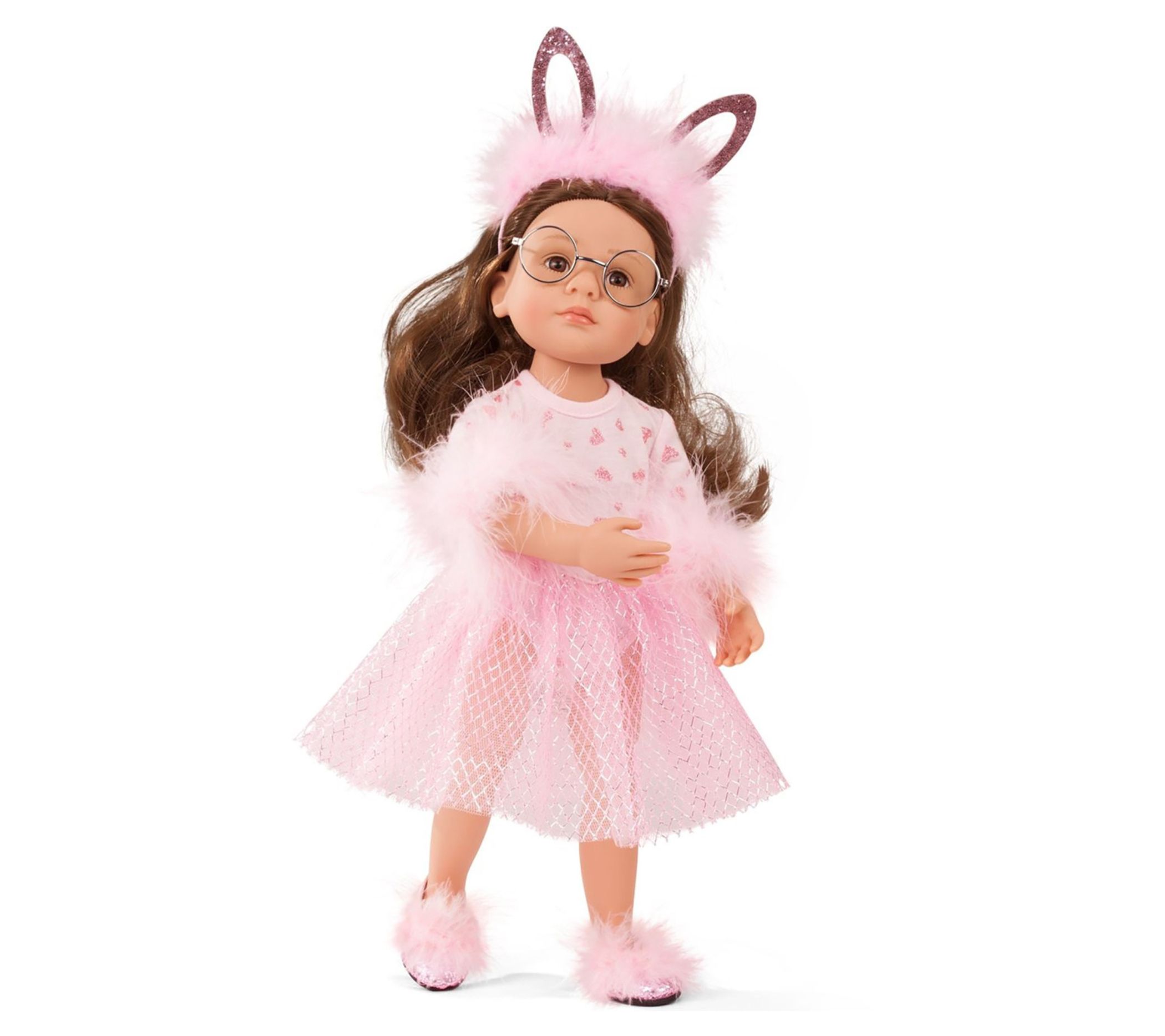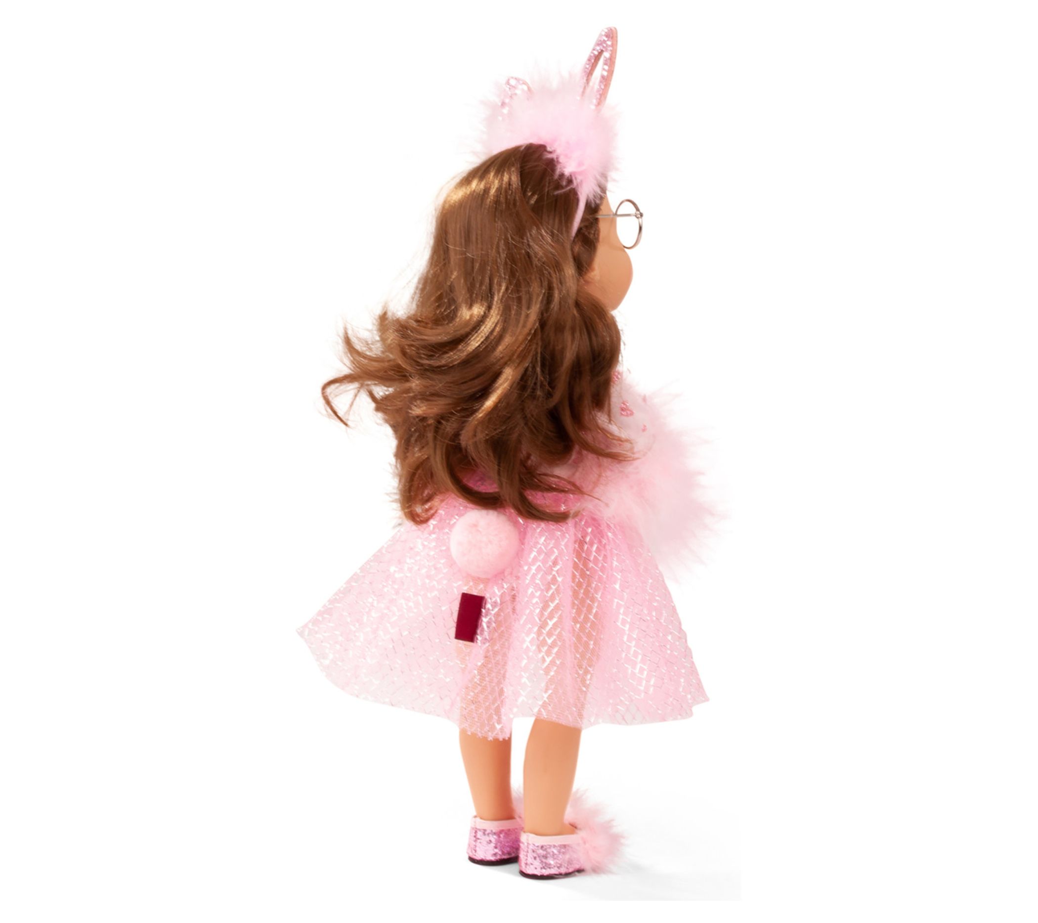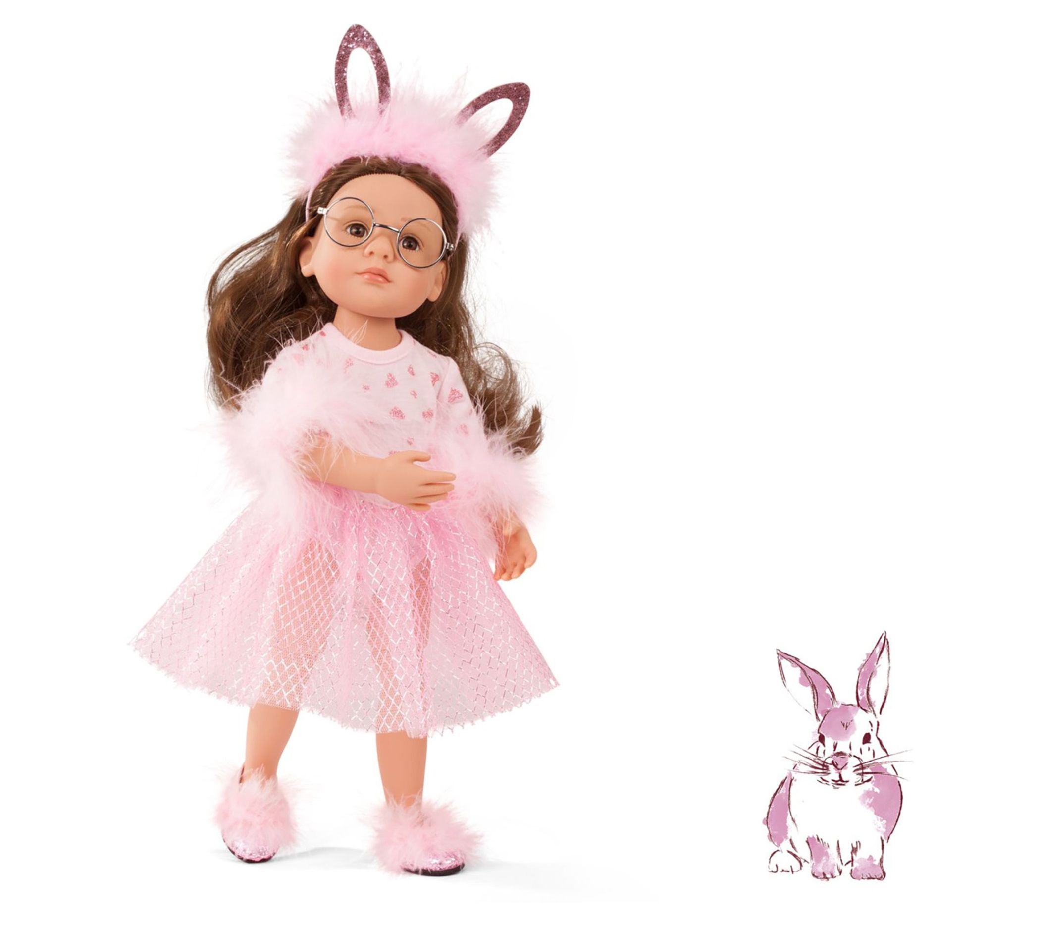 Ella Rabbit is ready to charm with her smart metal-rimmed glasses and adorable bunny outfit. With nine high-quality joints, she can easily pose for yoga, horseback riding, or any creative play scenario. Her brunette hair is durable and easy to style, making her a perfect companion for imaginative adventures. From Gotz.