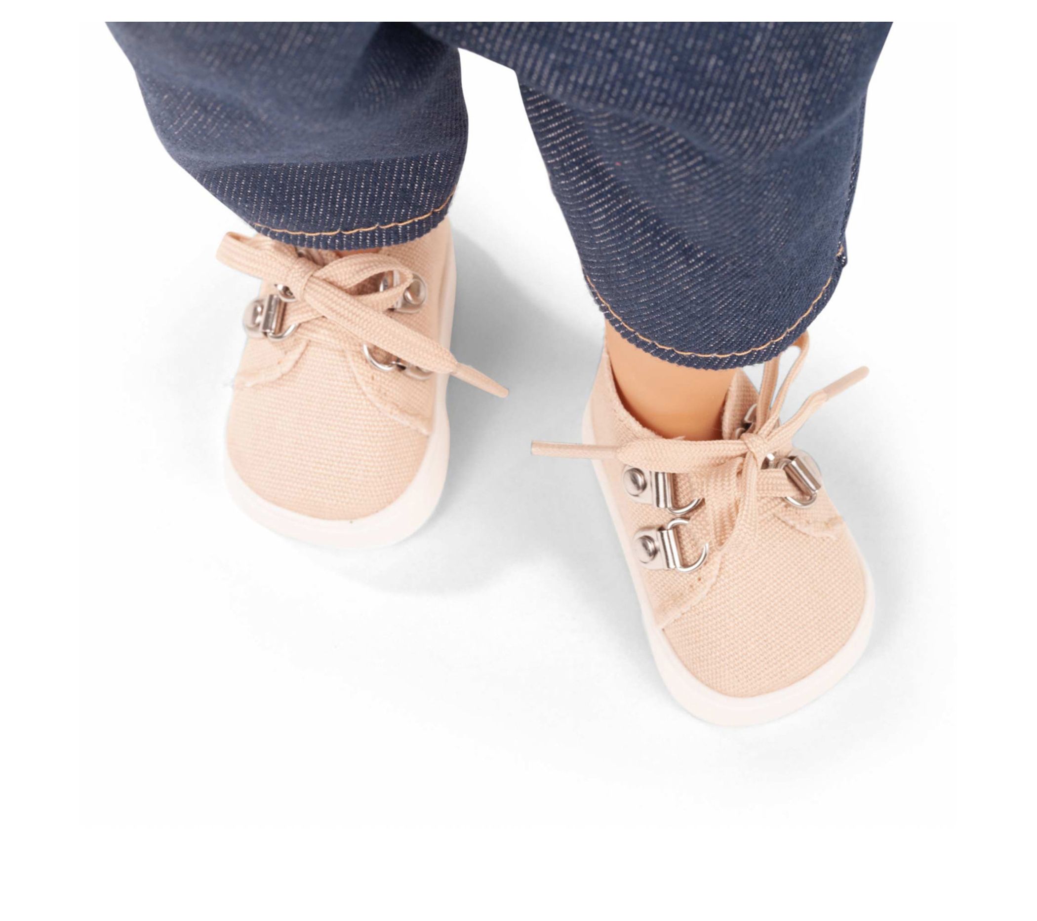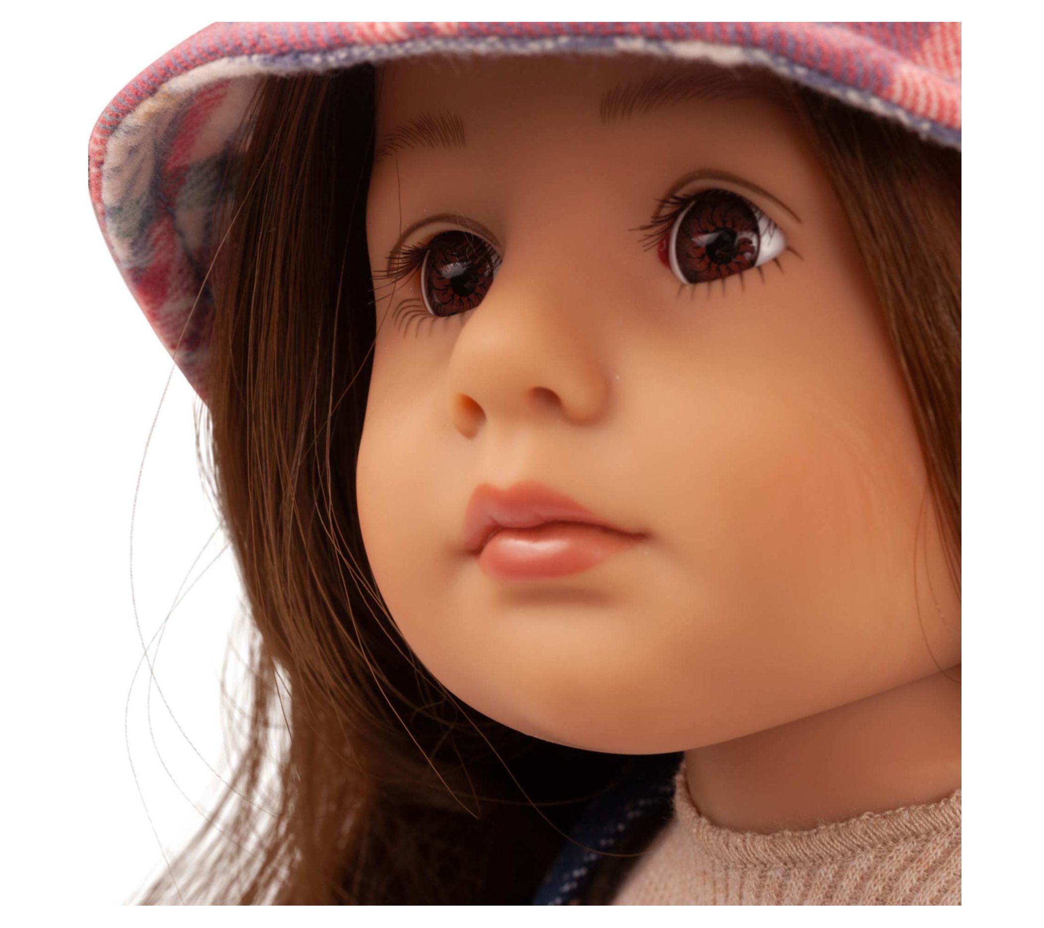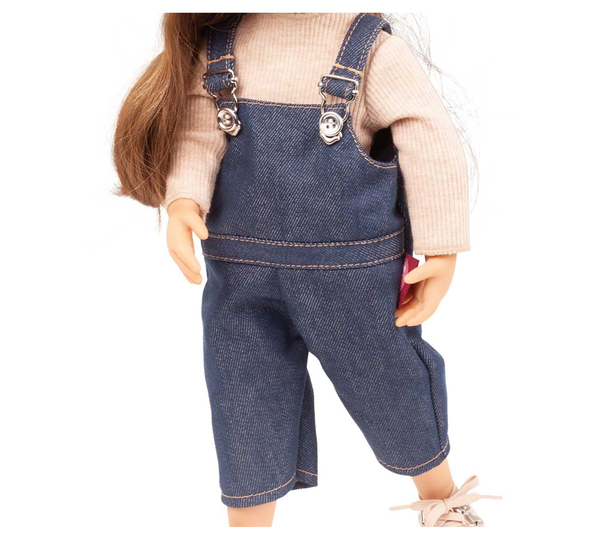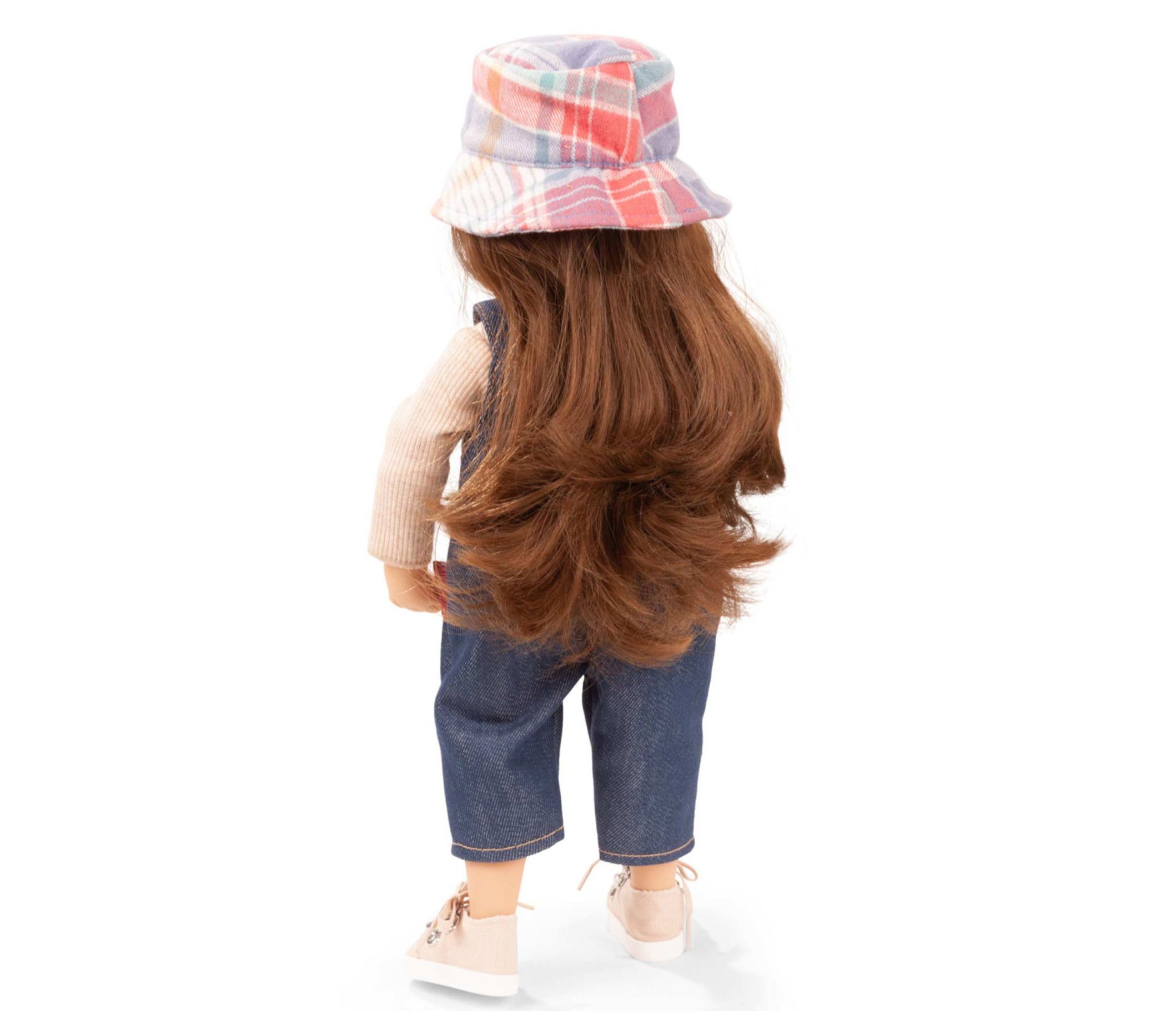 Your little one will love playing with the Gotz Little Kidz 14" standing Grete doll. With her multi-jointed body and long brown hair, Grete is perfect for imaginative play. She comes dressed in casual jeans dungarees, a ribbed long-sleeved shirt, canvas sneakers, and a checked cap. From Gotz.