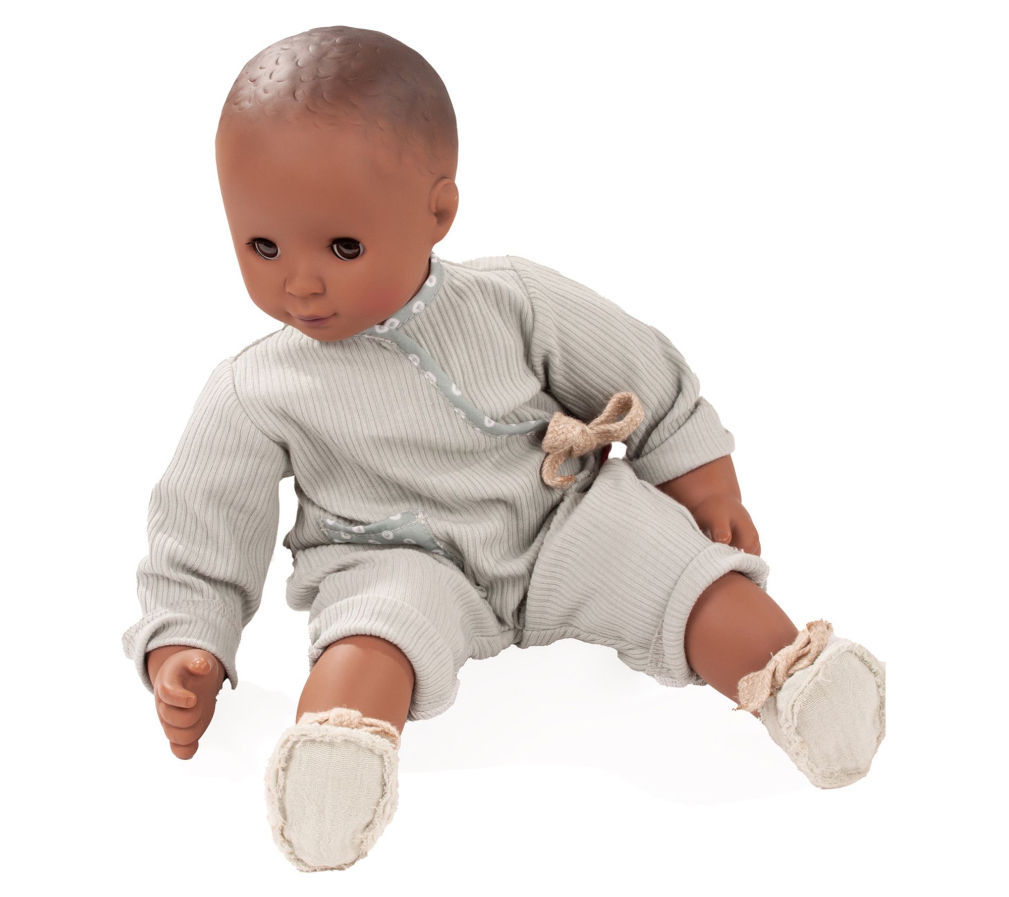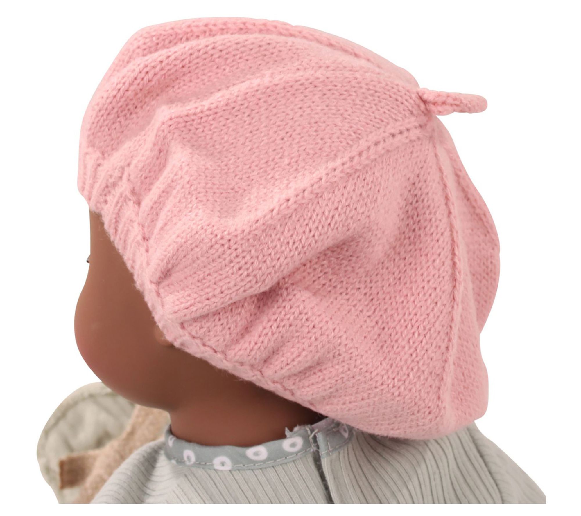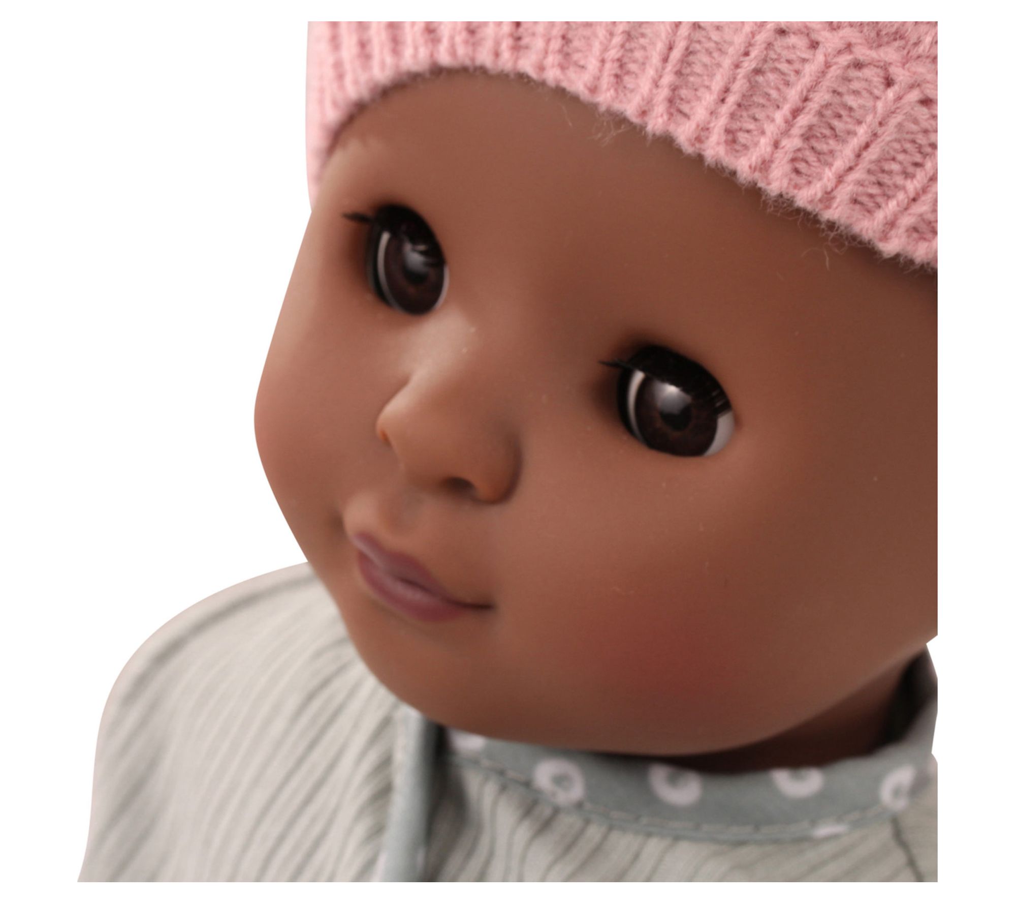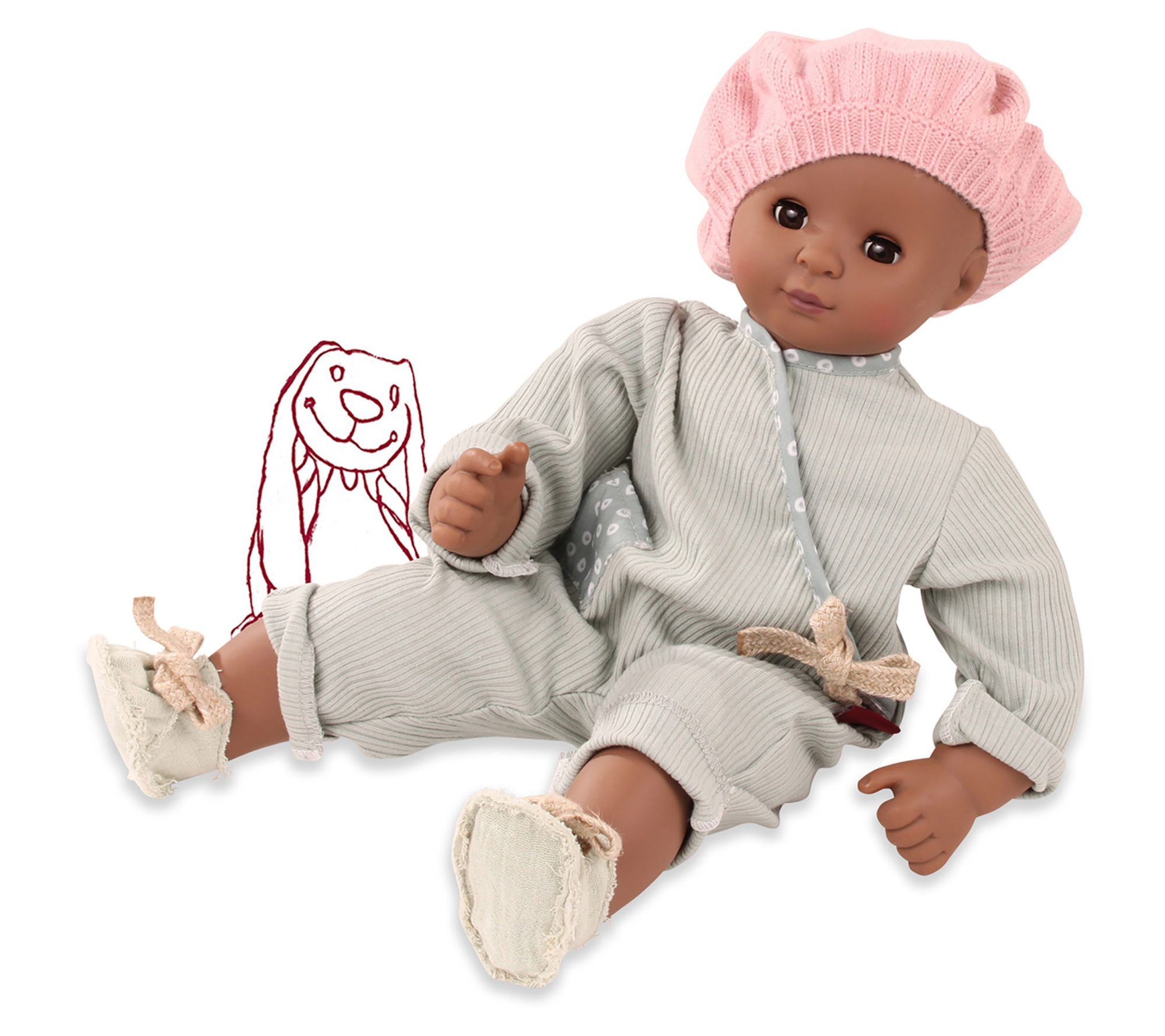 Dressed in chic overalls, fabric shoes, and a rose-colored knitted cap, Maxy Muffin is ready for a day out with your child. With her soft fabric body and vinyl limbs, she's easy to dress and undress, making playtime a breeze. From Gotz.