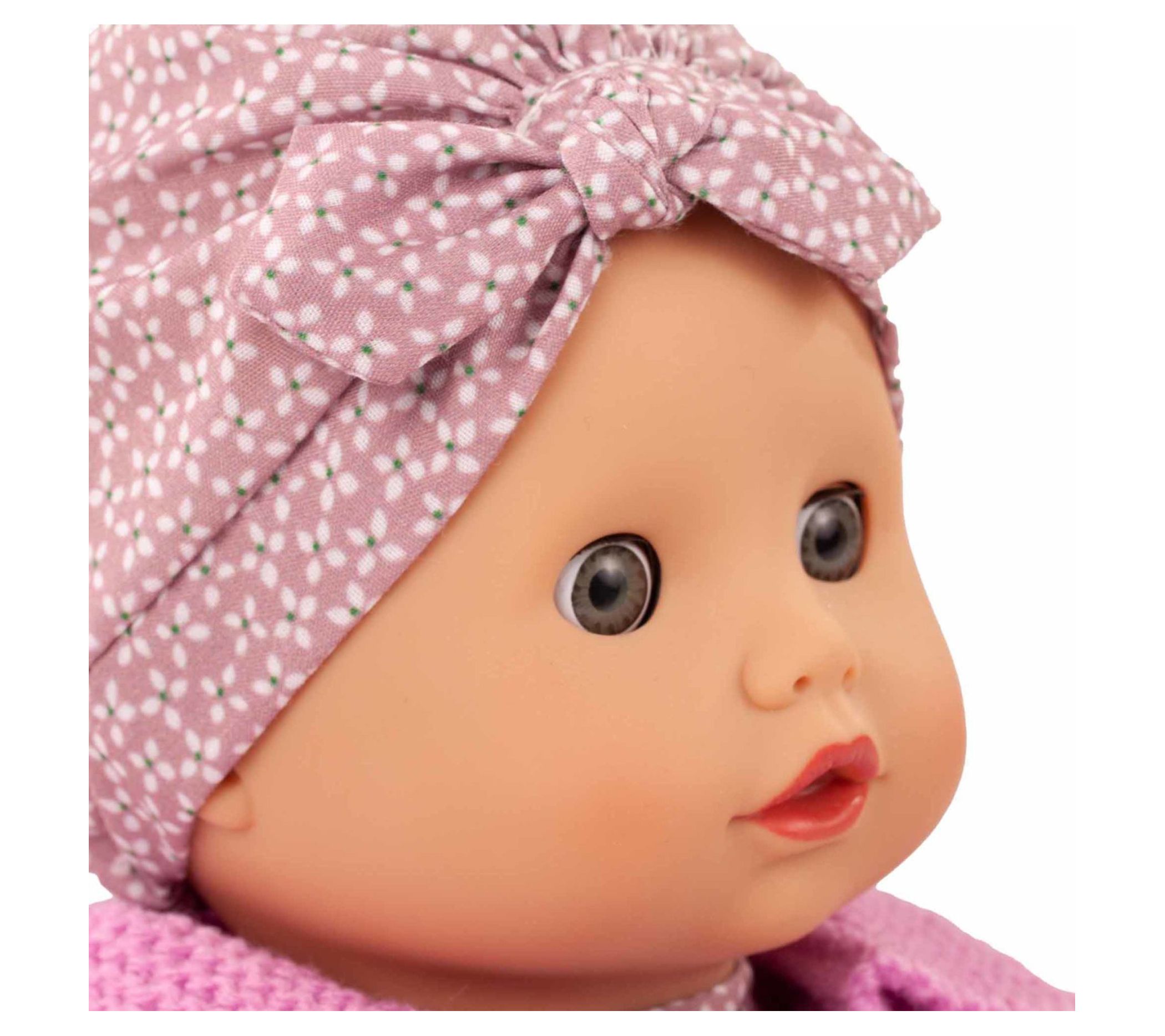 Little Muffin is ready for her day out, dressed in a pastel rose romper, matching bandana, and a cozy knitted jacket. With blue sleeping eyes and a cuddly, soft body, she’s perfect for any adventure. From Gotz.