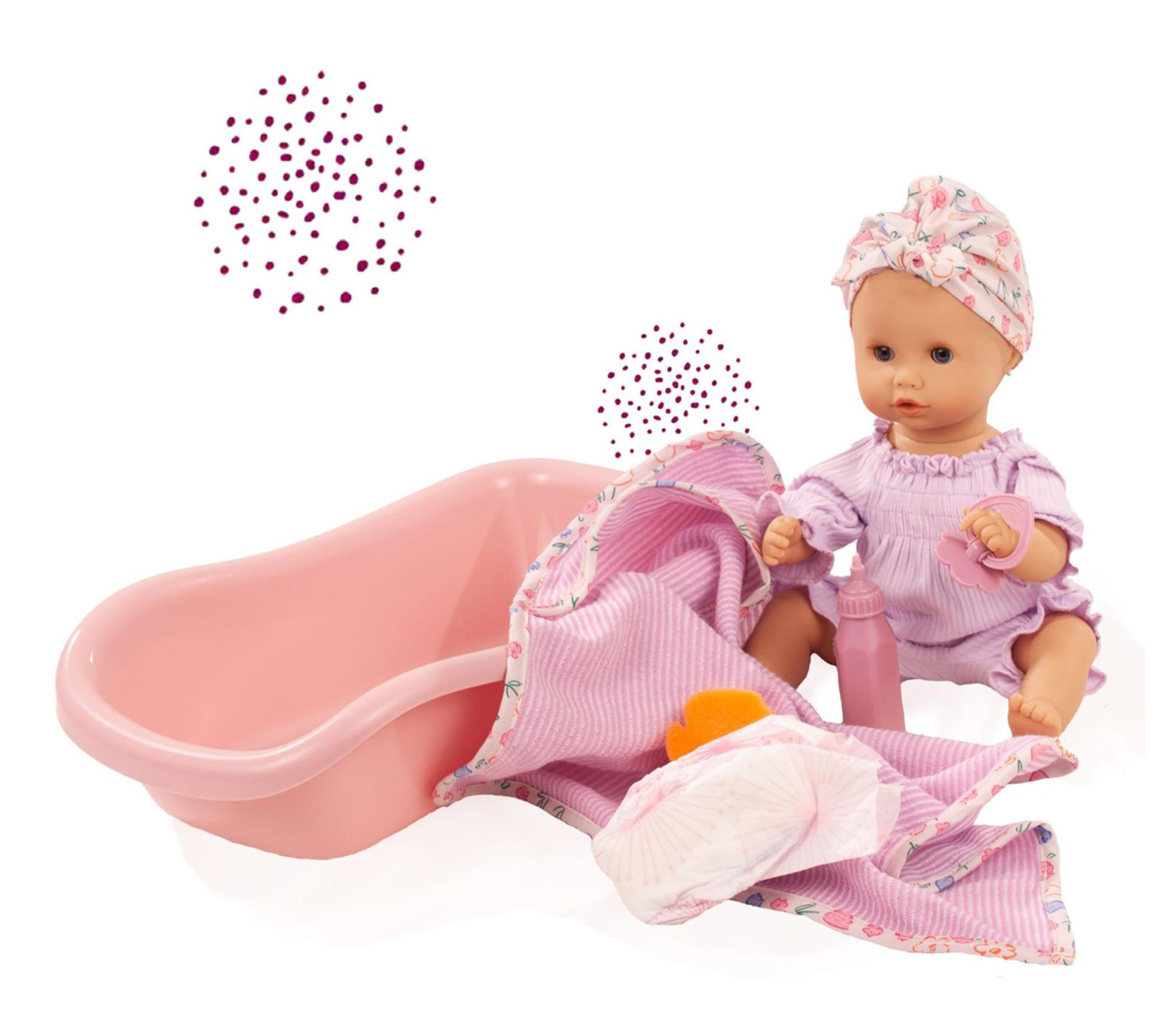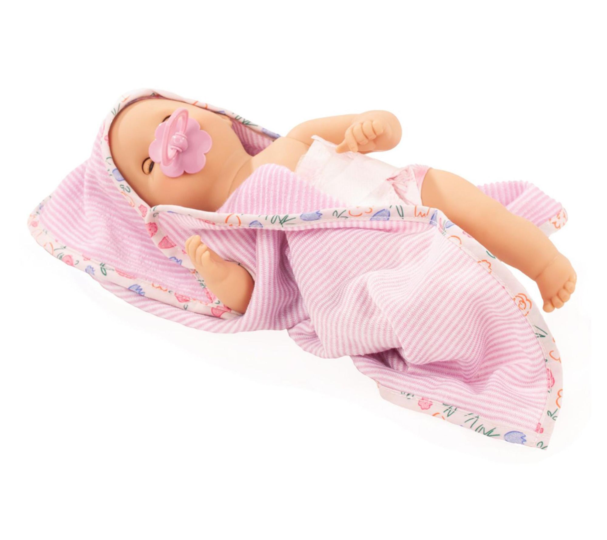 Naptime or bath time becomes an adventure with this 13" baby doll, complete with her own tub, sponge, and stylish hooded towel. A summery outfit and lifelike features encourage endless imaginative play -- from feeding her a bottle to helping her use the potty. From Gotz.