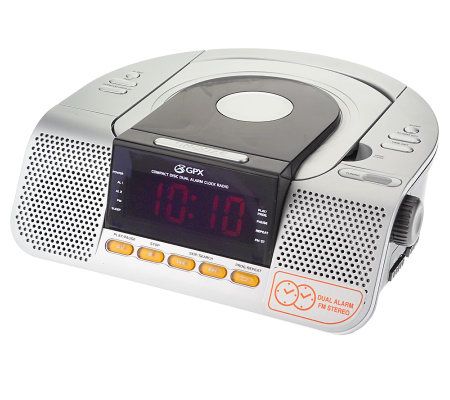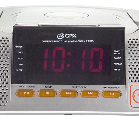 Rise and shine--or slip into slumber--while listening to your favorite station or CD with this GPX clock radio. Two programmable alarms let you and your partner customize independent wake-up calls. A sleep timer lets you drift to sleep enjoying the tunes you love. And so you can rest worry-free, the battery backup function preserves the time and alarm settings during power outages. Snooze bar. Requires 1 9V battery for backup, not included.