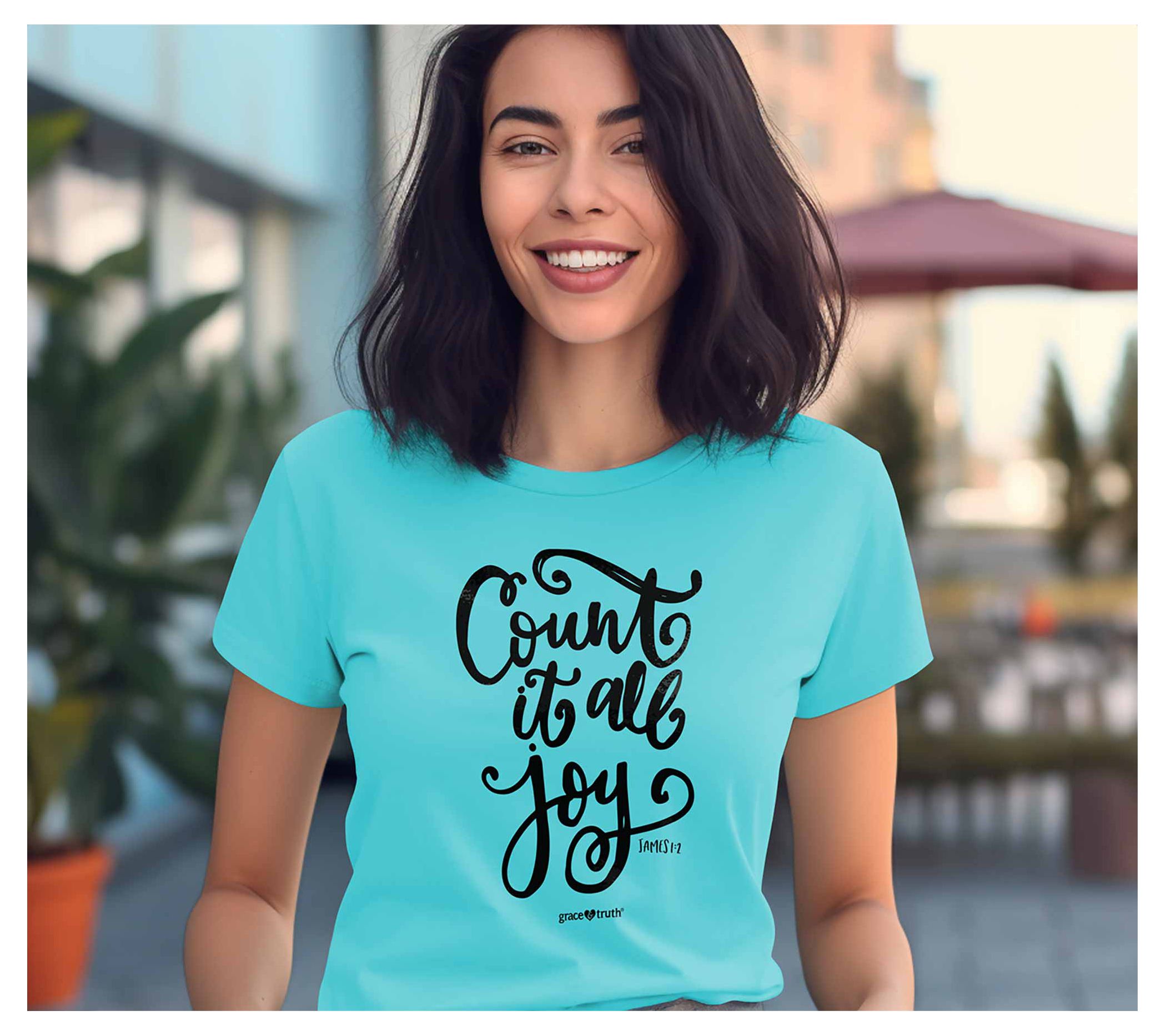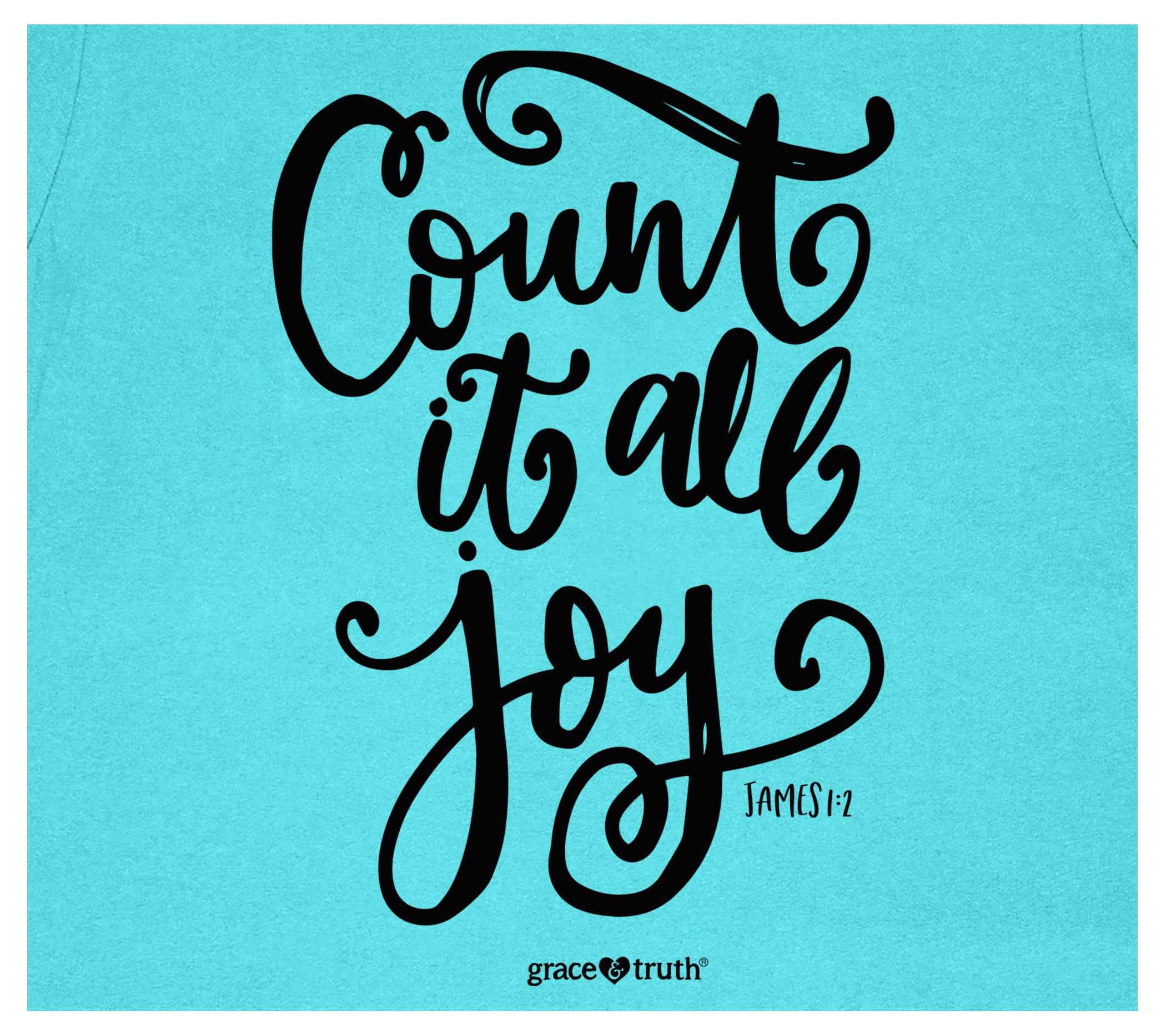 Count your blessings in style with grace & truth tee, featuring the uplifting "Count It All Joy" message. This semi-fitted tee is crafted from 100% pre-shrunk cotton for a soft and comfortable feel. From grace & truth.