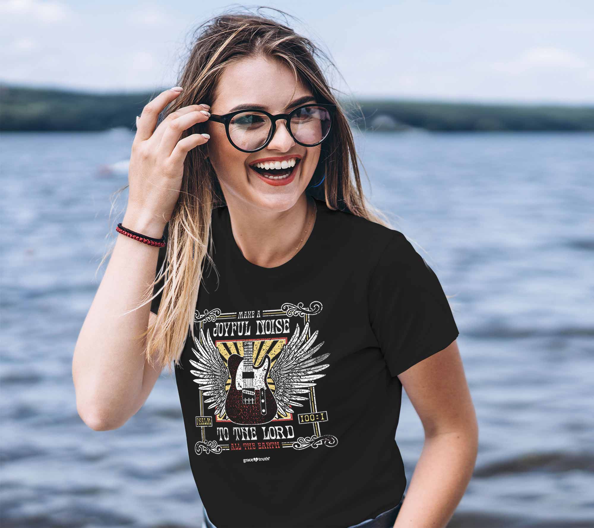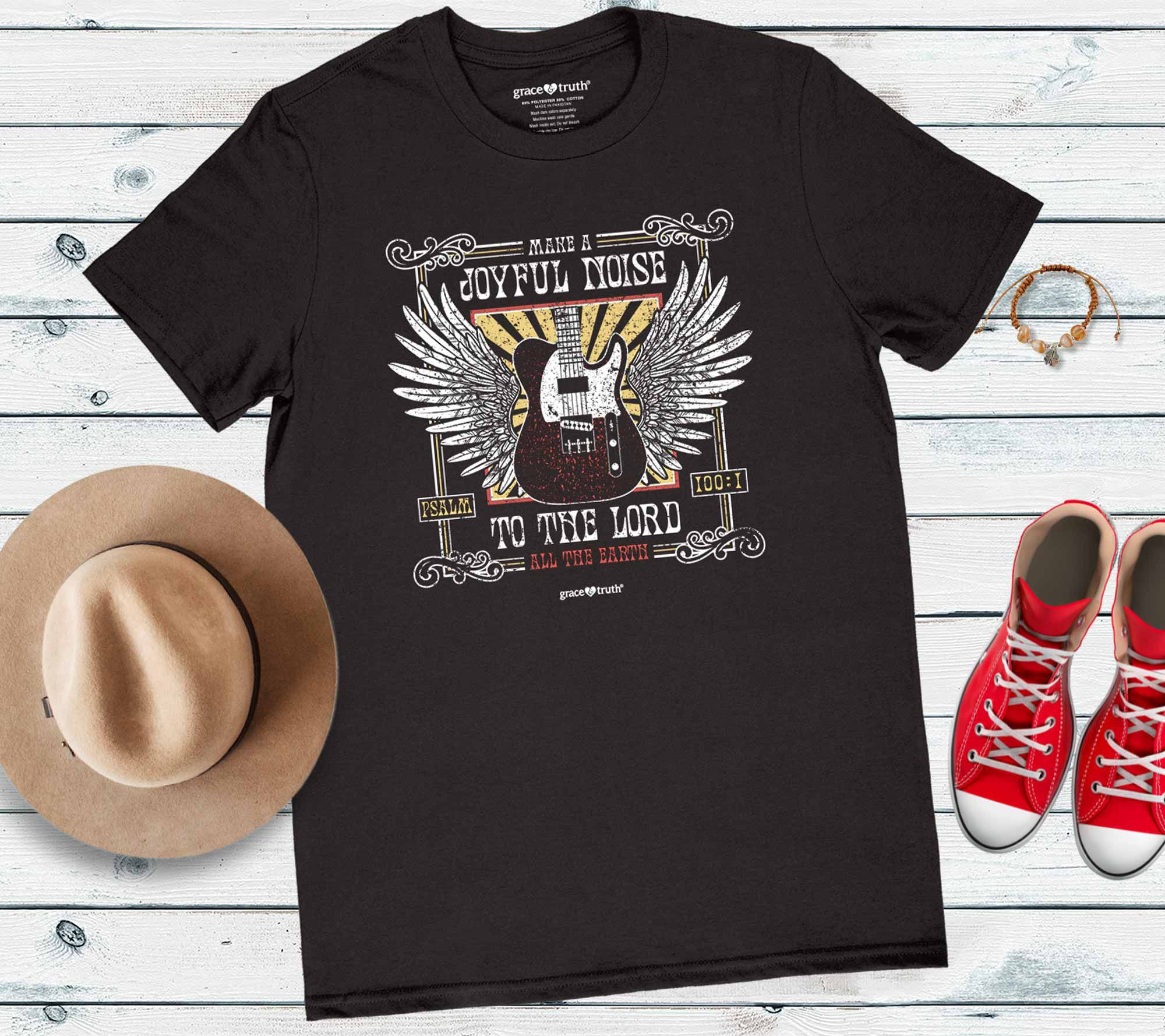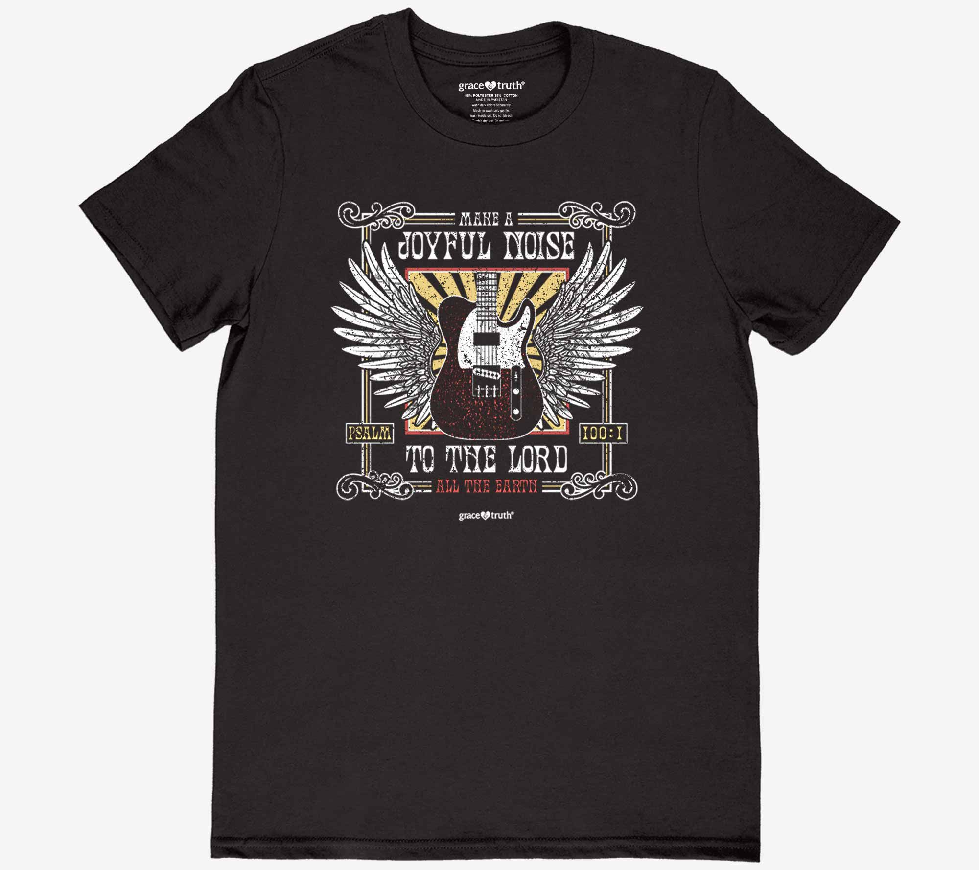 Show your faith in style with the Joyful Noise tee. Crafted in pre-shrunk ringspun cotton, the semi-fitted shirt lends comfort to worship days, family outings, and errands about town. From grace & truth.
