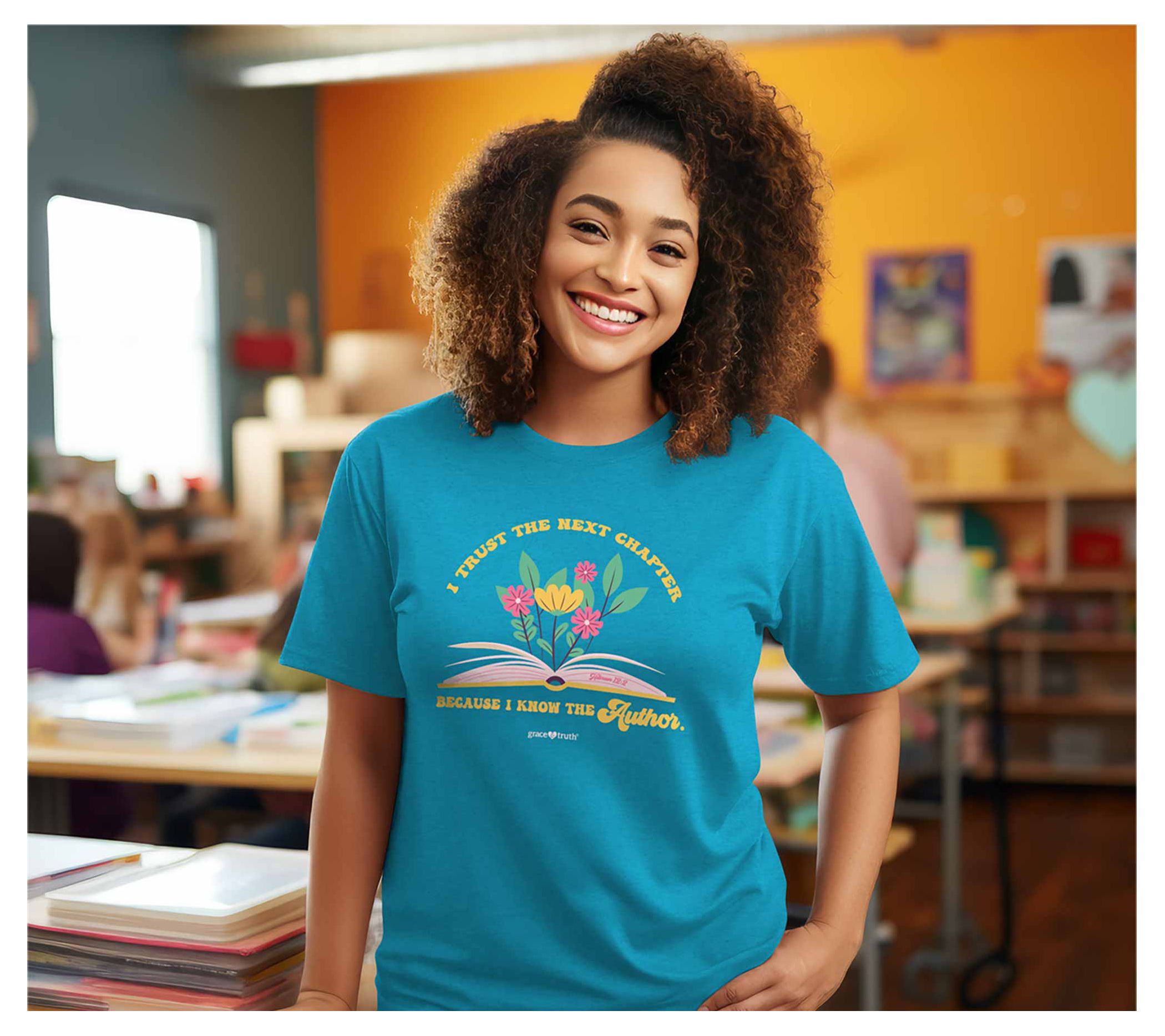 Embrace comfort and style with the grace & truth women's tee "Next Chapter." Made from 100% cotton, it's beautiful way to showcase your faith. From grace & truth.