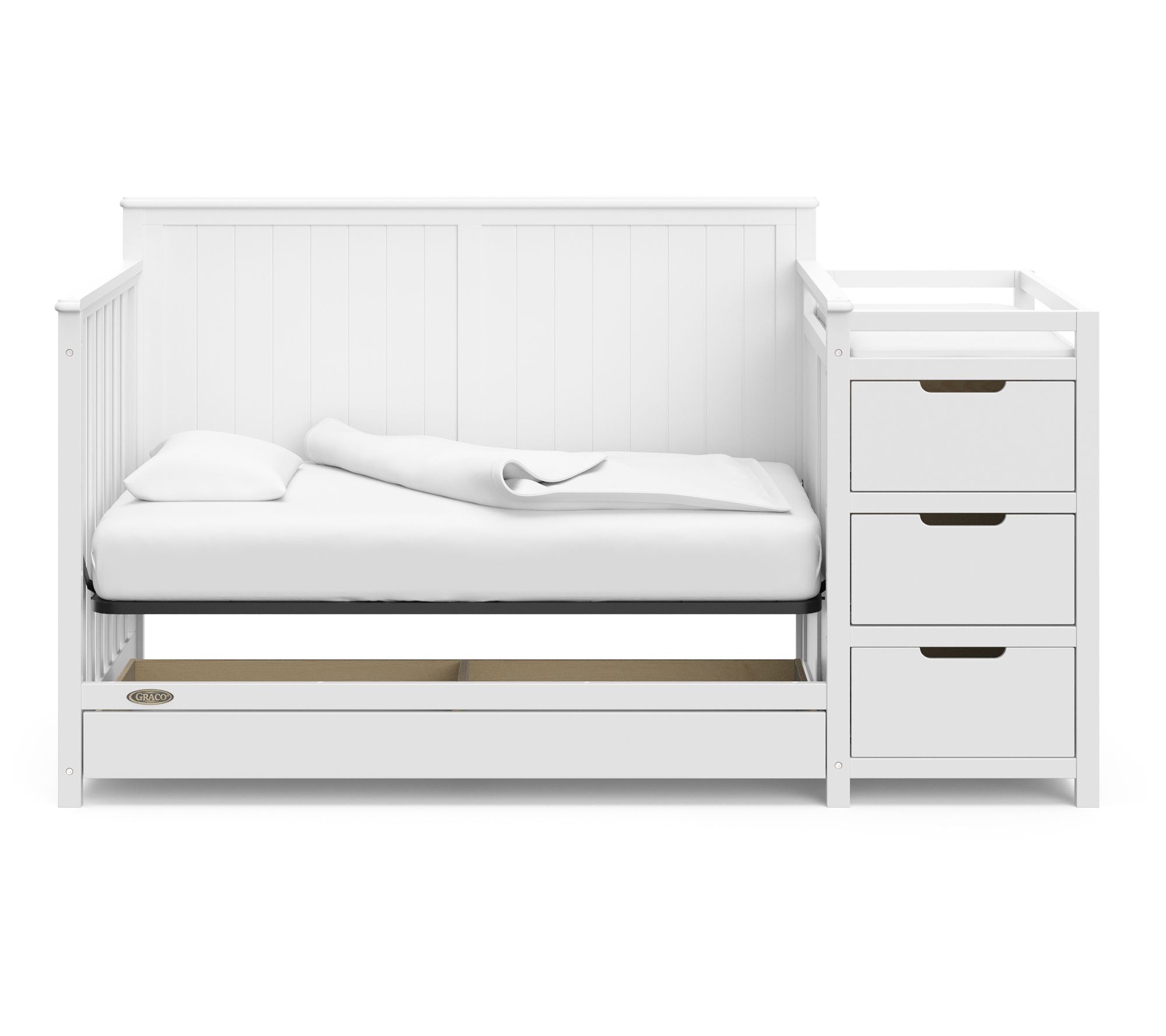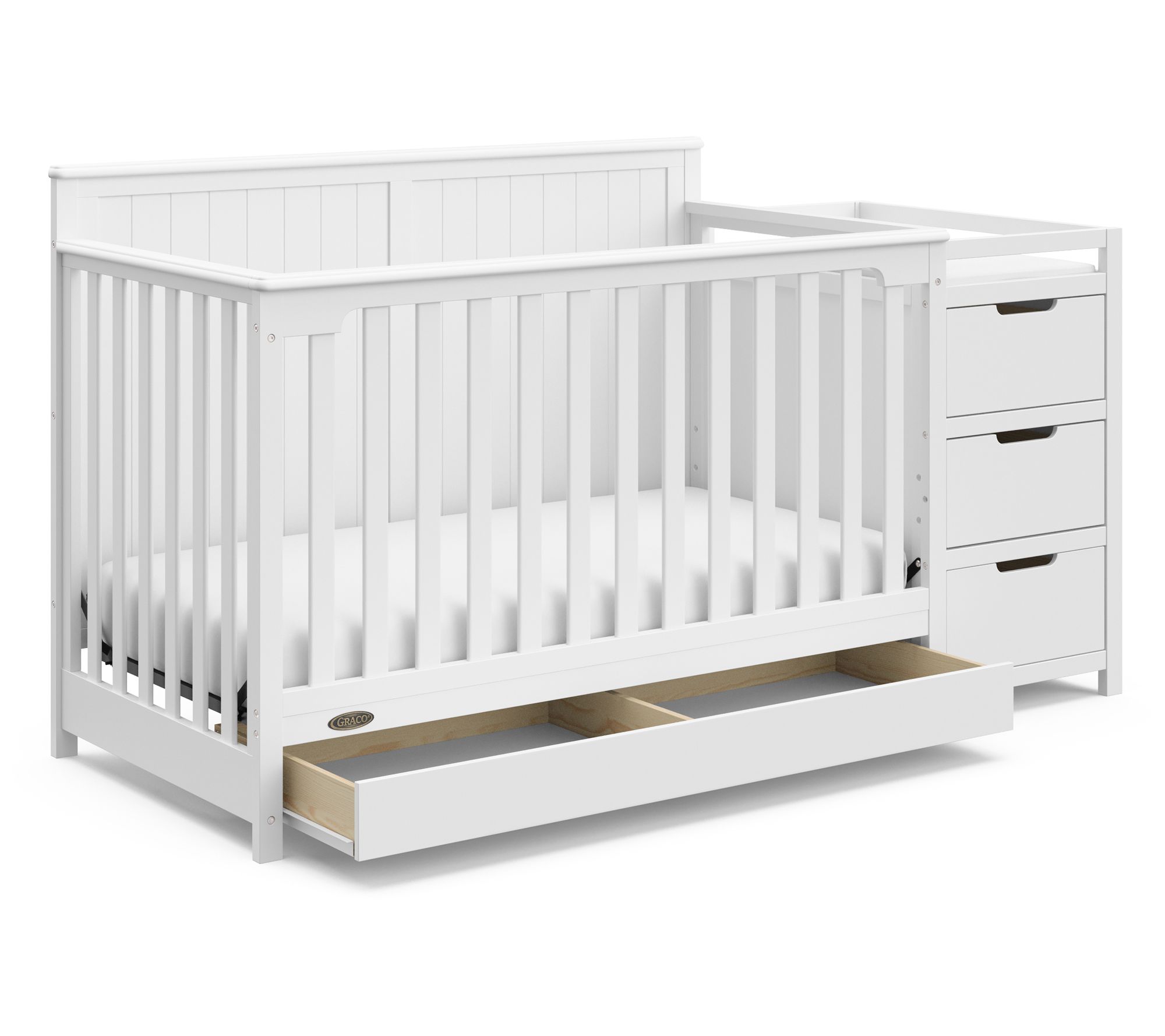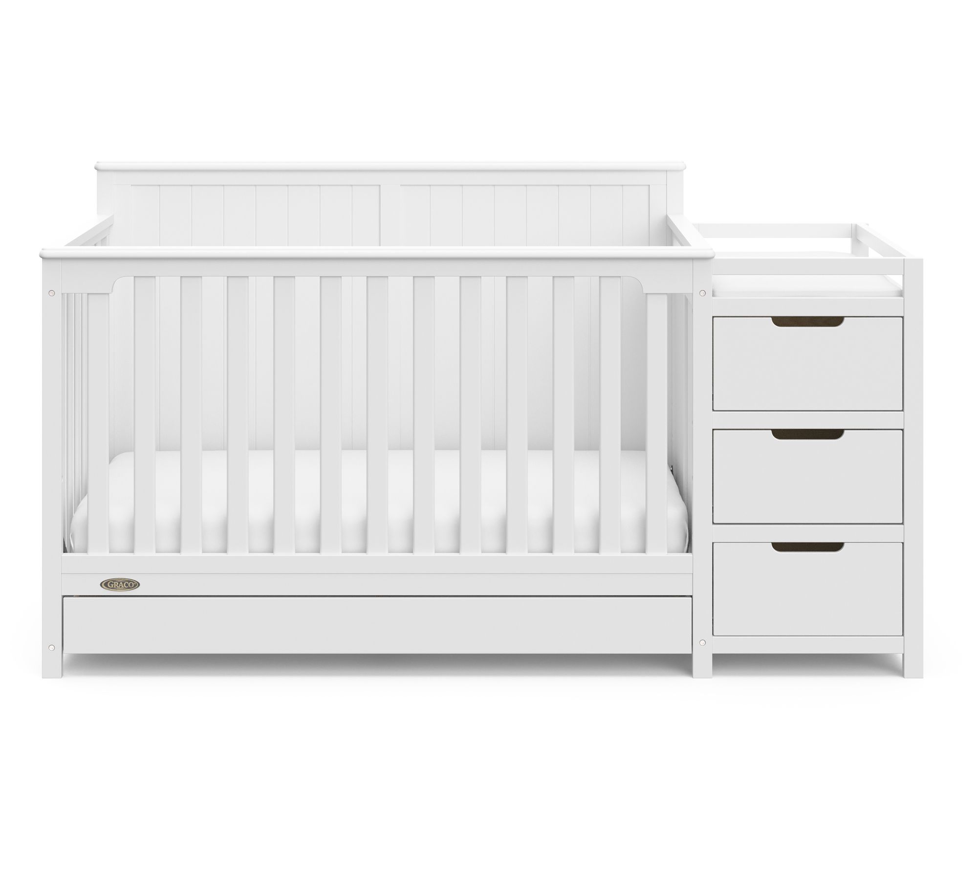 An essential piece for any nursery, the Hadley crib offers an attached changing table and converts to a toddler bed, daybed, and full-size bed for years of sweet dreams. From Graco.