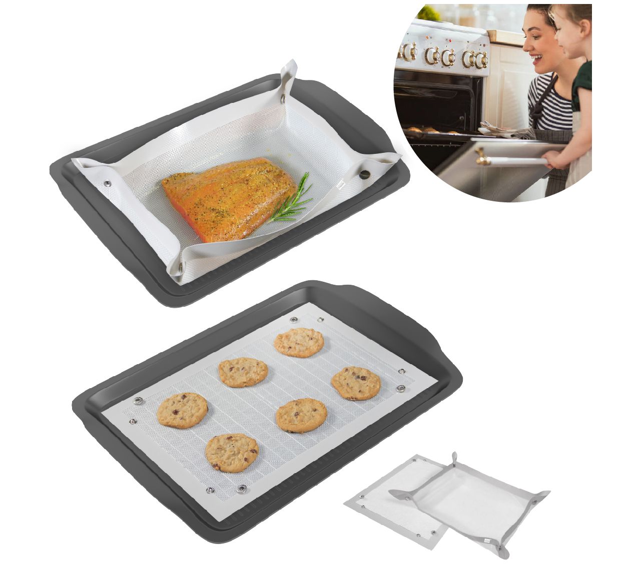 Bake perfect muffins and cookies with the help of these silicone baking mats that prevent food from sticking via the heat-resistant, leakproof design. From Grand Fusion.