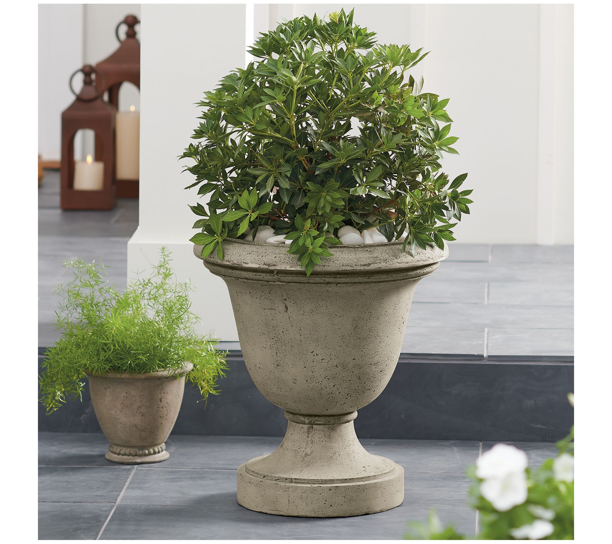 Curb appeal? Not a problem when you've got Grandin Road's aged charcoal planter in place. Provide your favorite live greenery, flowers, or faux fillers a pretty place to perch while enhancing your front porch, landscaping, or patio's charm with it's stone-like look and curved silhouette. It makes the perfect setting for seasonal decor, too. From Grandin Road.