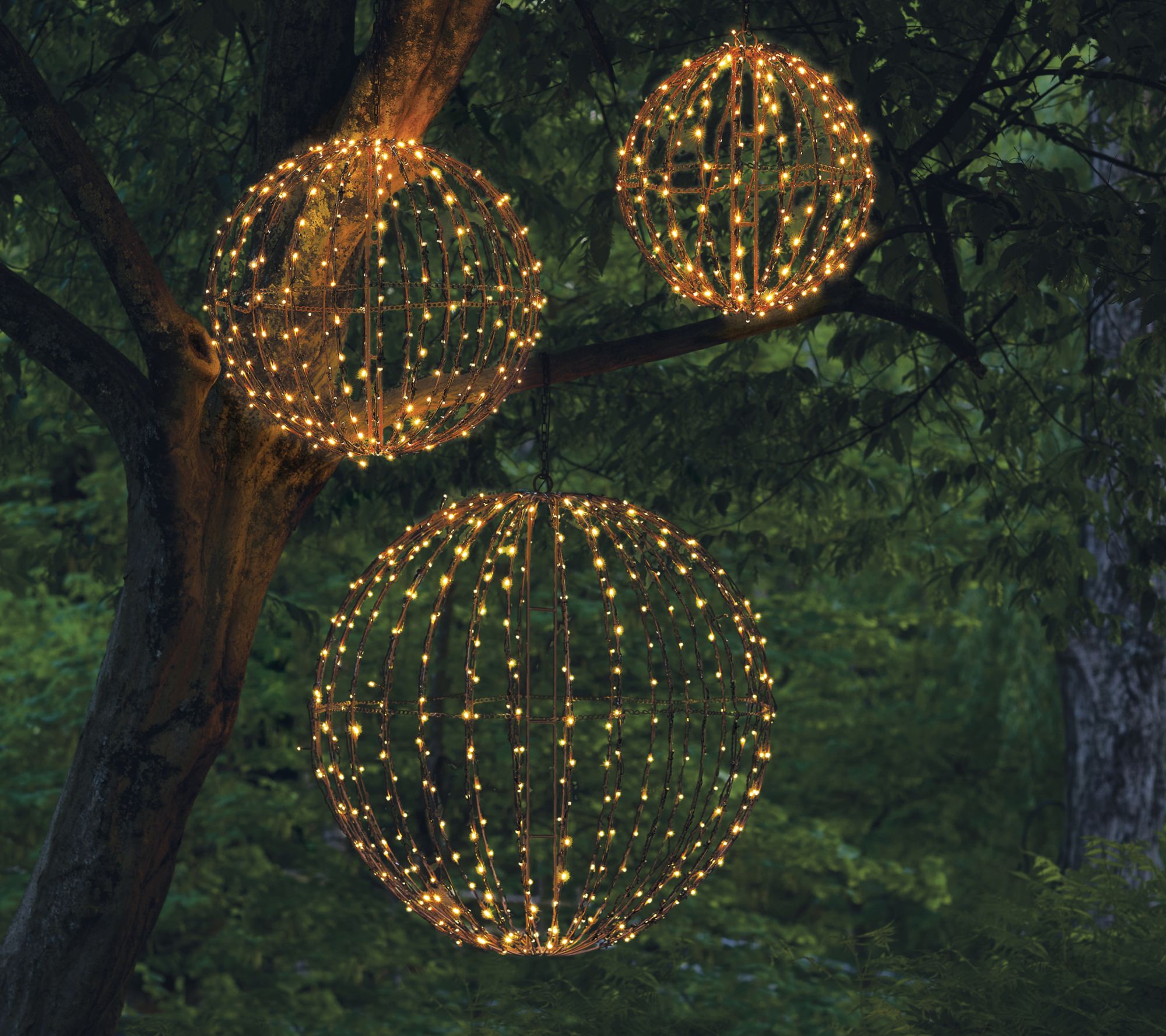 Let their be light -- all year round! This 3D illuminated sphere delights with a stunning light display suitable for any occasion. Hang on the front porch, covered patio, or tree to brighten the night or add seasonal joy. When you're ready to store it, simply collapse and tuck it away. From Grandin Road.