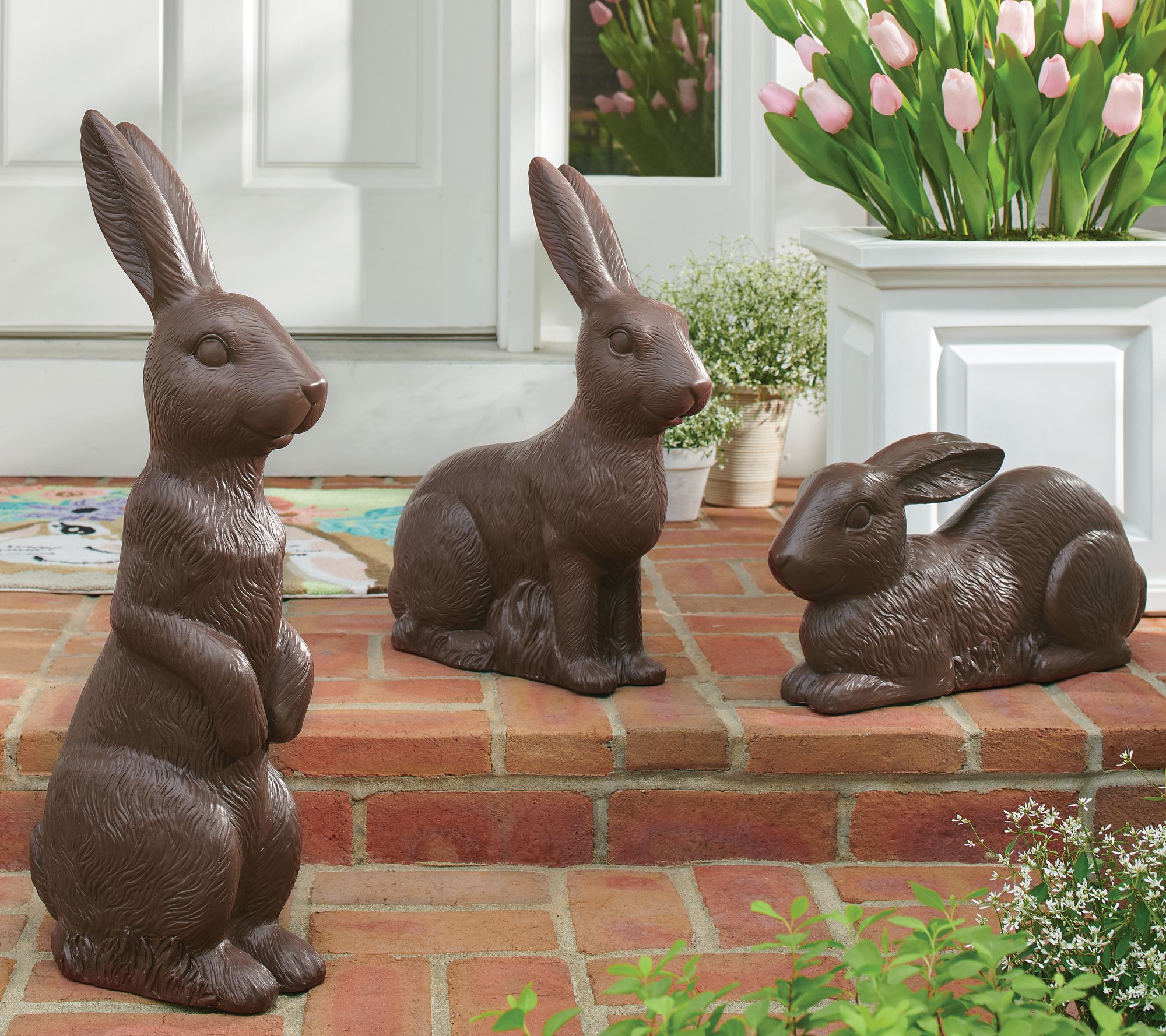 So sweet (without a single calorie!), you'll be instantly enamored by this Grandin Road chocolate bunny decor. Delightfully crafted in polyresin, this dapper fellow looks as though he's been freshly pulled from a candy mold, complete with detailed etching in a yummy-looking milk chocolate color. From Grandin Road.