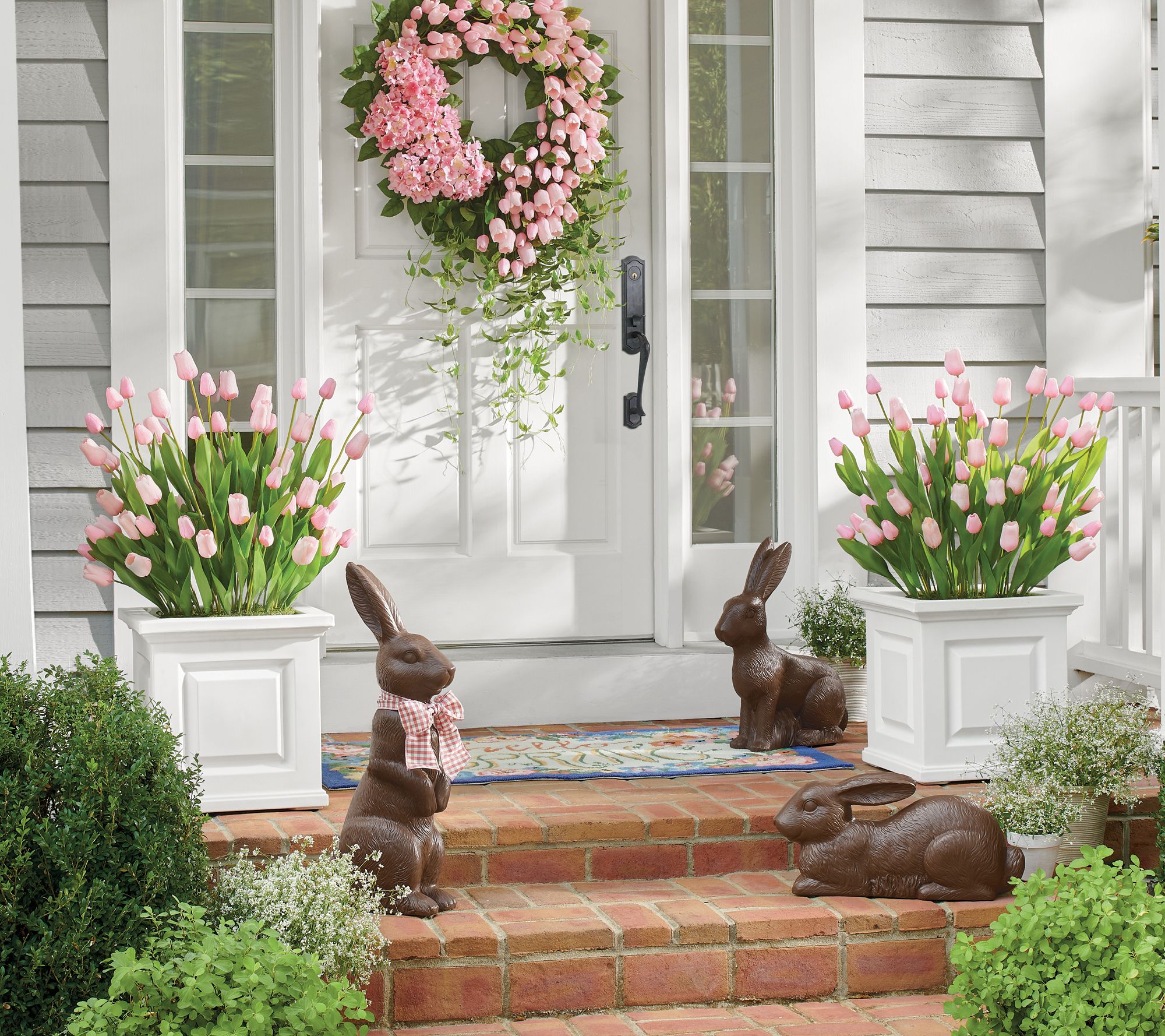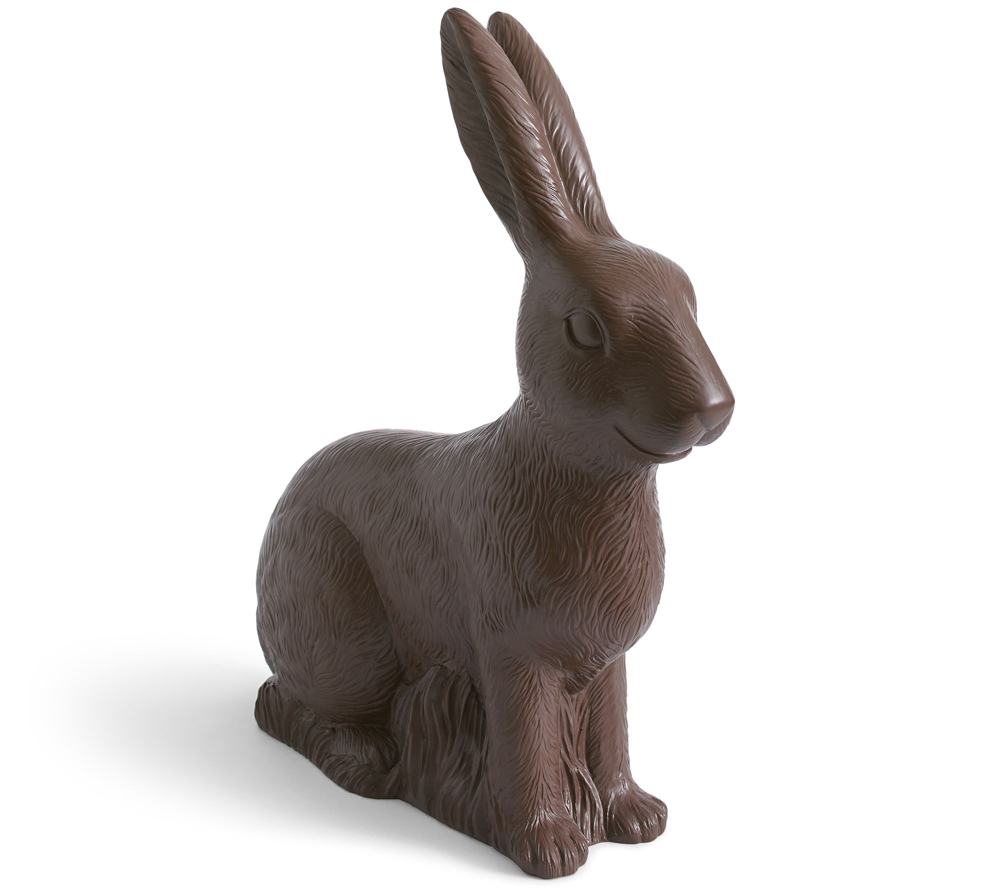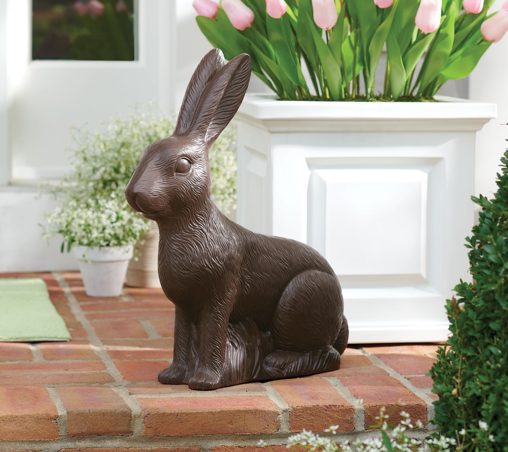 Looking freshly pulled from a candy mold, this sitting chocolate bunny may seem incredibly edible, but don't take a bite! Crafted from durable resin, he brings a special sweetness to your springtime decor -- without a single calorie. Perfect for both indoor and porch displays, he’ll nestle beautifully into your Easter or springtime decorations as a charming statement piece. From Grandin Road.