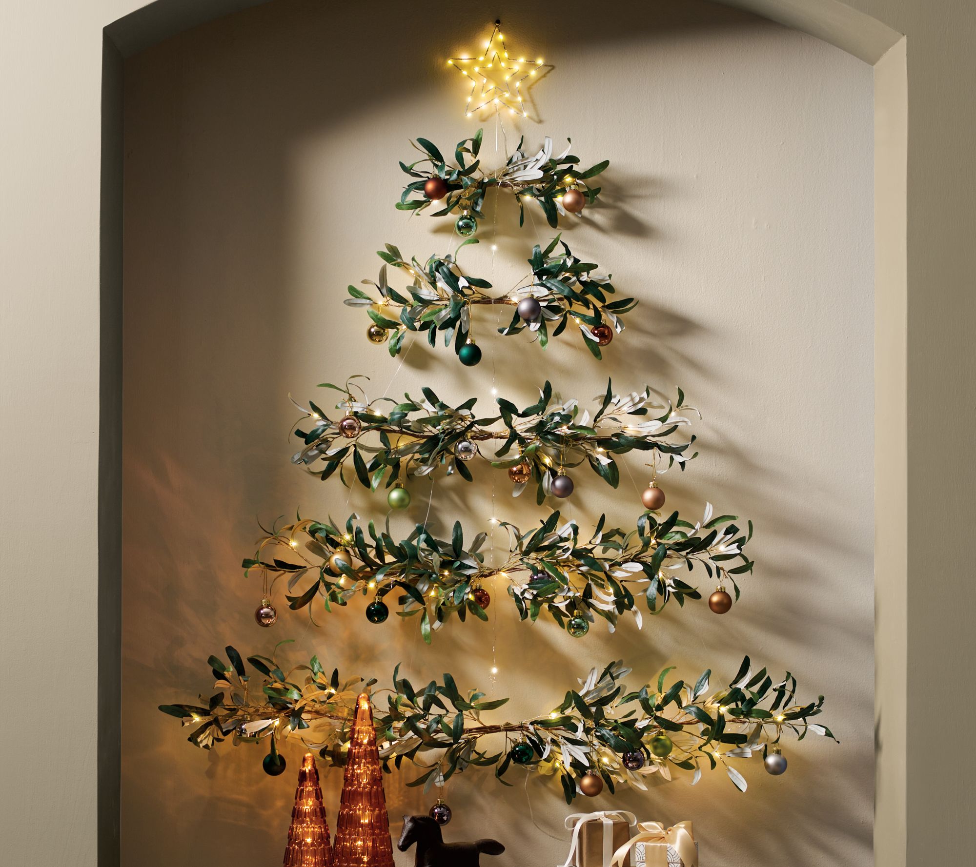 A delightful alternative to traditional holiday trees, the Grandin Road pre-lit hanging olive leaf tree provides a touch of seasonal sparkle to any sparse space (we're thinking hallways, guest bedrooms, or even apartments). The festive find is pre-lit with 100 warm white LEDs and finished with a lighted star. From Grandin Road.
