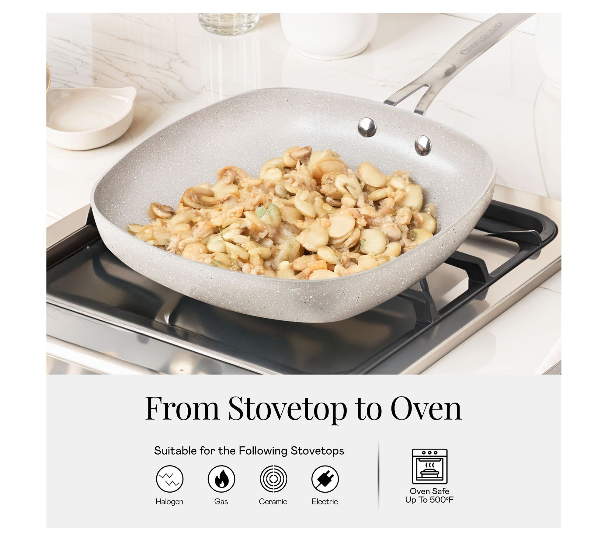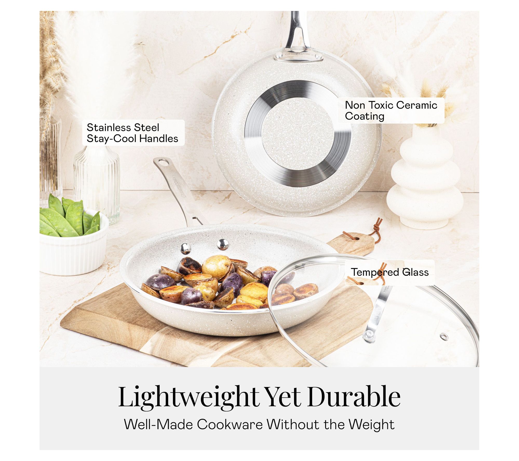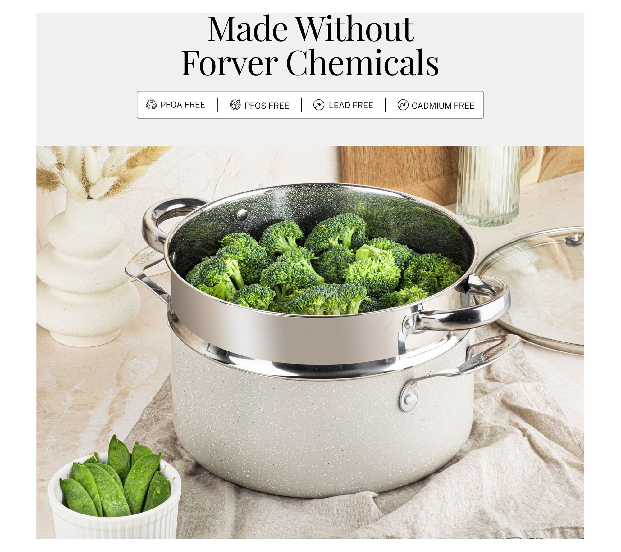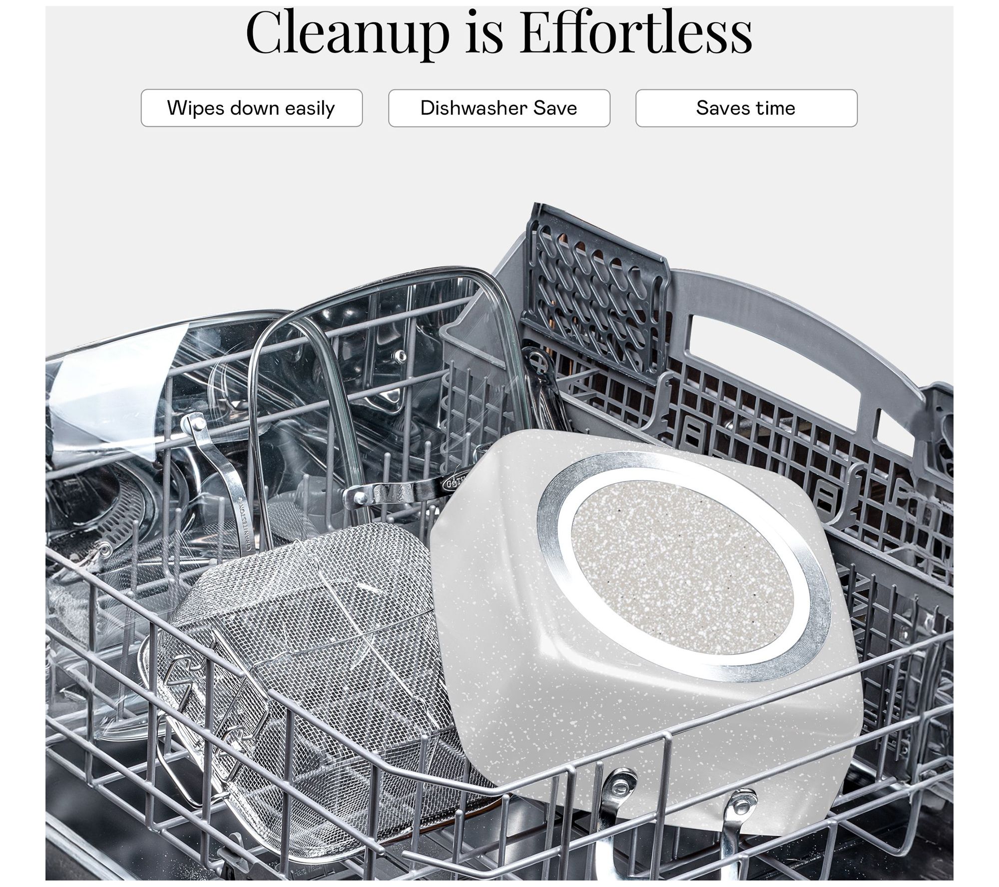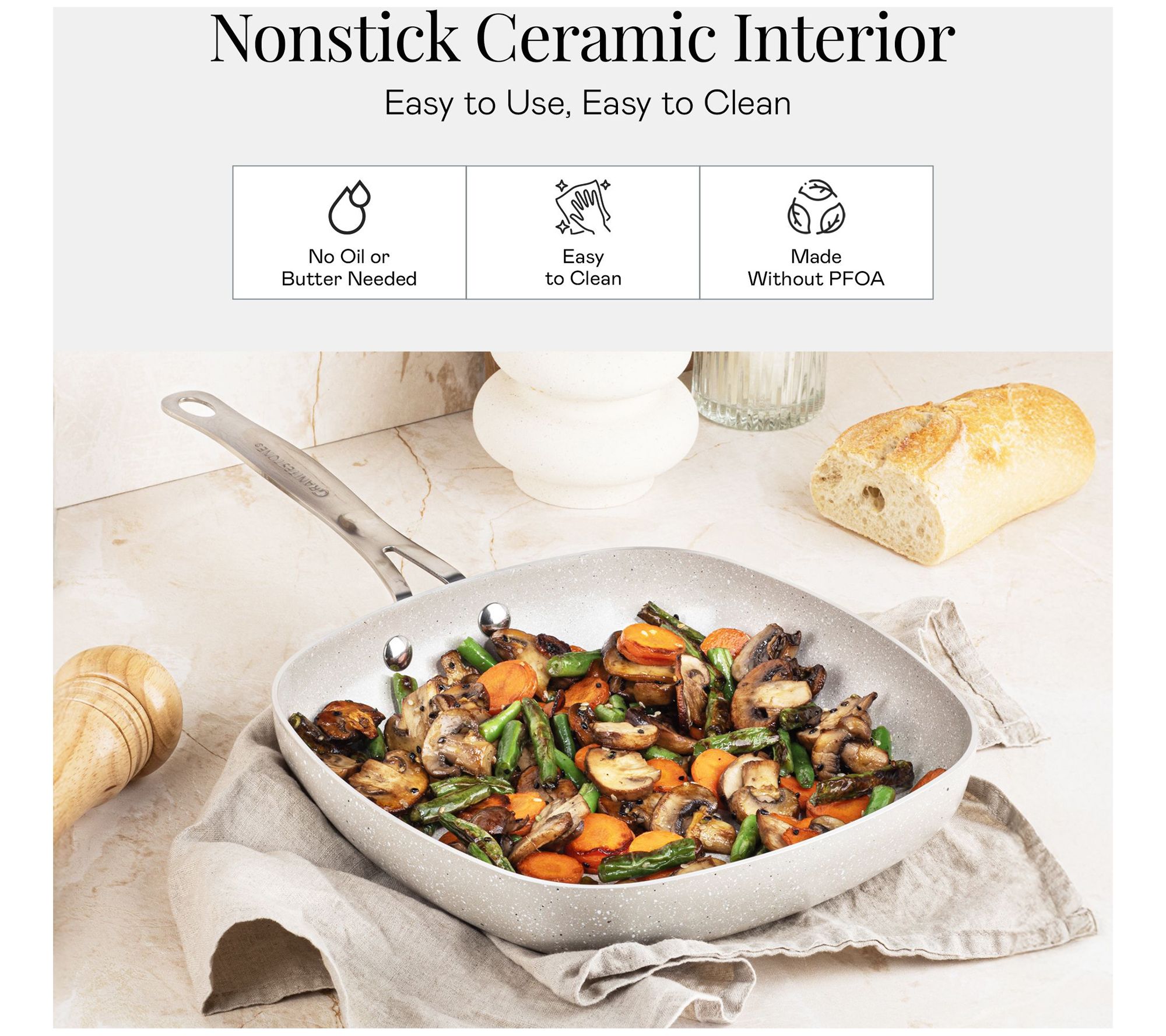 When dinnertime calls for something special -- or quick and simple -- this set steps right up with cookware, bakeware, and utensils to handle every meal. Fry, simmer, bake, or steam with durable ceramic-coated pans that clean easily, even after family feasts. From Granitestone.