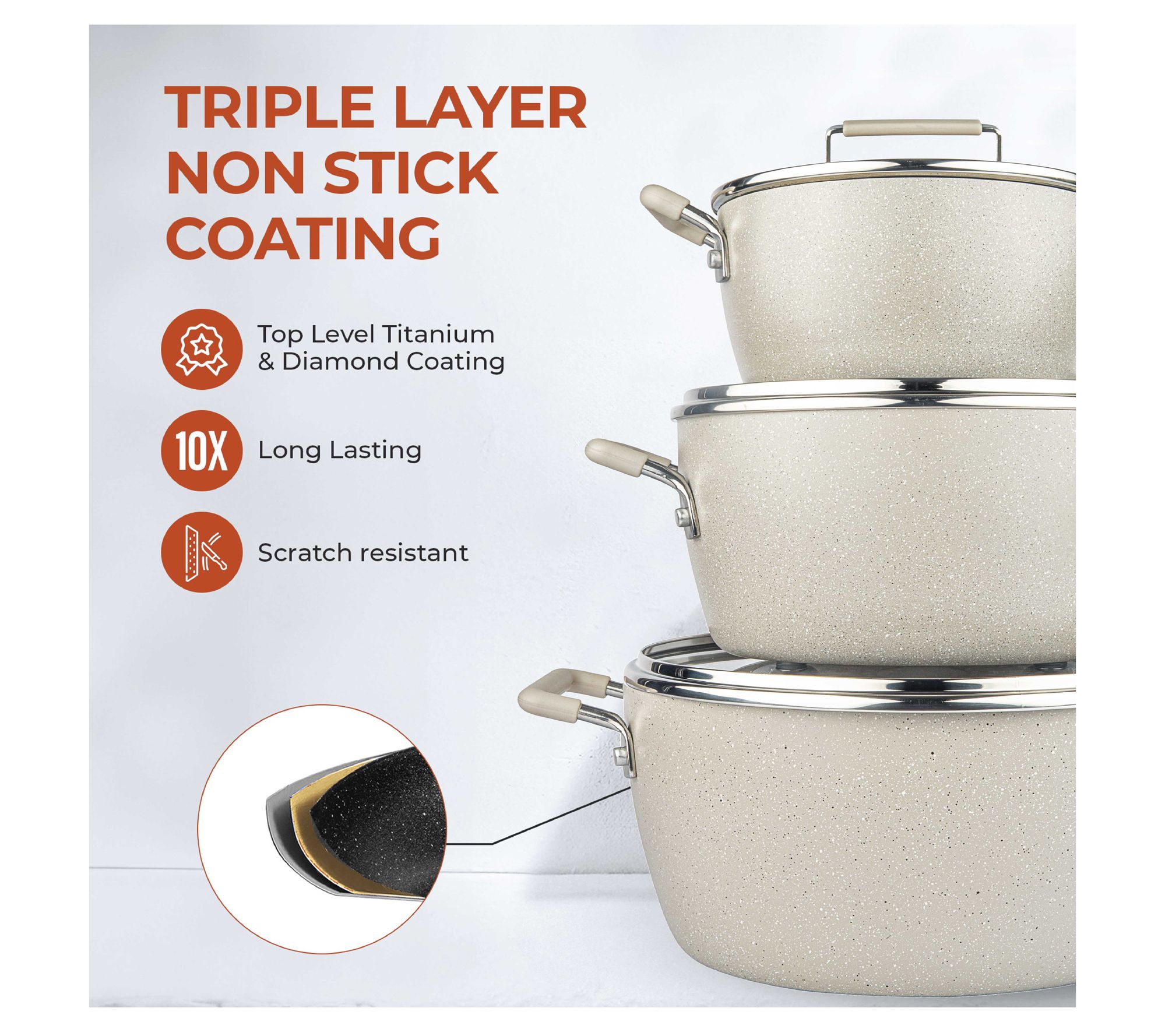 Granitestone 6 Piece Beige Nonstick Stackable Nesting Pots