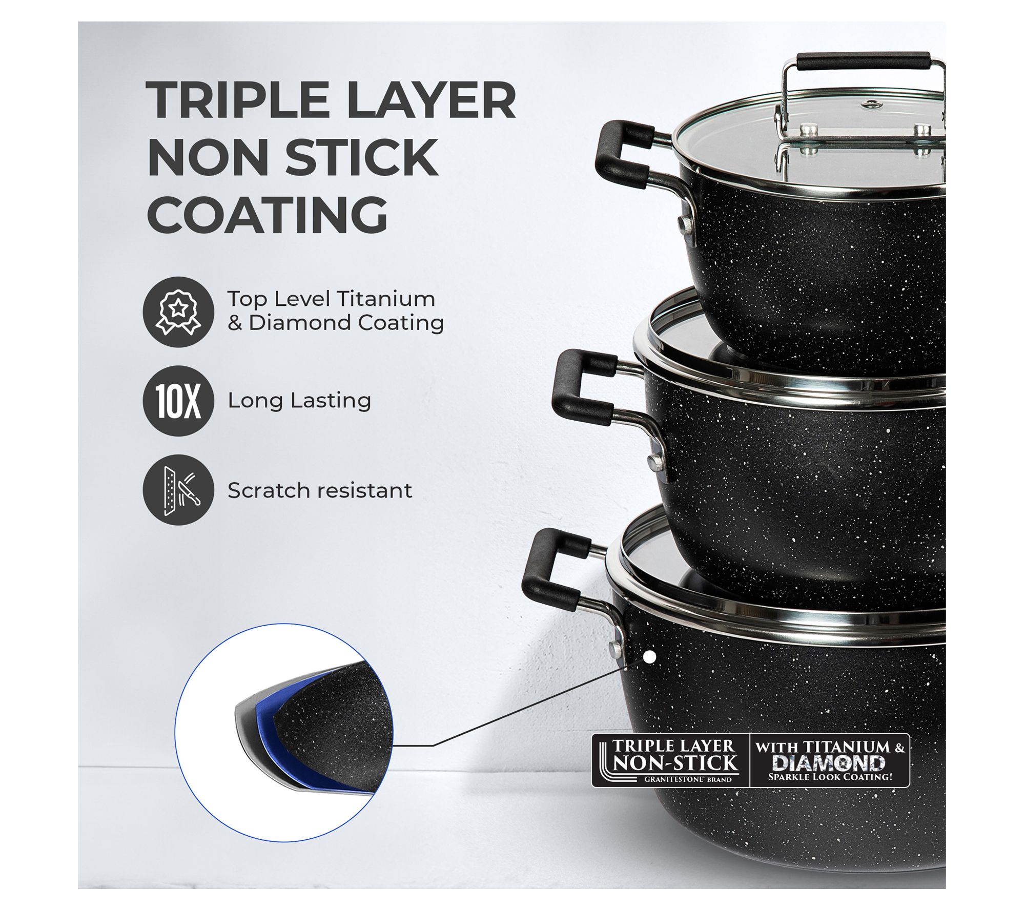 Granitestone 6 Piece Nonstick Space Saving Nesting Pots