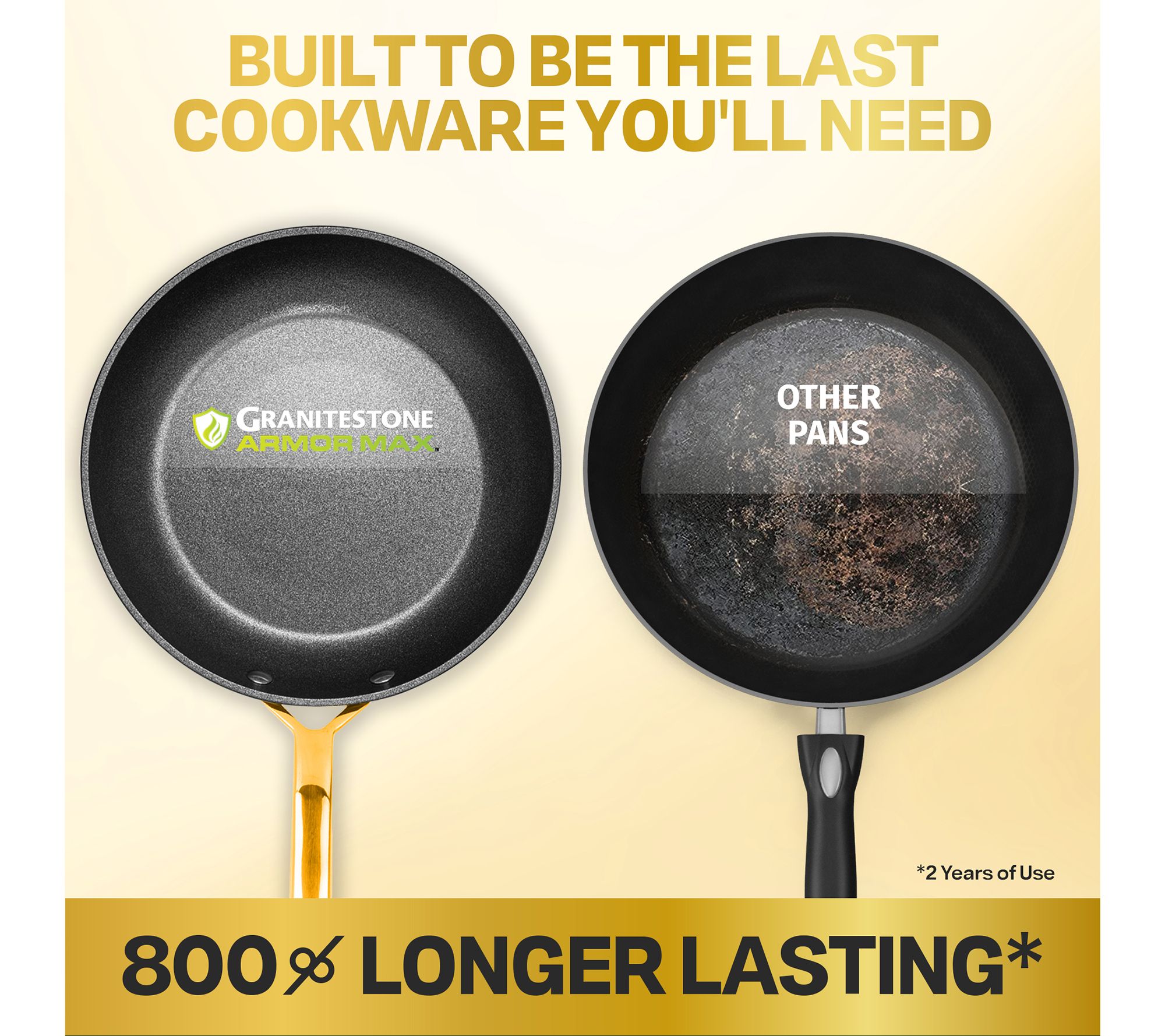 You’ll enjoy cooking like a pro with the Granitestone Armor Max Gold 20-piece cookware and bakeware set. Whether you’re whipping up a quick weeknight dinner or preparing a full holiday feast, this comprehensive set has you covered with pots, pans, knives, and more. From Granitestone.
