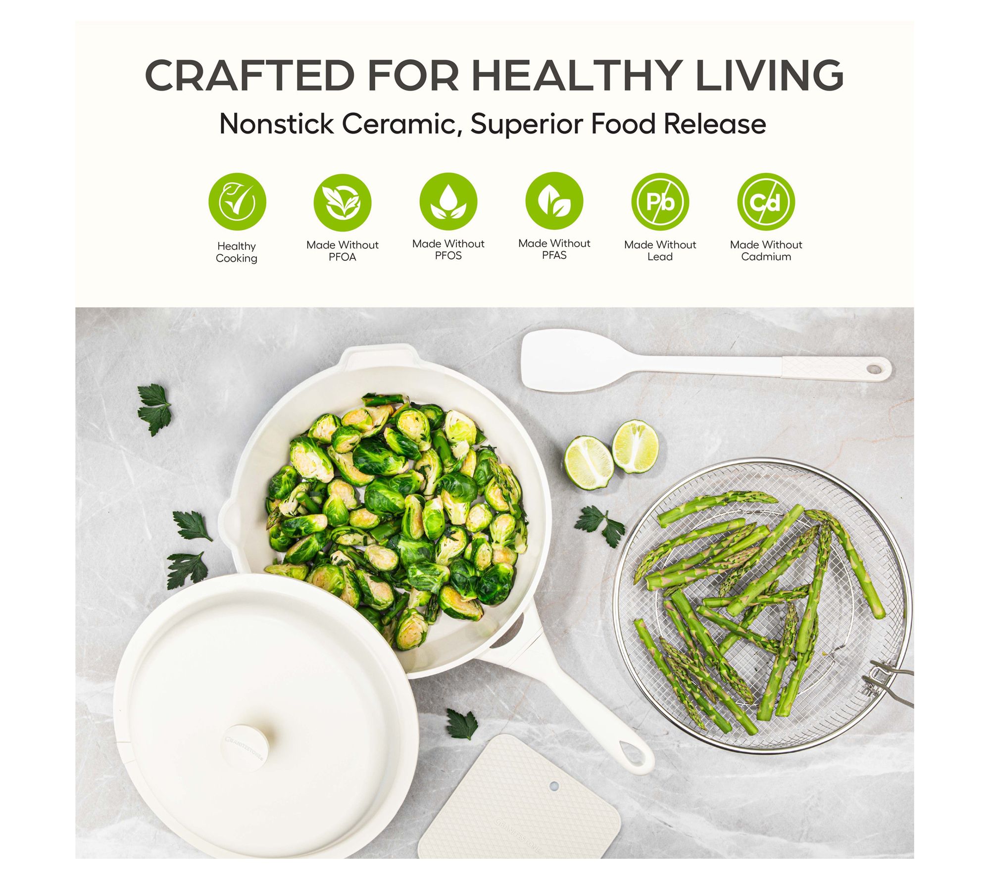 Transform your culinary experience with this 10-in-1 everyday cooking pan set, the ultimate versatile tool for home chefs. Designed to replace multiple kitchen tools, this versatile pan lets you fry, bake, saute, roast, boil, braise, and more-all in one durable, nonstick pan. From Granitestone.