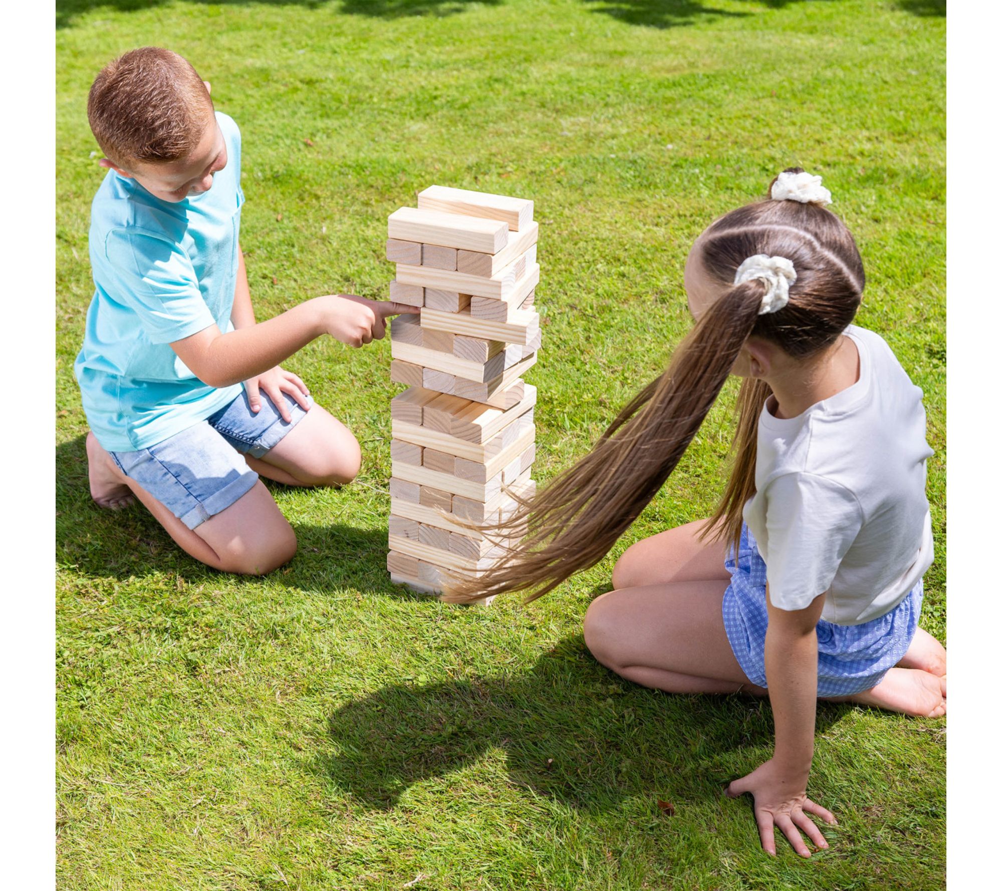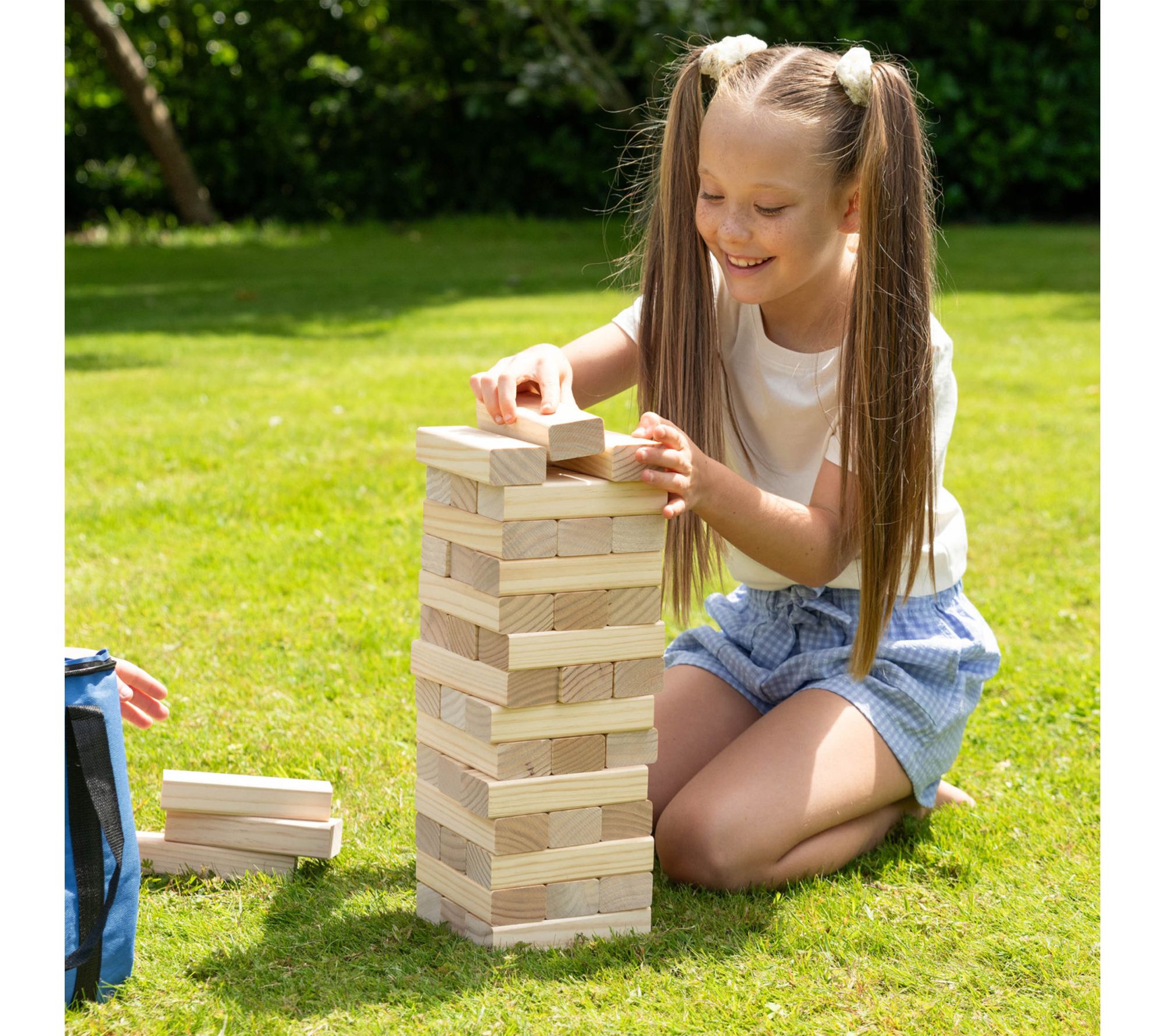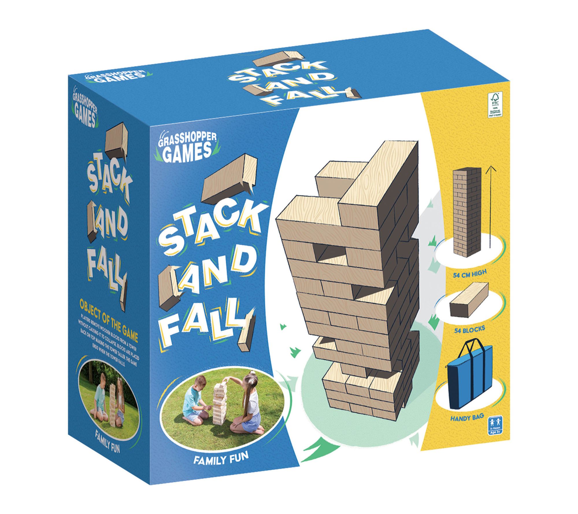 Make every outdoor gathering unforgettable with this giant stack and tumble lawn game. Crafted from wood with 54 precision blocks and a convenient carry bag, it's easy to take along for backyard barbecues, beach outings, and weekend picnics. Challenge friends and family to test their balance and skill for hours of laughter and lively competition. From Grasshopper Games.