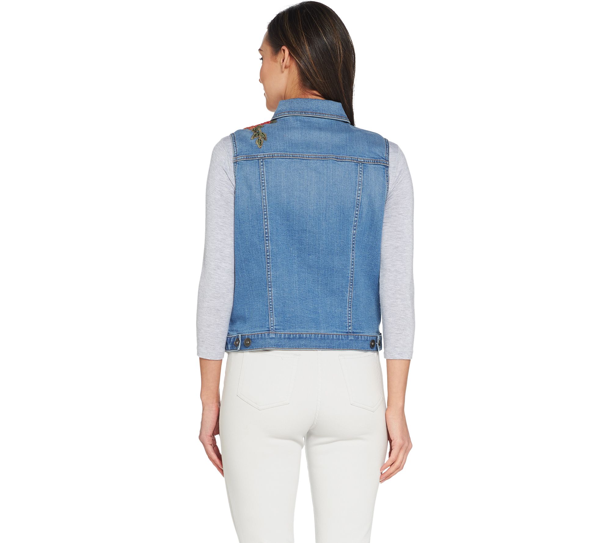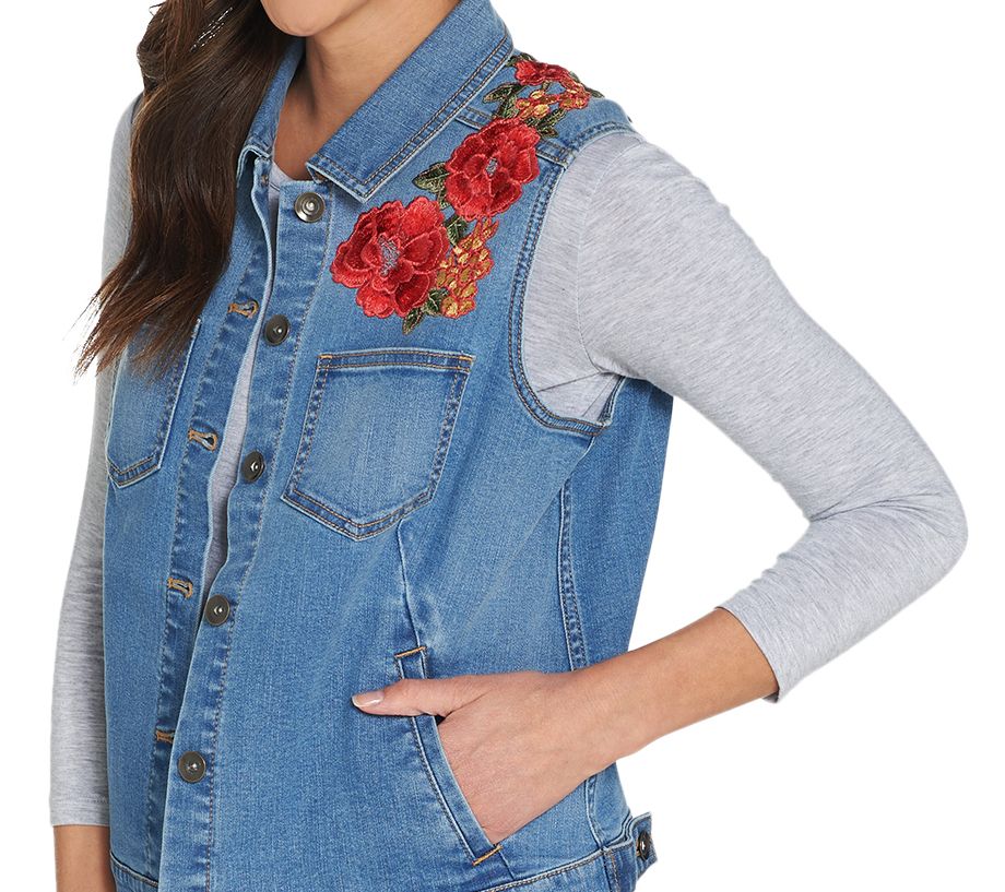 GRAVER Susan Graver High Stretch Denim Vest with Embroidery