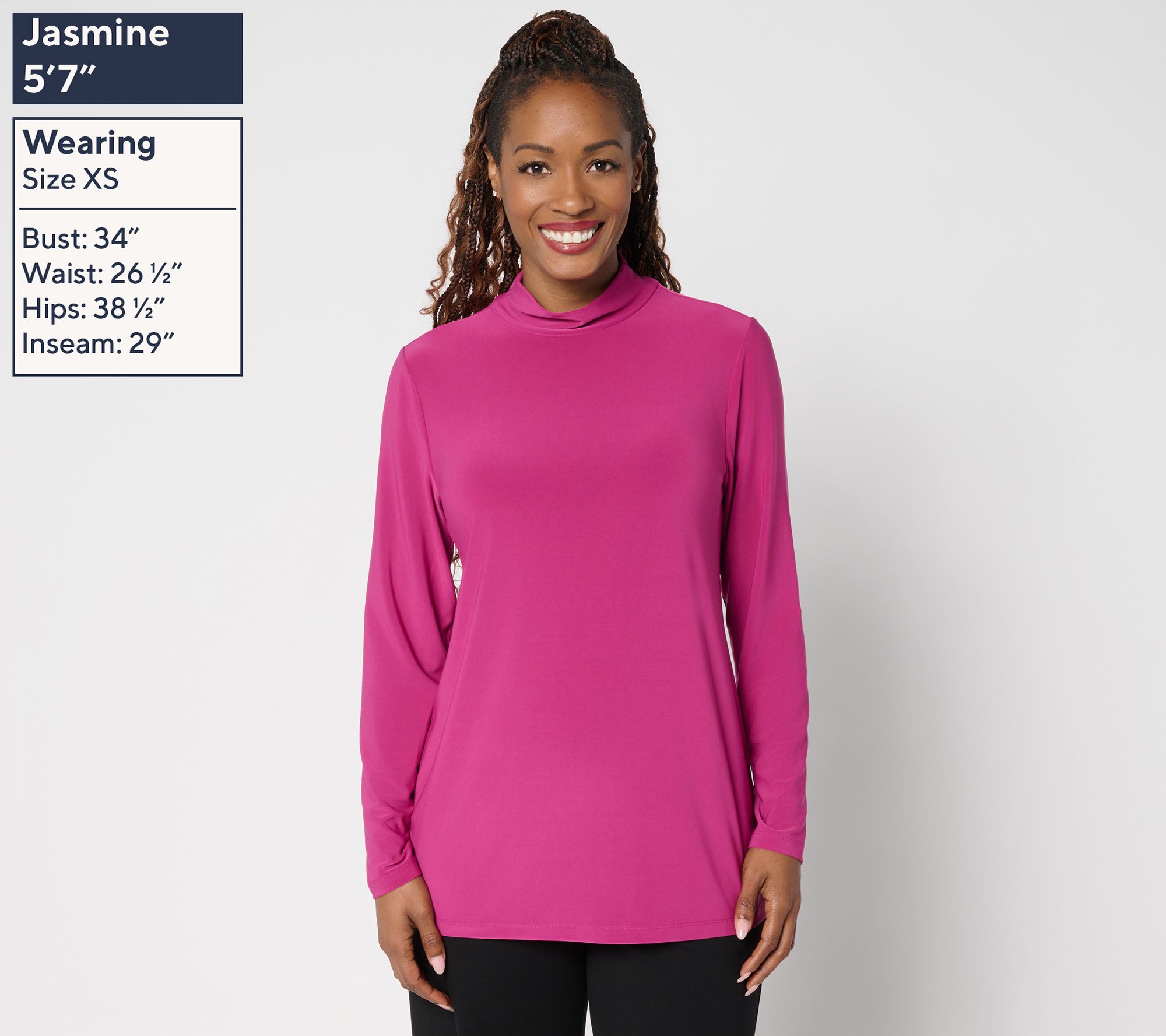 Softly structured with a modern edge, this knit mock-neck top transforms simple moments into polished occasions. Its long sleeves and comfortable pull-over design make it a wardrobe favorite for layering under jackets or pairing with tailored pants for brunch, travel, or a night out. From Susan Graver.