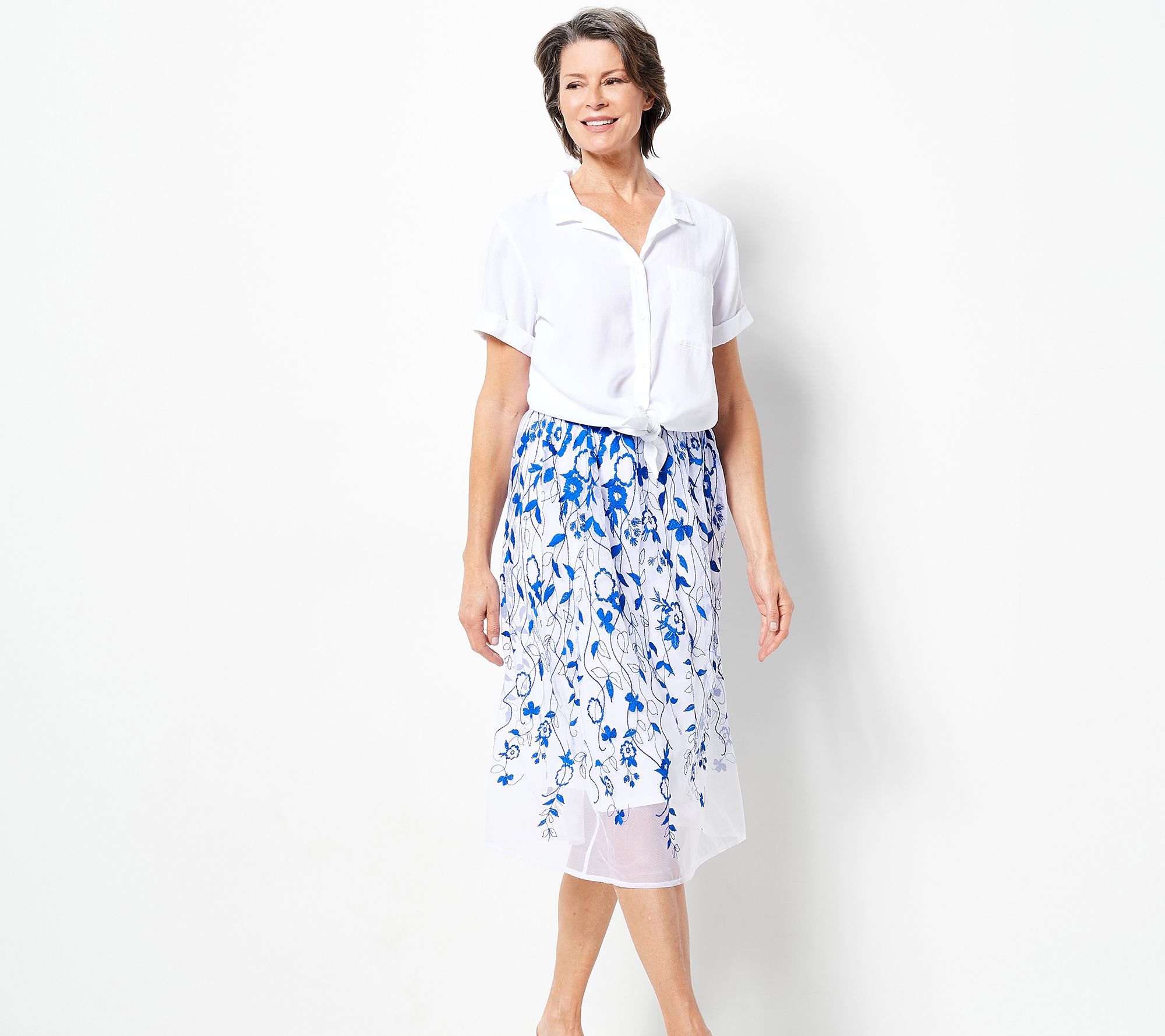 Just one look at this fab embroidered skirt, and we're getting major OOTD inspo. From weekends at the winery paired with a button-front blouse and a wide-brimmed hat, to baby showers brunches paired with dainty heels and a smooth up-do, this classic piece turns heads wherever you take it. From Susan Gravers.