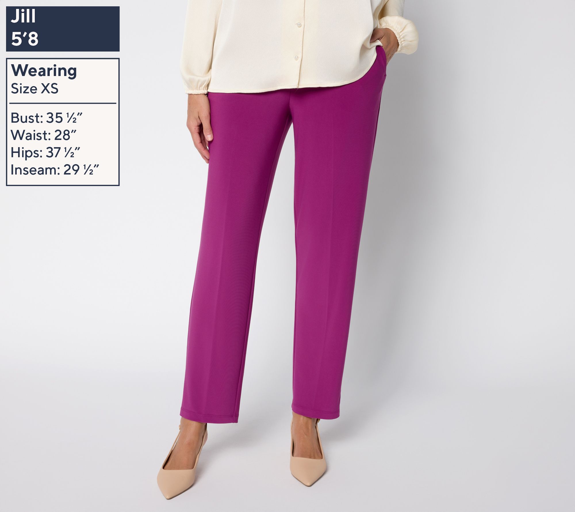 • Features: solid color, pull-on style, ankle length, slash pockets