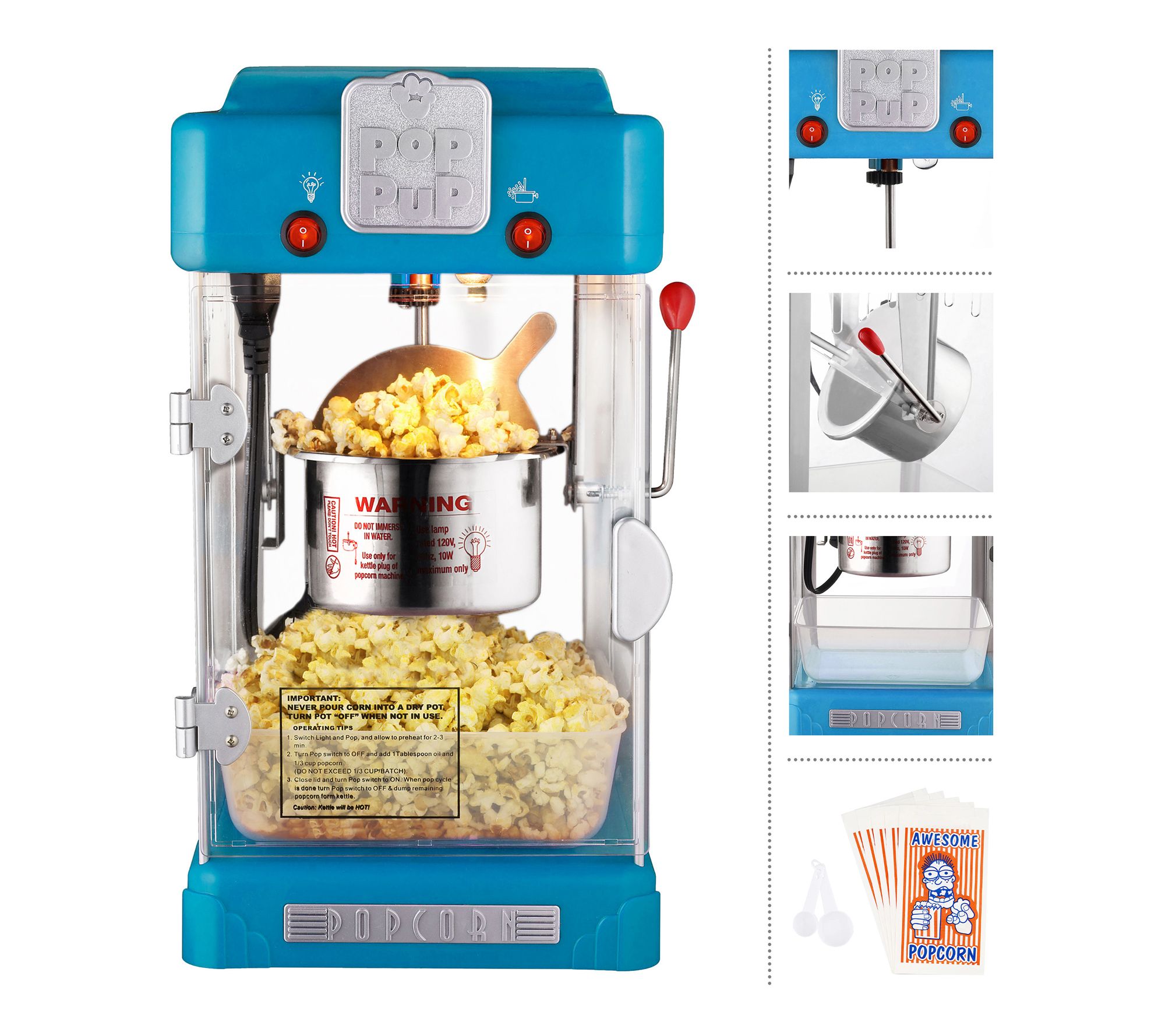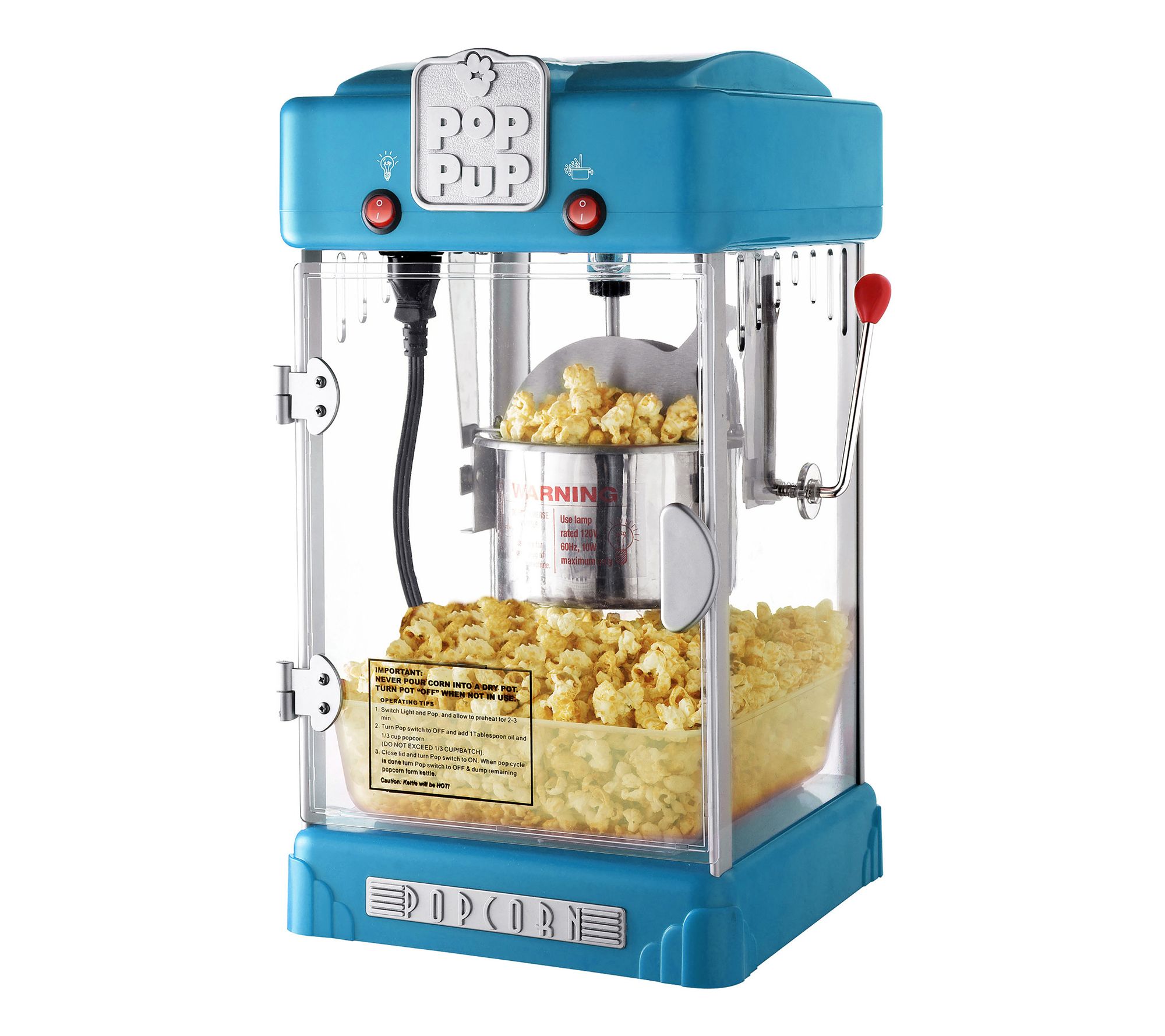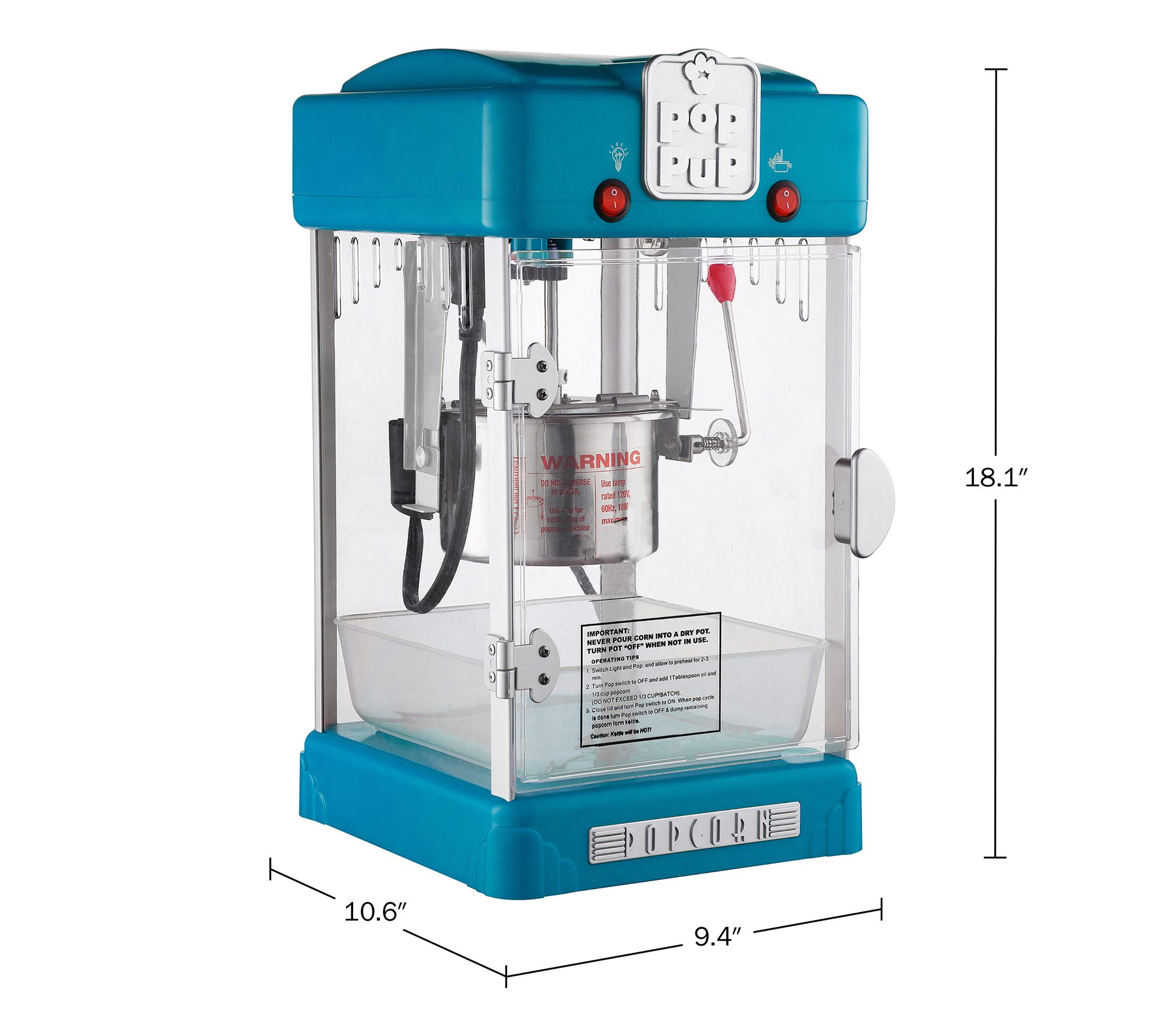 Bring the magic of the movies to your home with the Great Northern Popcorn Pop Pup tabletop popcorn popper. This retro-style machine features a 2.5-ounce stainless-steel kettle that pops about 4 quarts of popcorn in minutes, complete with a 10W warming light to keep your popcorn fresh and hot. Its compact design fits perfectly on any countertop, making it an ideal addition to your movie night setup. From Great Northern Popcorn.