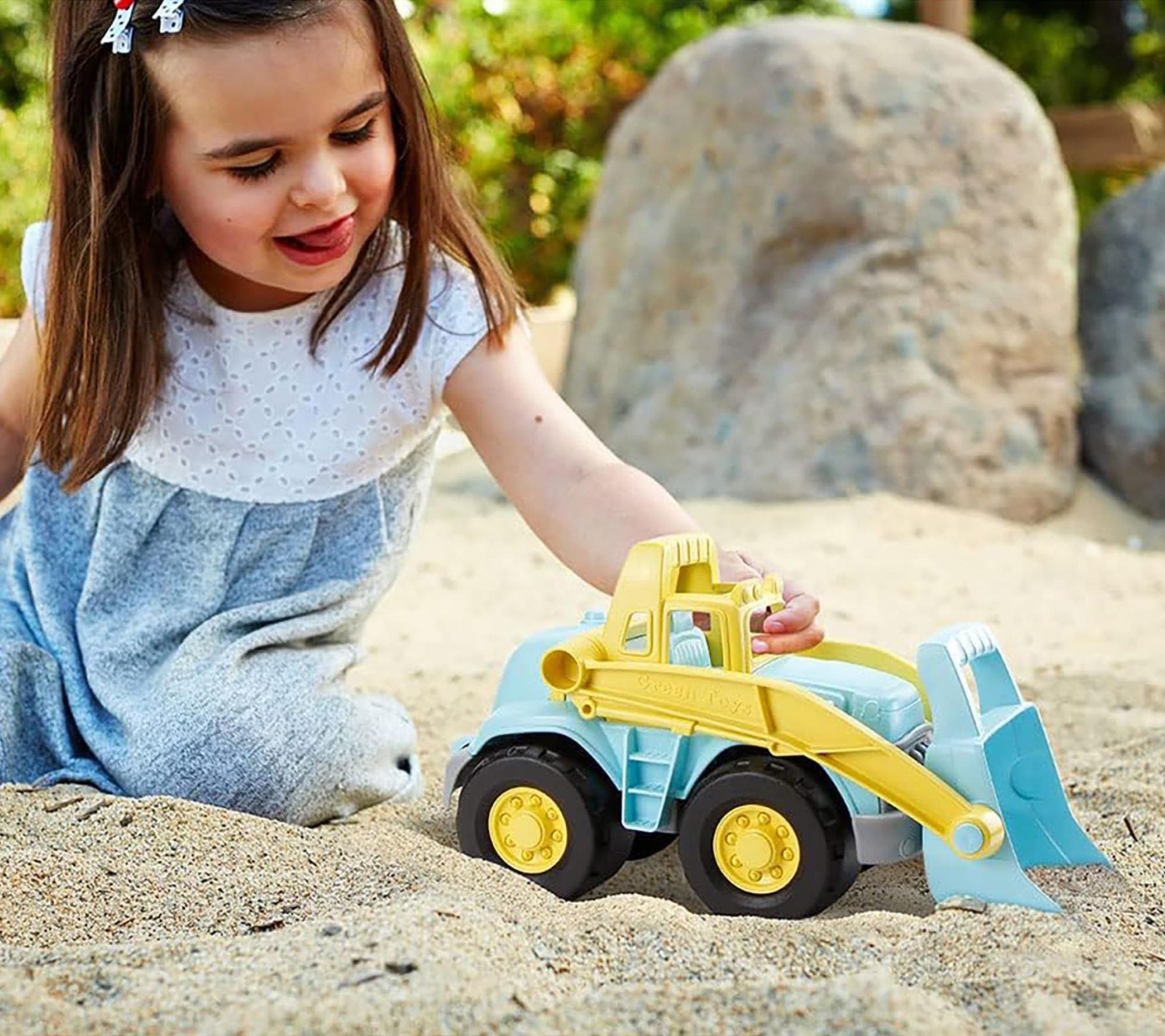 Little builders will be captivated by endless digging, scooping, and dumping fun with this loader truck, ready to inspire hours of creative construction play indoors or out. With two easy-grip handles and a moveable arm that rotates 180 degrees, this toy invites imaginative adventures whether it's in a sandbox or playroom. From Green Toys.