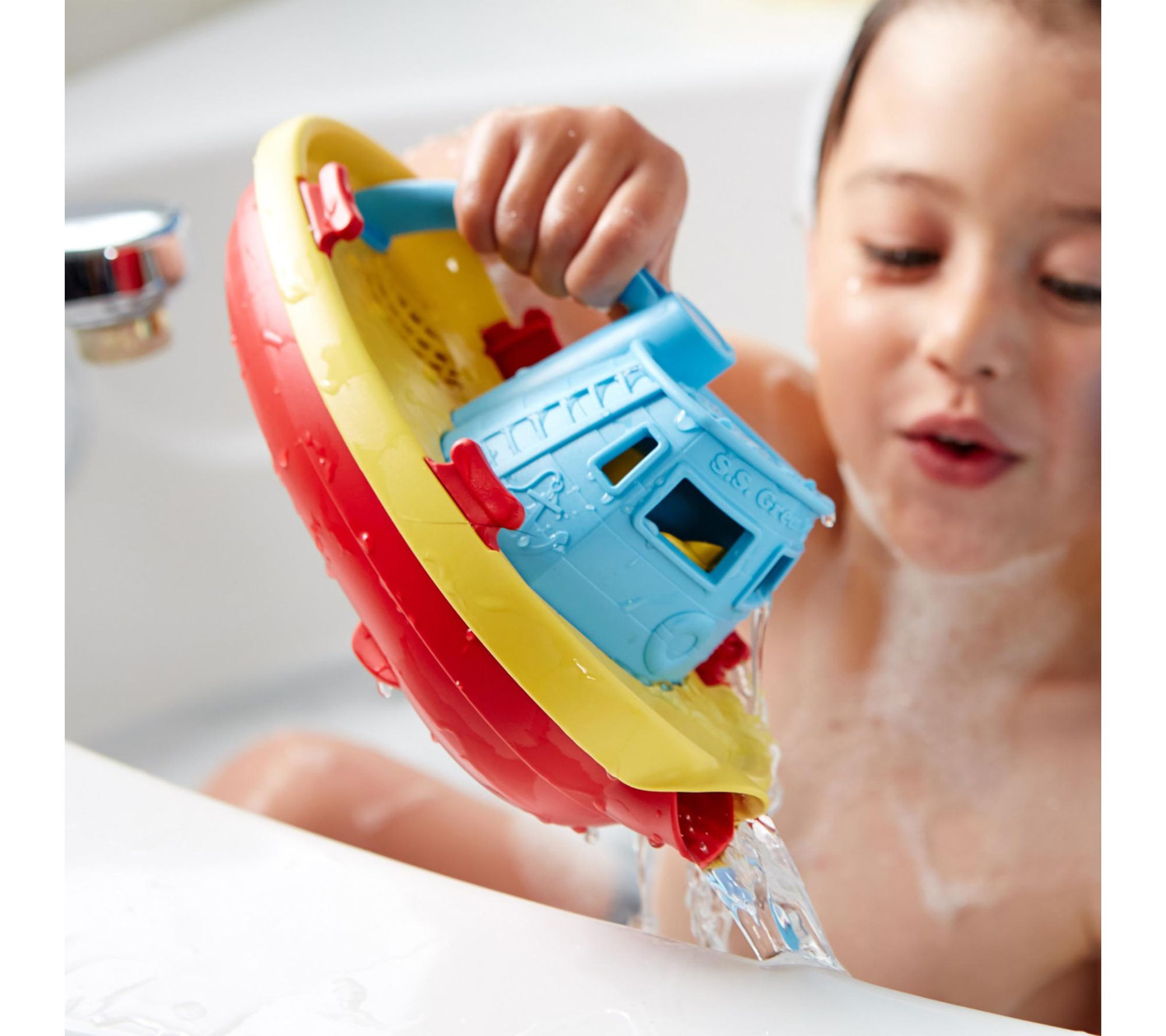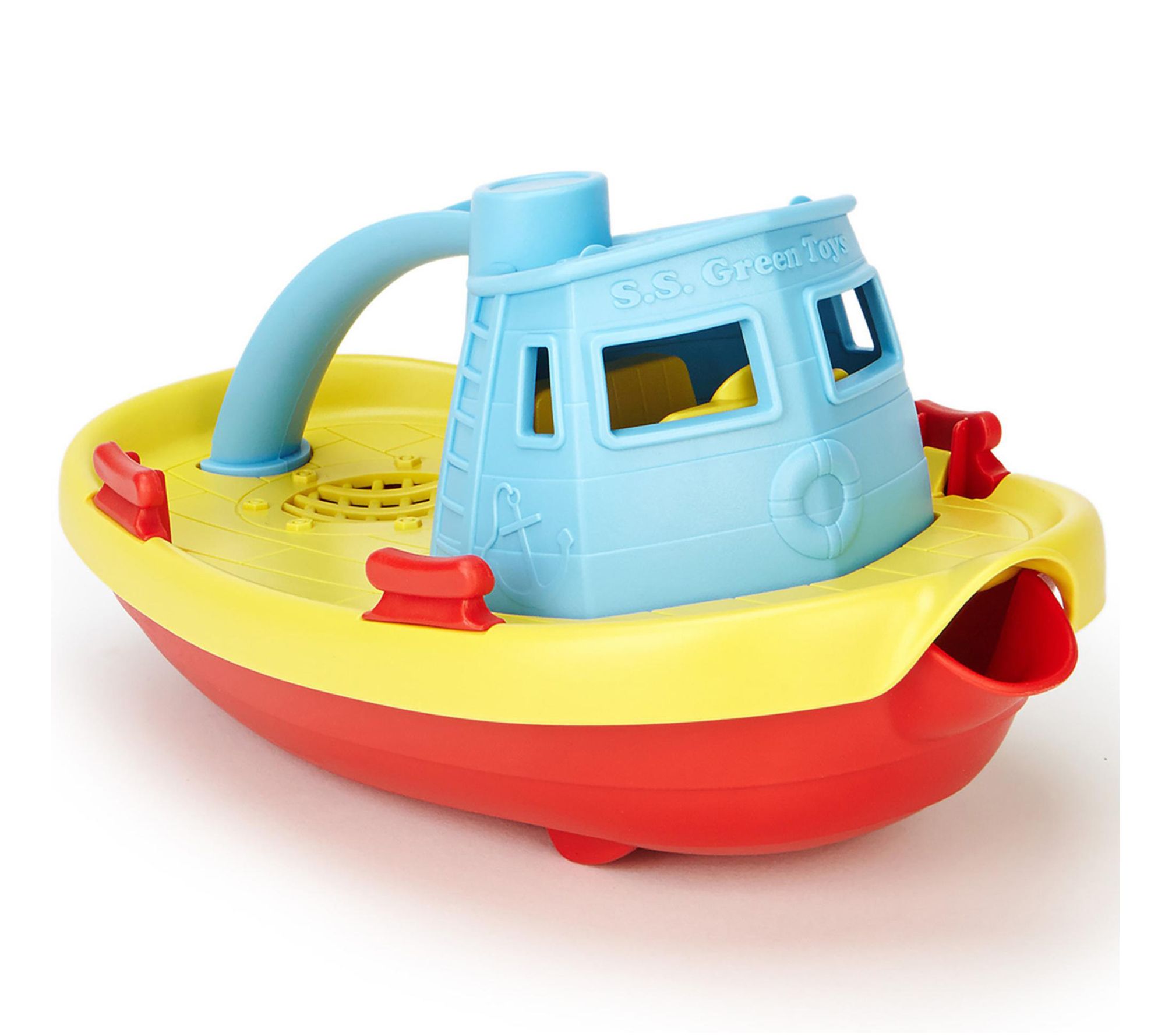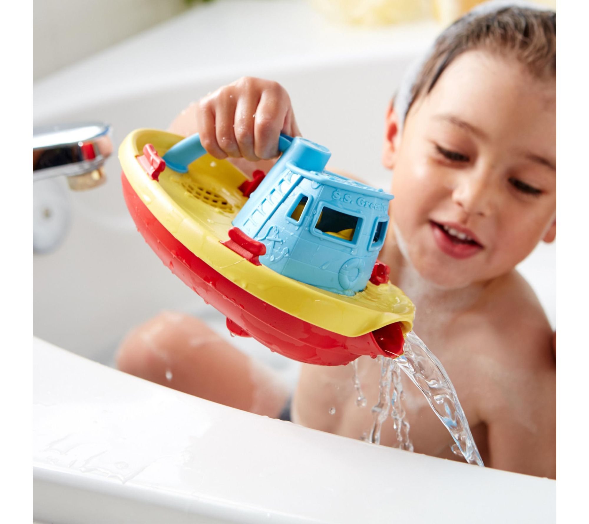 Turn bathtime or pool play into an imaginative voyage with this bath toy tugboat. Built for little hands, the sturdy design and easy-to-grip handle encourage interactive fun -- scooping, pouring, and floating. Watch children explore and learn as they guide their very own vessel across the water. From Green Toys.