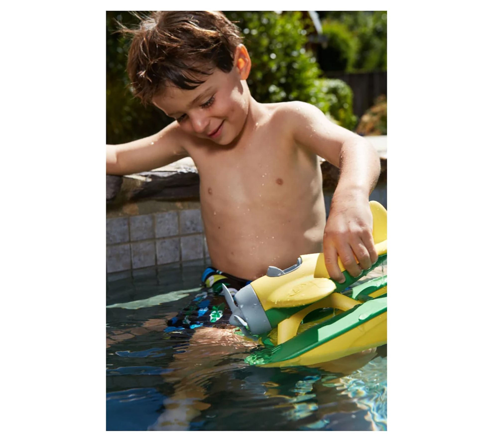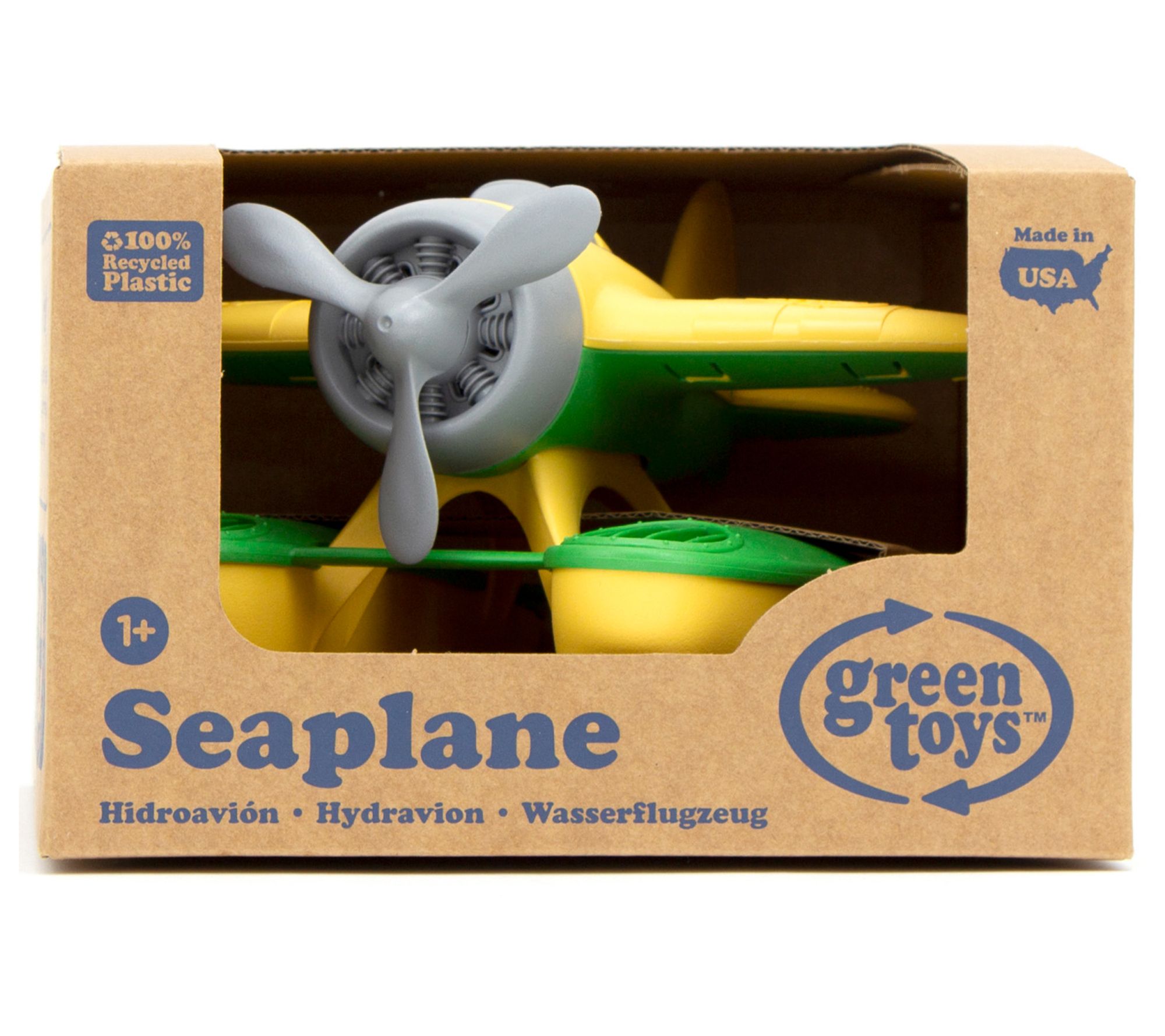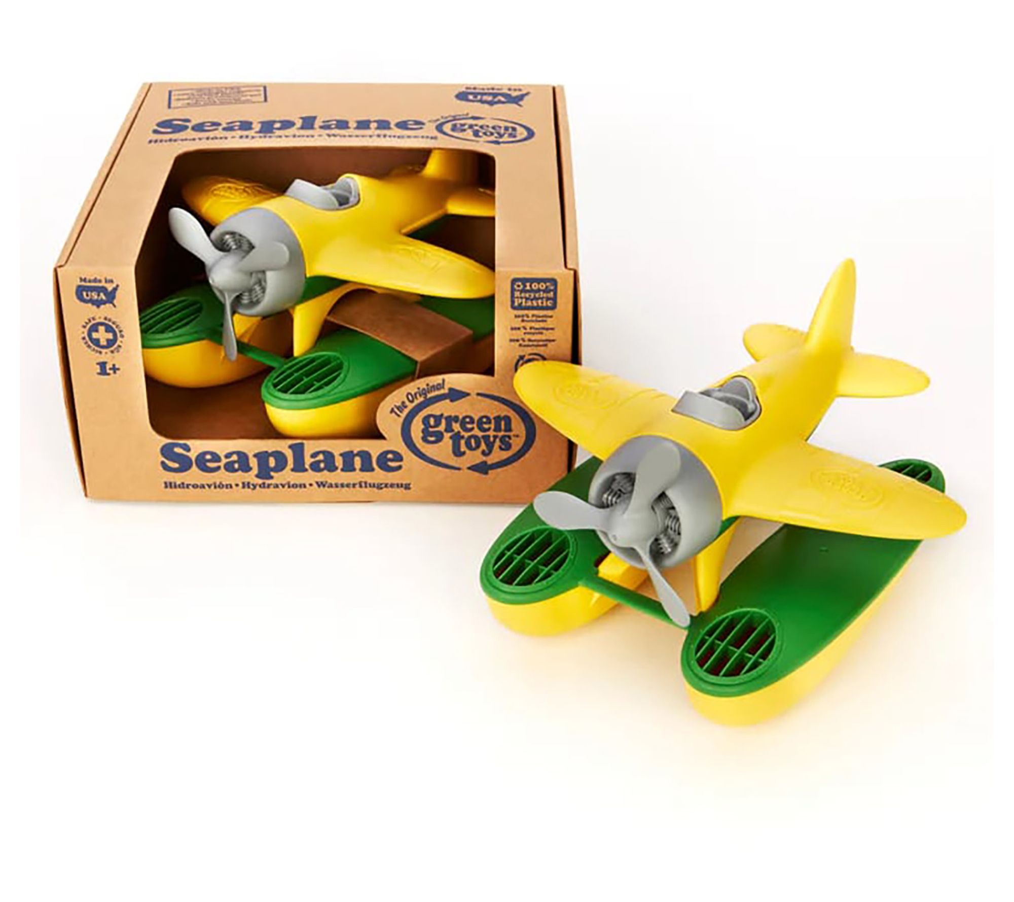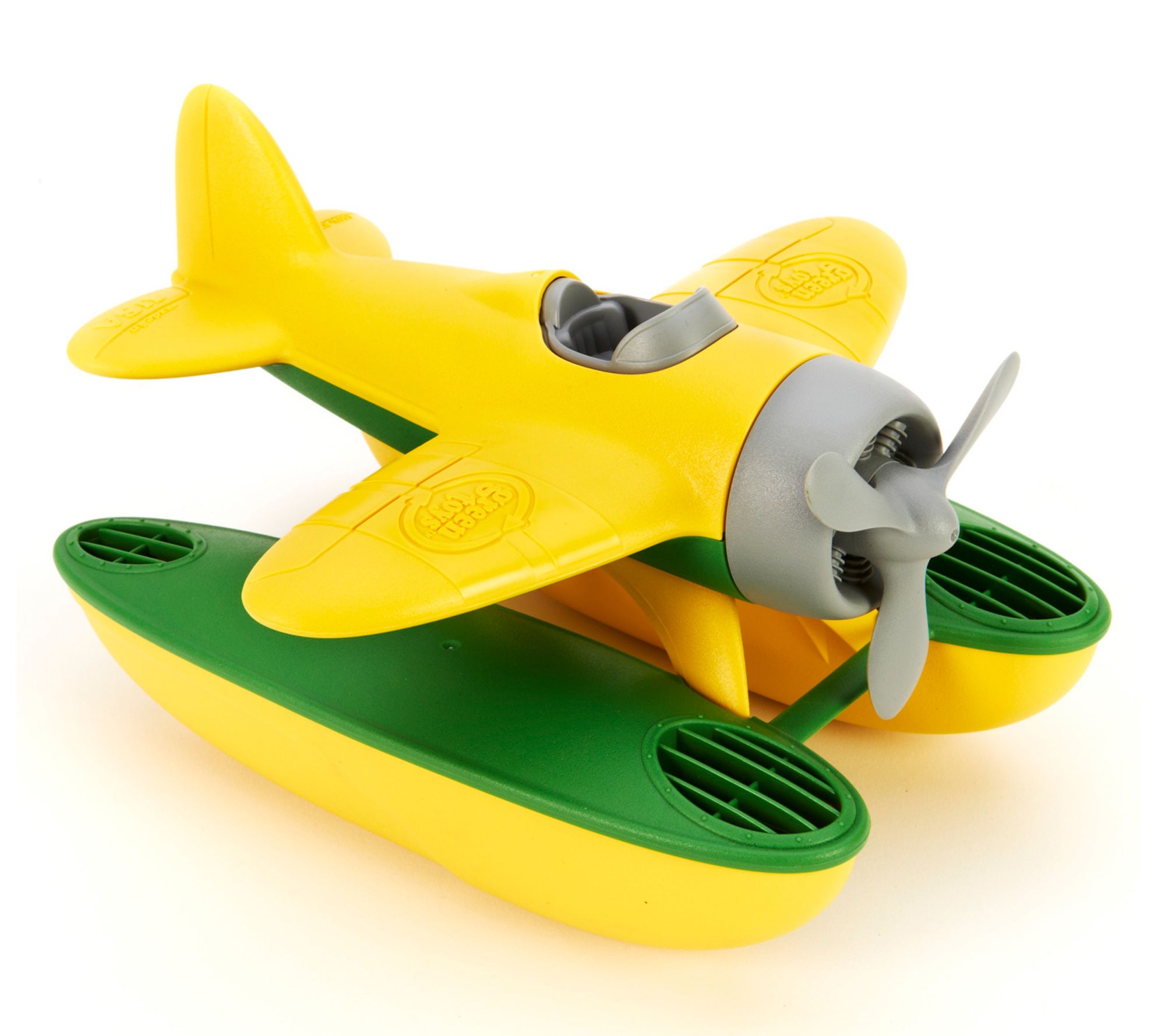 Float, fly, and have fun with the Green Toys floating water seaplane! This buoyant yellow and green floatplane features a spinning propeller and oversized pontoons, making it perfect for bathtime or pool adventures. From Green Toys.