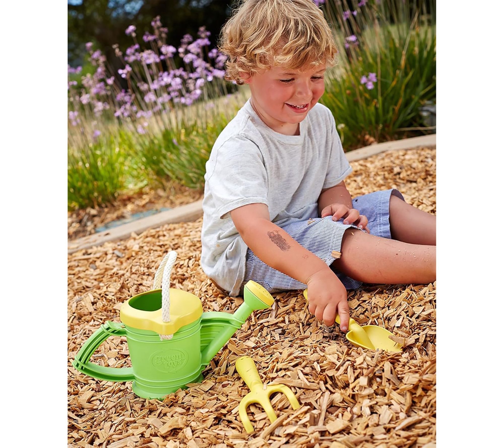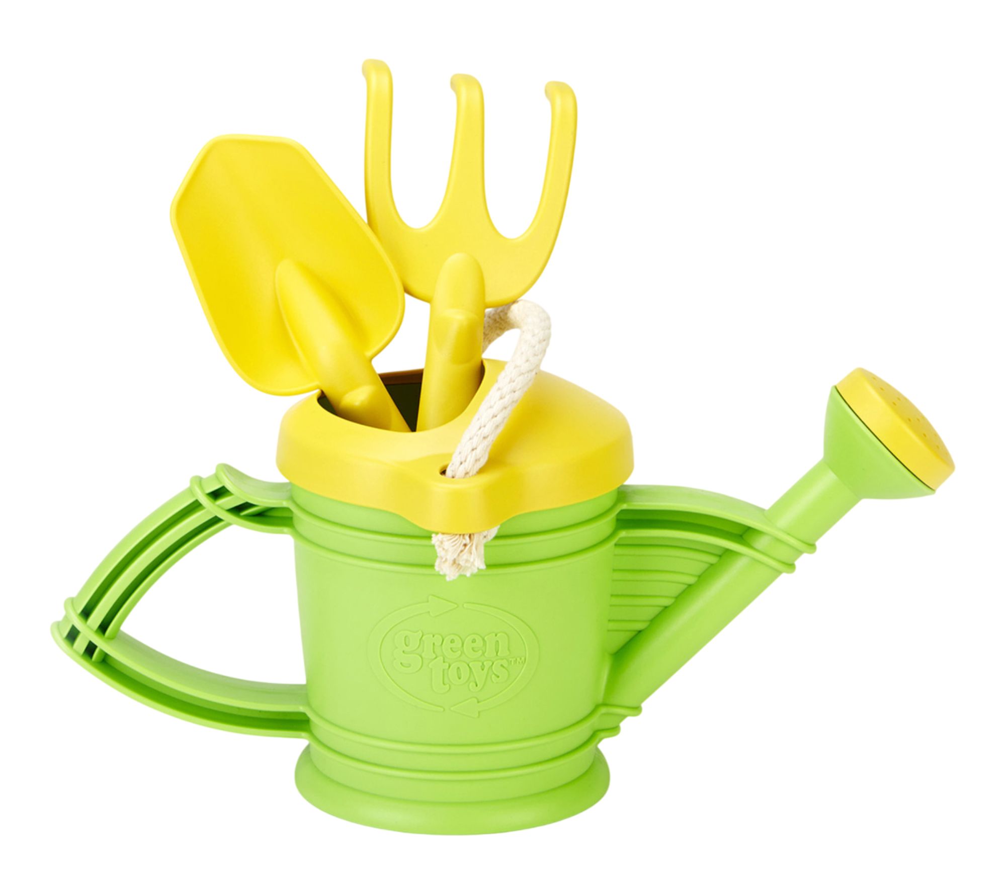 Little gardeners can dig, rake, and water their way into outdoor adventures with this role play watering can set. Whether tending to flowers, caring for houseplants, or just enjoying make-believe moments in the sun, this toy inspires hours of imaginative, hands-on play with thoughtfully sized and easy-to-use tools. From Green Toys.