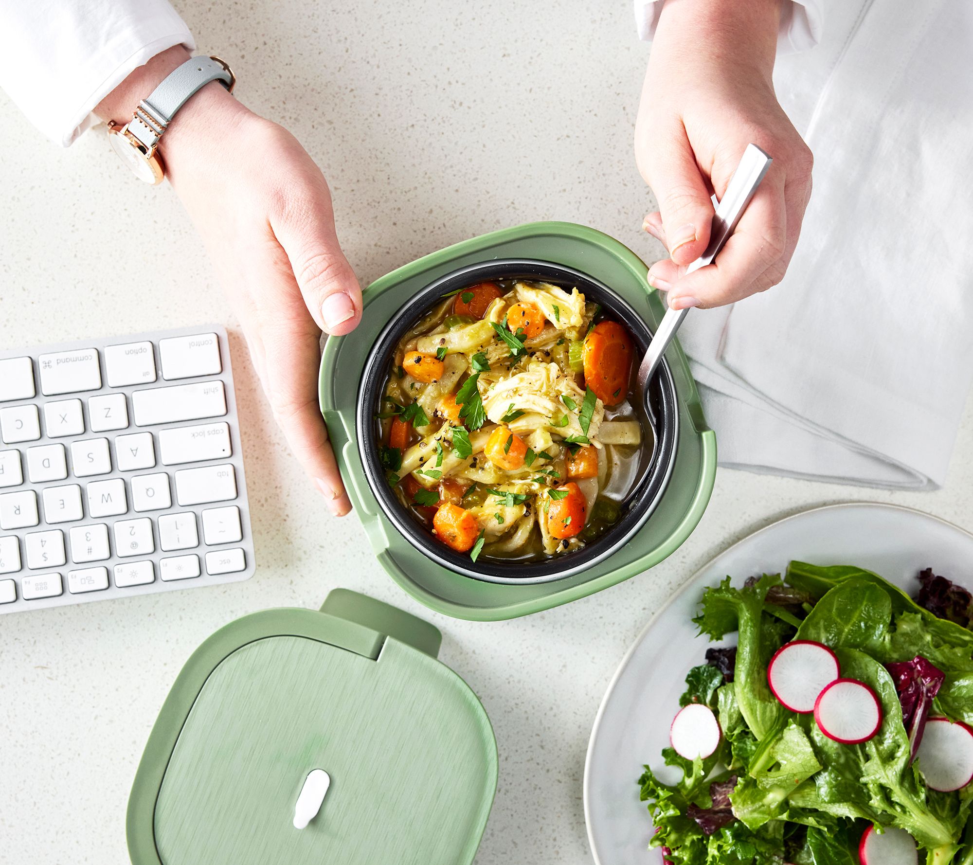 • Includes 20-oz lunch box, silicone spoon, and fork