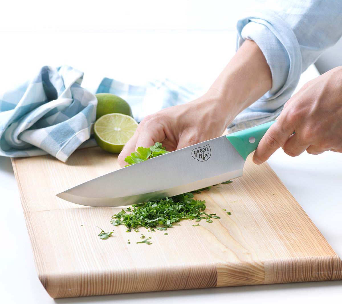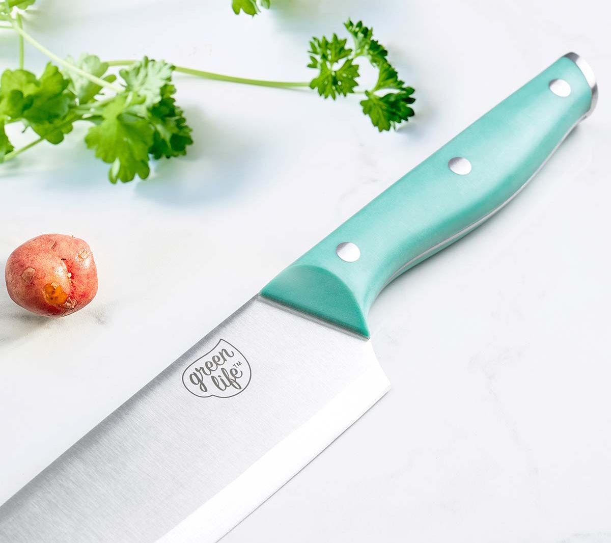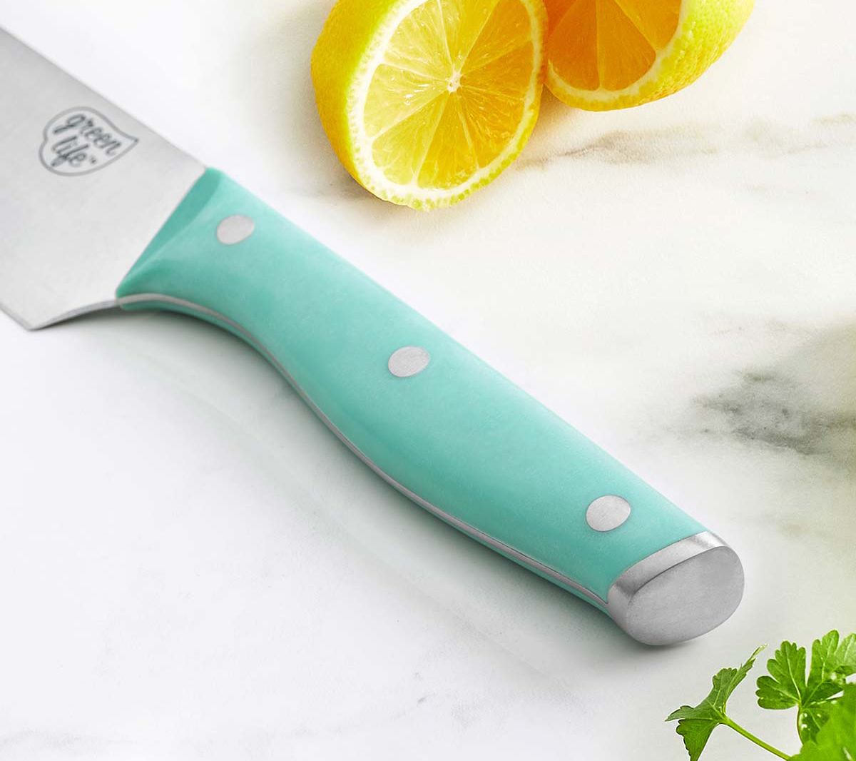 Slice and dice with the best of them using this set of knives optimized for common kitchen tasks. From GreenLife.