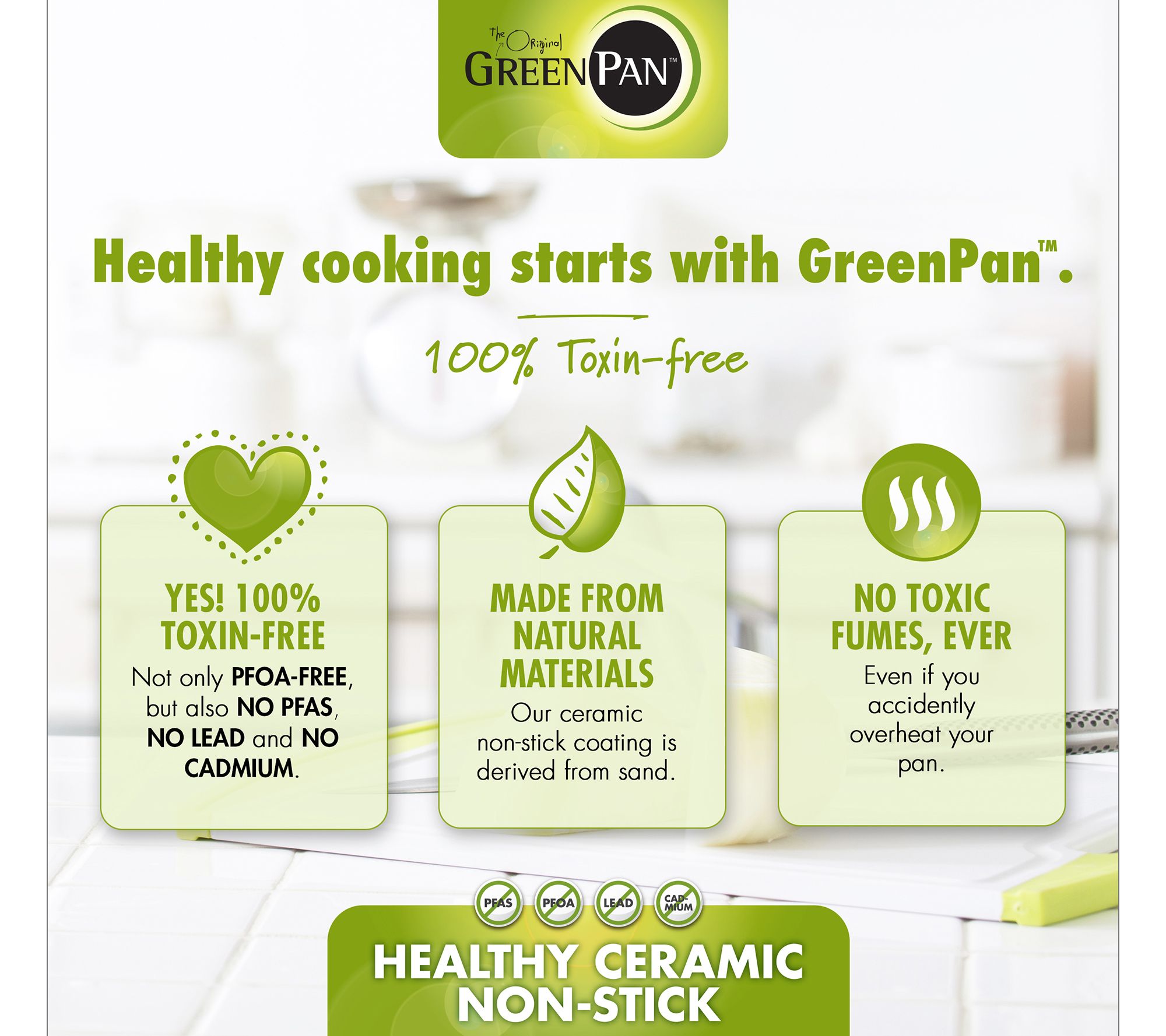 • Metal utensil-safe Thermolon Minerals ceramic nonstick interior